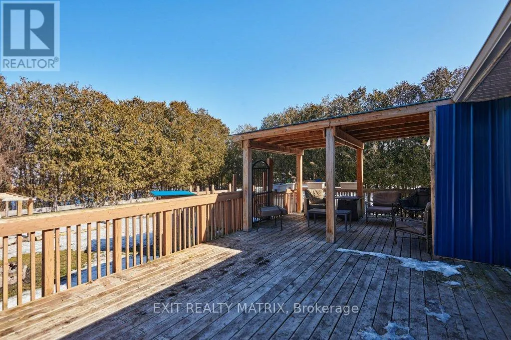 Cross Streets: Eldo St and Tracin St. ** Directions: Take Bank St South, turn left onto Victoria towards Metcalfe, right on 8th Line, right on Eldo. Home is on right. Welcome to this charming raised bungalow nestled in the heart of Metcalfe, set on a beautifully private, hedged lot just shy of half an acre. Offering exceptional space both inside and out, this well maintained home is ideal for families, multi-generational living, or those seeking a peaceful rural lifestyle with modern comforts. Step inside to discover a bright and spacious layout featuring generously sized bedrooms and wide doorways throughout, providing excellent accessibility. The home is thoughtfully designed with wheelchair friendly features, including a convenient lift in the garage, ensuring ease of mobility for all.The expansive kitchen offers abundant counter space and cabinetry, making it perfect for everyday living and entertaining alike. Turn the room behind the kitchen into the pantry of your dreams! Downstairs, the mostly finished basement presents incredible potential as a huge in-law suite or secondary living space, with existing hookups for both a kitchen and laundry already in place. Outdoors, enjoy your own private retreat with a massive deck complete with a gazebo which is perfect for relaxing or hosting gatherings. The property also features a charming chicken coop, adding to its country appeal, and an above ground pool.This home has been updated over the years, including a new roof, windows, and furnace in 2018, A/C in 2021, and a full interior repaint in 2026. A rare opportunity to own a spacious, accessible home on a private lot in a sought-after community-this property truly has it all. (id:27476)