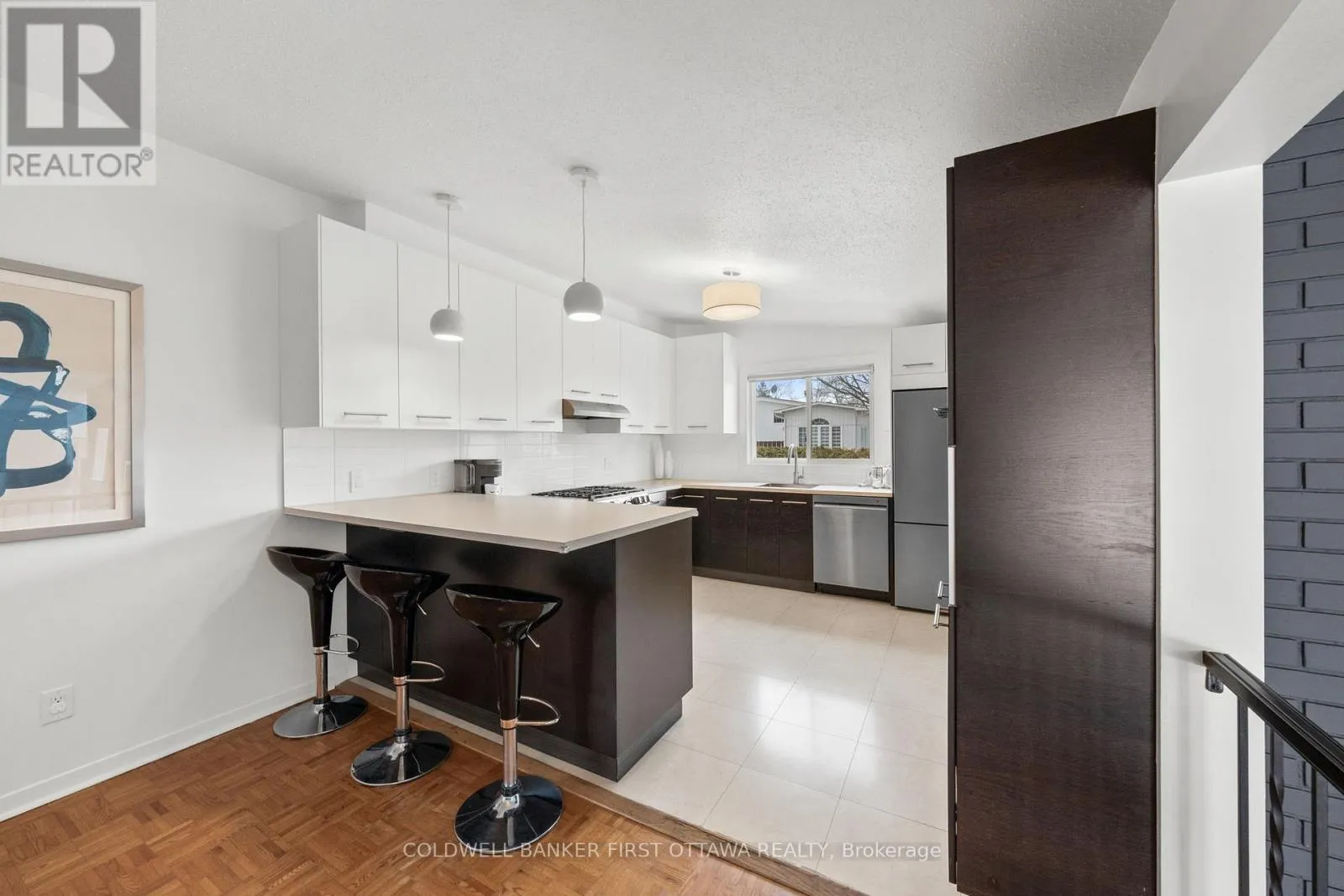 Cross Streets: Cramer Dr. ** Directions: Take Greenbank Rd South past Baseline Rd. Turn right onto Canfield Rd. Turn left onto Cramer Dr. and take your first right onto Alderbrook Dr. #4 will be on your left hand side. Beautifully updated split lvl on a quiet, tree-lined street in a mature neighbourhood w/ no thru traffic, offers a turnkey lifestyle. Expansive driveway, interlocked front patio leads to front deck w/ seating area + hidden front door. A bright tiled foyer welcomes you w/ impressive 11ft ceilings & dbl sliding closet, leading to a spacious living rm w/ wall2wall front windows & a brick surround gas fplc. The open split design creates seamless flow & sightlines to the dining/kitchen, enhancing lighting & functionality. The upper lvl offers 8.8ft ceilings, linen closet & inviting dining rm overlooking the living area. Reno'd kitchen (25') feat. new cabinets, countertops, sink & appl., along w/ a peninsula island w/ breakfast bar seating & tiled backsplash. Direct access to the 3 szn sunroom connects the kitchen to the garage & pvt byard, ideal for everyday living & entertaining. This lvl also incl. 2 bd, w/ a generous primary retreat w/ vaulted ceilings, 2 bright windows & dbl closet, along w/ stylishly updated 3 pc bath (25'). Hwd flrs run t/o main living areas. The LL offers exceptional versatility w/ 2 add'l bd feat. full egress windows, a 4pc bath, & a spacious rec rm w/ 9ft ceilings, oversized window & carpet (completed 22'). Add'l feat. incl. laundry, storage rm, & a utility/workshop area w/ ample space for organization. Some recent, extensive upgrades t/o incl. kitchen (25'), bathrooms (21' & 25'), A/C & thermostat (23'), driveway (23'), screened room updates (24'), byard grading, sod & interlock (21'), deck & screened room floor (20') & custom roller shades (20'). The fully fenced byard offers mature hedging, a wood deck (16'), shed & side walkway access. Located in top school catchments w/ Knoxdale PS & Sir Robert Borden HS, just min. to Bruce Pit, NCC trails, Queensway Carleton Hospital, Hwy 417 & 416, IKEA & amenities incl. Metro, Shoppers Drug Mart & more. An amazing location w/ easy access to amenities & nature, makes this home 'the one' to come see today! (id:27476)