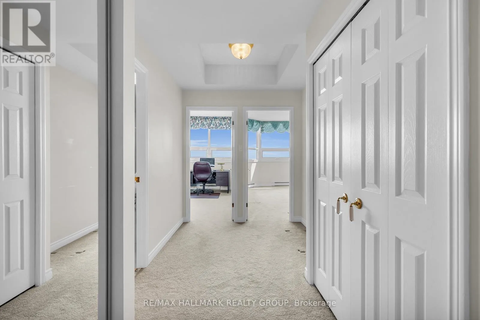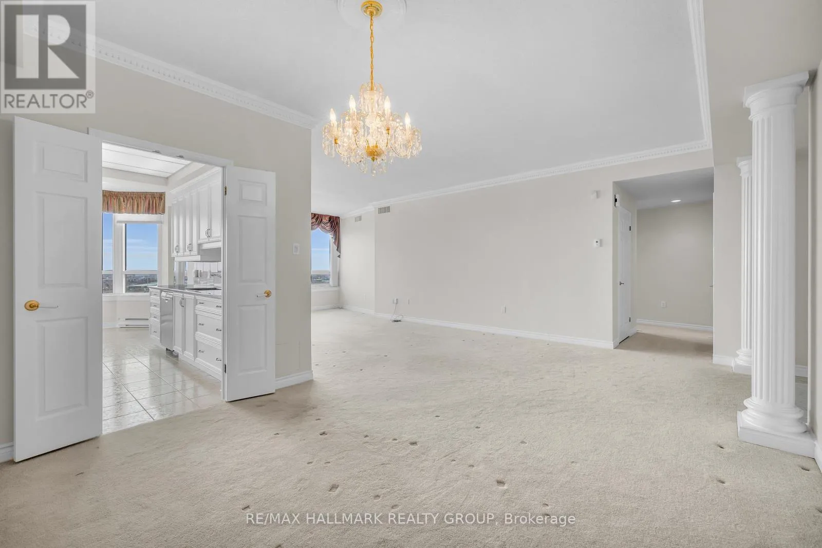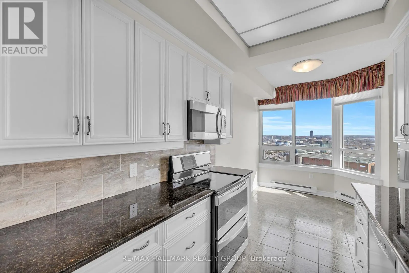 Cross Streets: Riverside Drive x San Remo Private. ** Directions: 417 to Vanier Parkway/Riverside Drive. Welcome to Unit 2403 at 1480 Riverside Drive - an expansive 2-bed, 2-bath condo with 1,488 sq. ft. in The Classics at Riviera, one of Ottawas most prestigious gated communities. This elegant residence features a grand marble foyer, formal living and dining areas flooded with natural light, and a kitchen with updated cabinets and granite countertops and a charming breakfast nook perfect for your morning coffee with the east-facing sunrise view. The oversized primary suite includes a spa-like marble ensuite with a soaker tub, separate shower, and walk-through closets. Additional highlights include a washer-dryer, full walk-in pantry, generous floor plan, and excellent in-unit storage. Unit 2403 also has underground parking near the elevators and a storage locker. Enjoy resort-style amenities including indoor/outdoor pools, a fitness centre, squash courts, tennis/pickleball courts, library, hobby rooms, BBQ patio, and 24/7 security, just steps to the LRT, hospitals, and the Rideau River trail system. (id:27476)