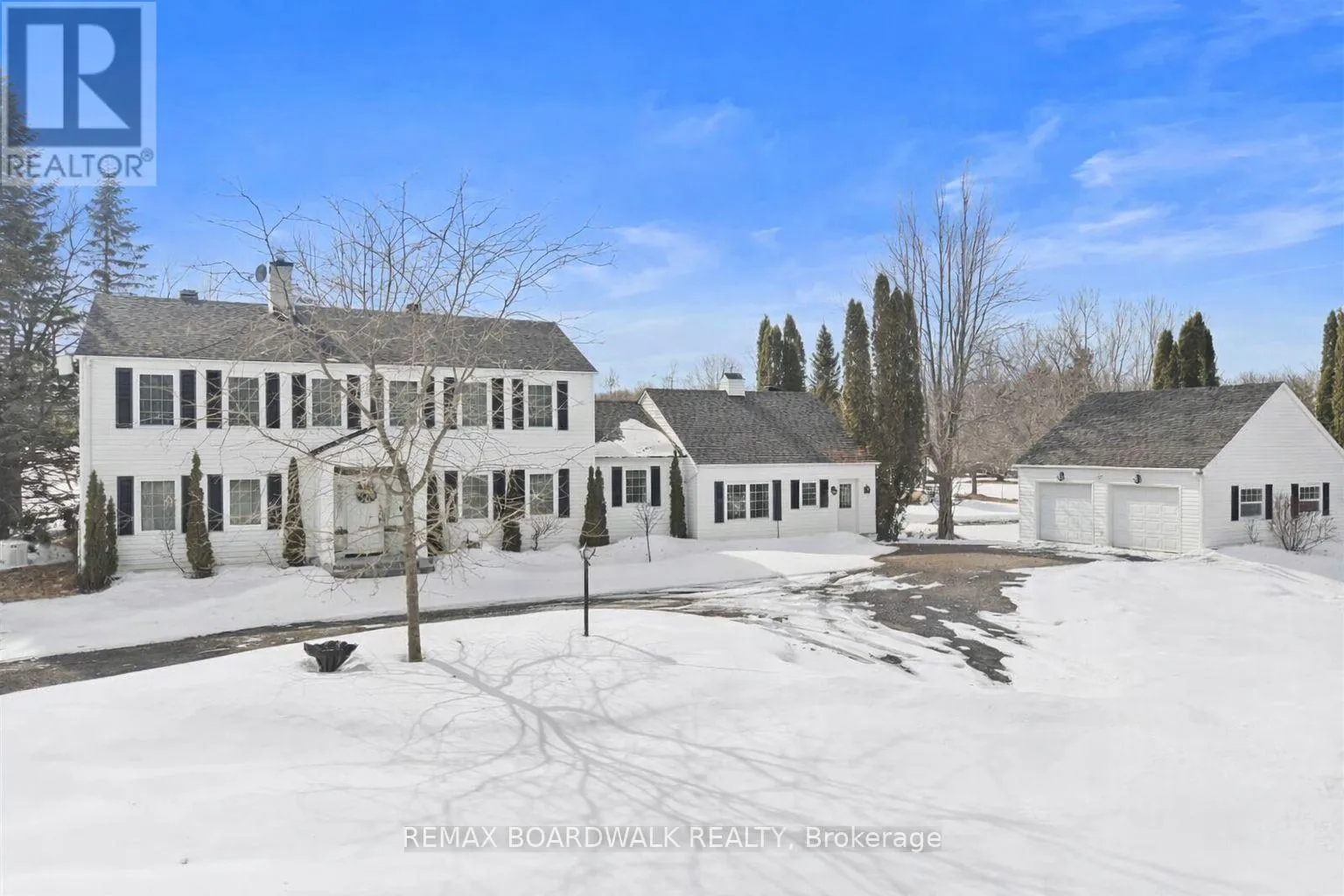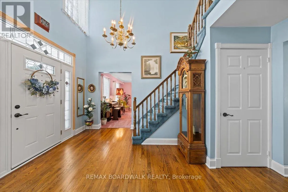 Cross Streets: Cumberland Estates. ** Directions: hwy 174, exit Old Montreal rd, turn right, left on Kinsella, right on Quillivan, left on Royal Orchard OR Dunning to Wilhaven, left on Royal Orchard. Set on just under 3 acres in Cumberland Estates, this property offers peaceful, private living w/the ease of a quick drive to everything the city has to offer. This Colonial-style home offers over 3,100 sq. ft. of living space in a setting with privac. 300' driveway through mature trees & a wooded creek, open to a circular driveway w/landscaped center median. A gardeners heaven with over 132 trees, 138 shrubs, 452 perennials +. This home's timeless façade is defined by a columned portico delivering a true sense of arrival. grand open-to-above foyer welcomes you w/soaring two-storey ceilings, rich hardwood flooring, & a character-filled Victorian staircase, all illuminated by natural light from the upper-level windows, The living room is anchored by a wood-burning ffp w/full brick façade, detailed mantle, coffered ceilings, & crown moulding, while French doors open to the flagstone terrace. Formal dining room offers the scale to host w/ease, keeping with the theme, bi-fold doors into the kitchen. The center island kitchen features lots of cabinetry, stainless steel appliances, a coffee station, and a bright eating area with direct access to the deck. A versatile office/family room connects effortlessly to both the front of the home and the outdoor living, complete w/a fireplace framed by elegant mouldings and a raised hearth. The music/reading room provides a quiet, sun-filled retreat, A well-designed laundry/mudroom with shower and storage & 2 pc bath completes this level. Upstairs, a light-filled loft overlooking the foyer features crown moulding and 3 windows. The primary suite offers exceptional scale, complete with a wood-burning ffp, Victorian box mouldings, walk-in closet, and a 4-piece ensuite. Two additional bedrooms and a full bath complete the 2nd level. If you love outdoor living this home will shine, Pergola, Dry stone River, 2 sheds, Pavilion, Hot tub. Outdoor Shower, Water cascade and pond, Fountains, Urns & benches, Deck, Flagstone patio & paths (id:27476)