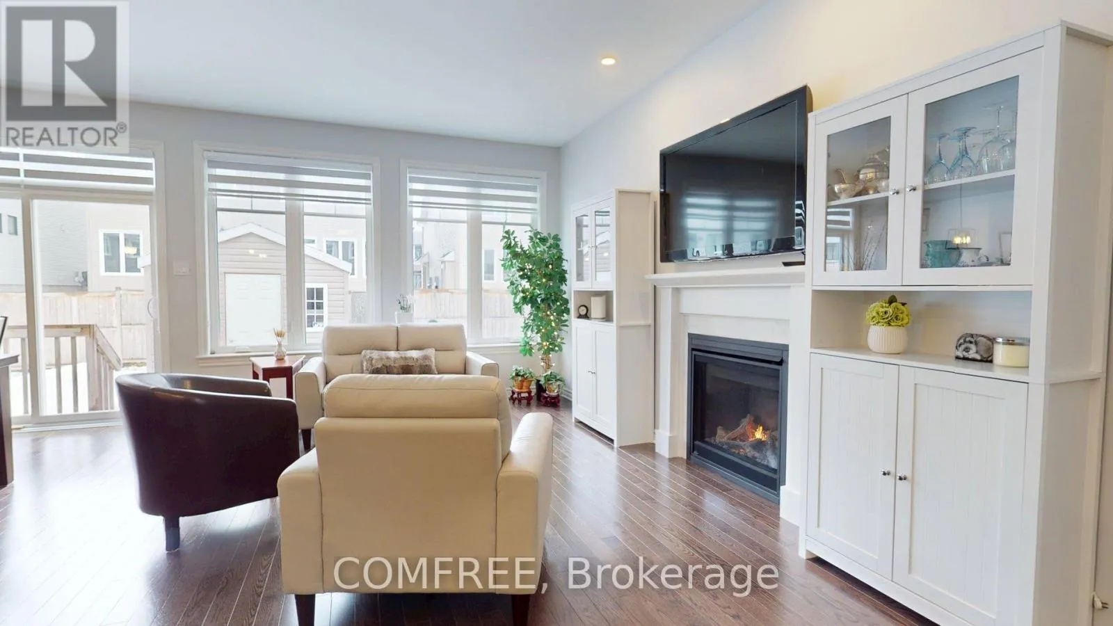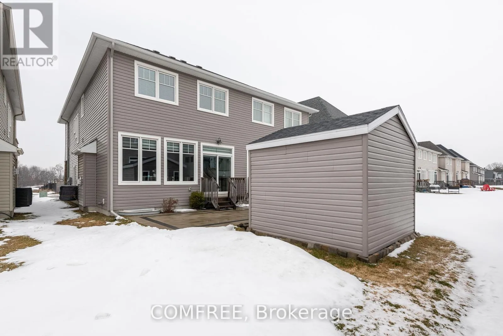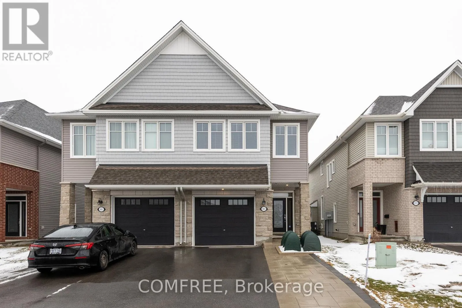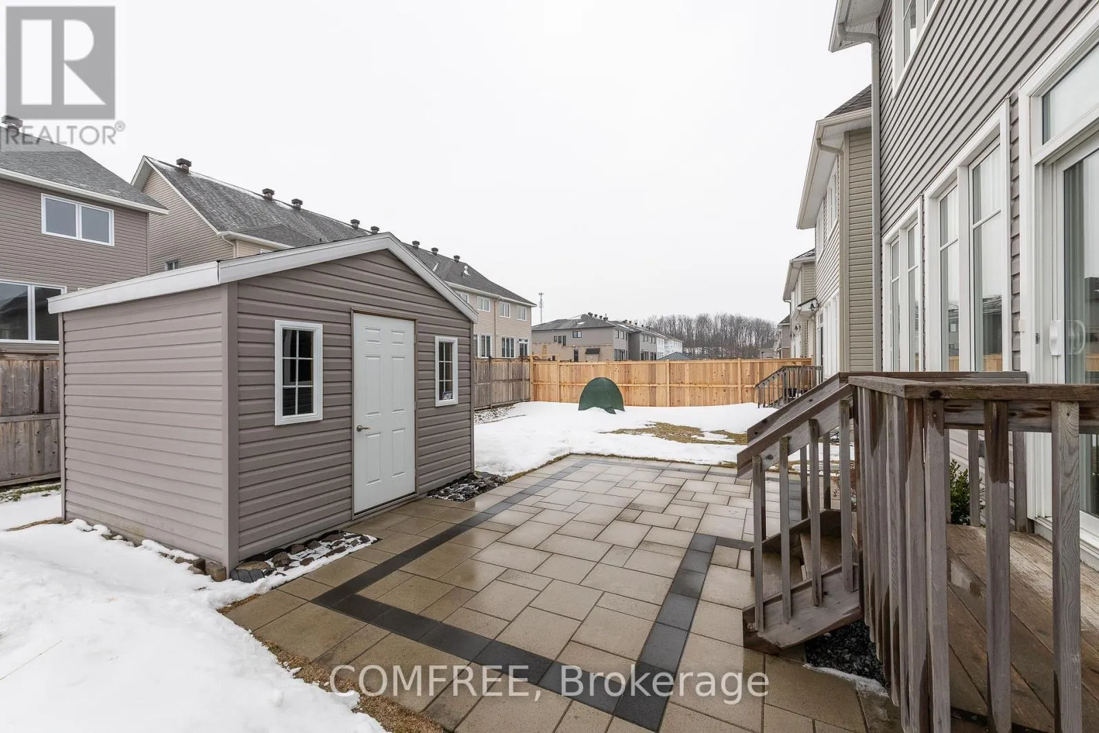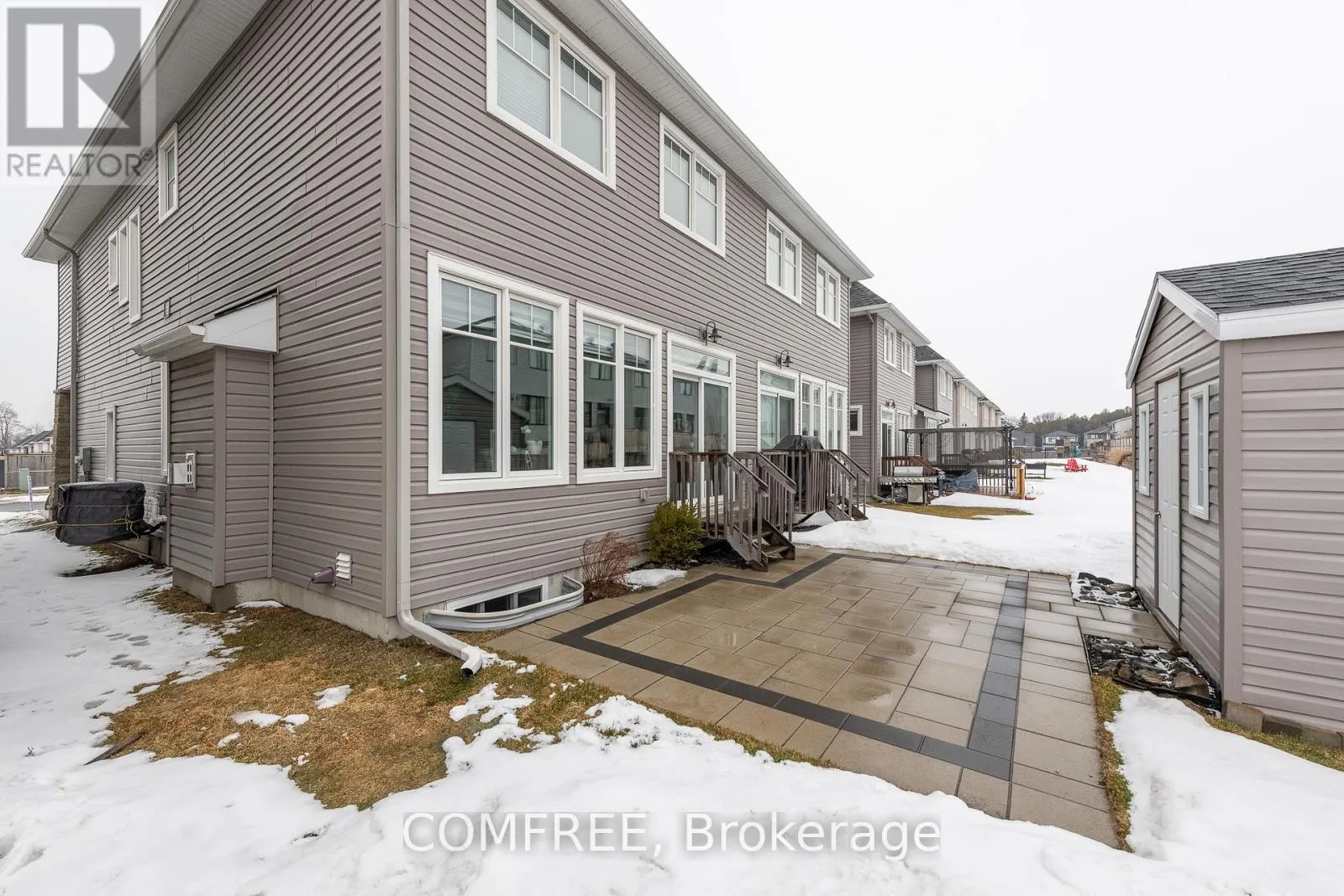 Old Montreal Rd and Cardinal Creek This sought after community of cardinal creek Orleans home is a semi-detached Folkstone model at 2,155 Sq Ft with stone frontage offering bright open layout with modern hardwood flooring throughout the main level with 9 foot ceiling. Large windows with zebra blinds fill the home with natural light. The open-concept main floor is anchored by a modern kitchen featuring quartz countertops throughout with a large centre island seating, includes stainless steel appliances, ample cabinetry, and a large pantry flowing seamlessly into the living room and dining area. A cozy gas fireplace adds warmth and definition to the space. For added comfort also equipped with central A/C. The upper level includes 3 spacious bedrooms, with a well appointed primary suite with huge walk-in closet, a sitting area and a large luxurious ensuite complete with a large soaker tub and separate shower and 2 sinks. Convenient second floor laundry with tub and cabinetry which includes washer and dryer and a main bathroom complete the upper level. The professionally finished basement provides additional living space ideal for family room, home theatre, home office or gym, along with a large storage room. The backyard offers a 10x10 custom built shed with a no maintenance interlock patio. The driveway is widened by interlock which is wide enough for 4 vehicles including garage. Landscaping in the front and backyard. The oversize garage with 10 ft wide garage door offers easy entry with garage door opener and lots of room for storage. A 2 minute walk to a park which includes a splash pad, skating rink and community building. Close to shopping, schools and short commute to LRT. Future school close by. (id:27476)