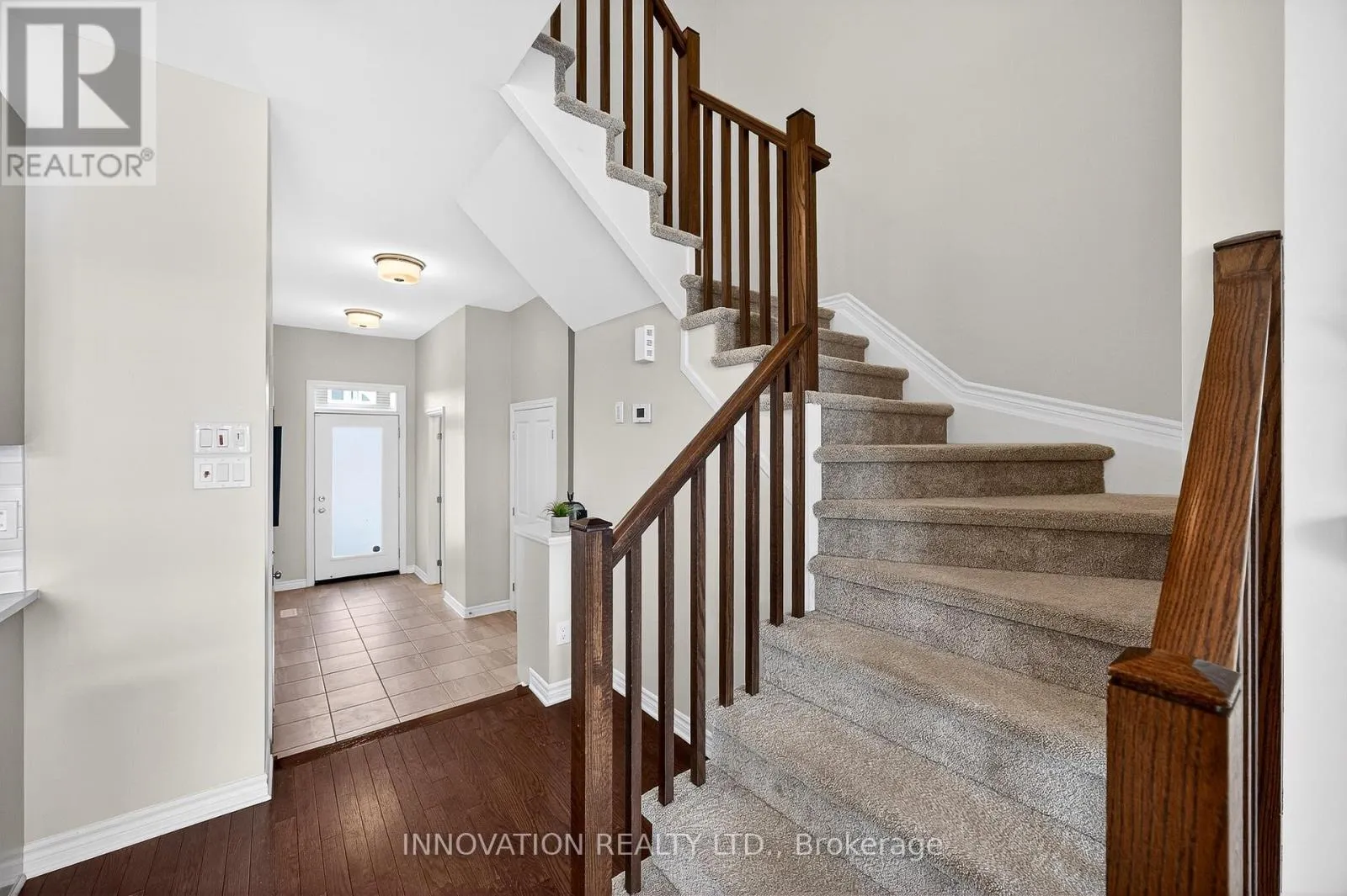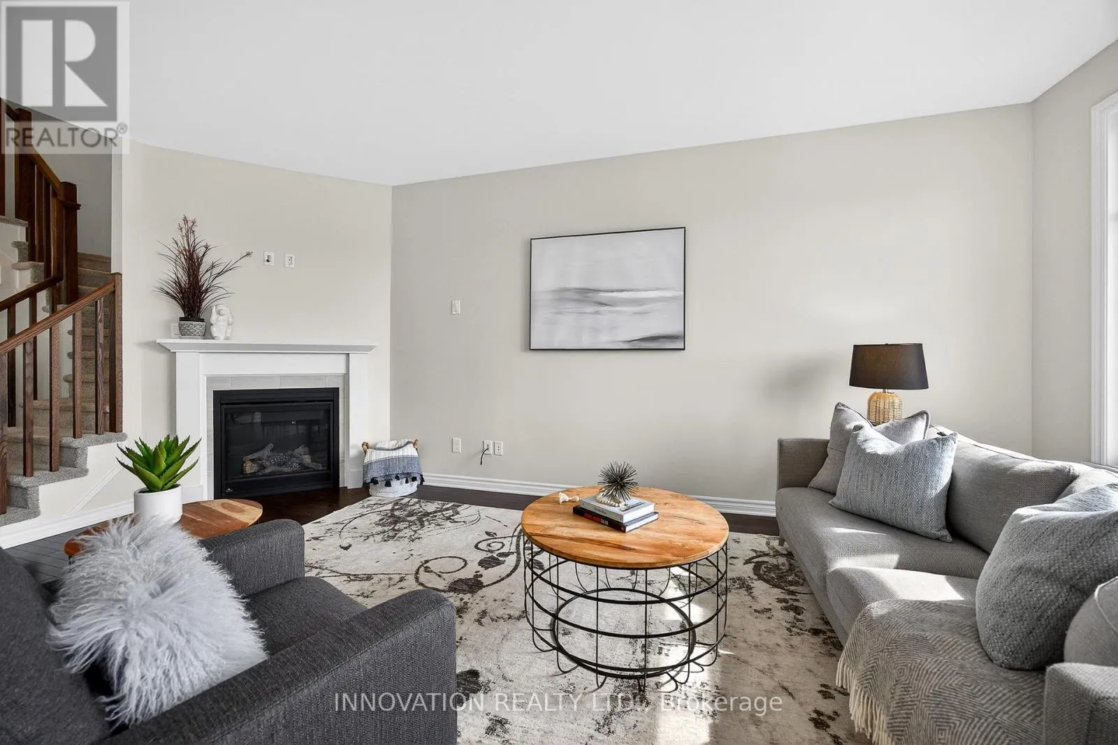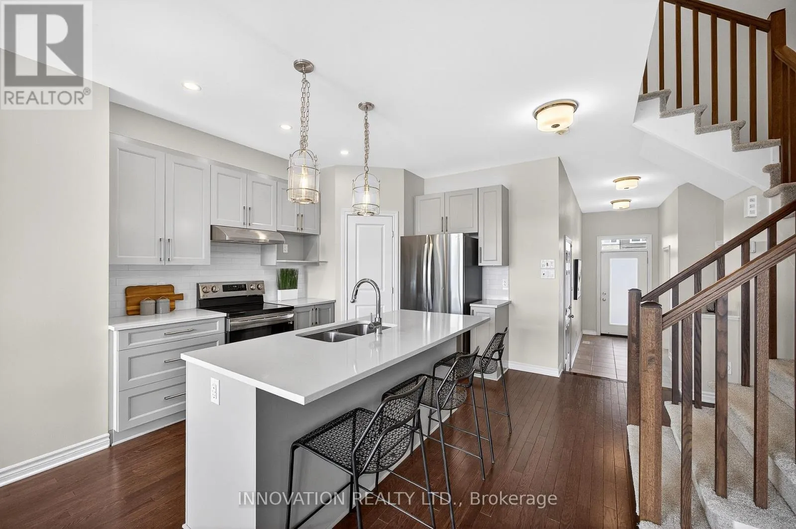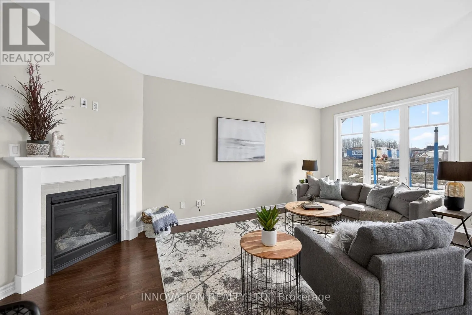 Cross Streets: Kanashtage Ter. & Antonio Farley St. ** Directions: Follow 417 E and 174 to Trim Rd in Orléans. Take the Trim Rd S exit. At the roundabout, take the 3rd exit onto Old Montréal Rd. Turn left onto Cardinal Creek Dr., then right onto Bonne-Renommée Ave., then right onto Kanashtage Terrace. Welcome to 321 Kanashtage Terrace, a tastefully upgraded Tamarack home with NO REAR NEIGHBOURS, offering 1855 sq. ft. of finished living area including a finished basement in the desirable community of Cardinal Creek in Orléans-Cumberland. This spacious 3-bedroom, 2.5-bath townhome features an open-concept main level, enhanced by sprawling 9-foot ceilings, rich hardwood flooring, upgraded lighting and large south-facing windows that allow natural light to permeate the level. The inviting living and dining areas are anchored by a cozy gas fireplace with a TV-ready wall, perfect for both everyday living and entertaining.The modern kitchen is both stylish and functional, featuring bright quartz countertops, pot & pendant lighting, stainless appliances, a large island with a breakfast bar, and a walk-in pantry, offering exceptional prep and storage space. Upstairs you'll find a well-appointed layout, including convenient second-level laundry with upper cabinets. The primary suite is a true retreat, featuring a spacious walk-in closet, and a luxurious ensuite with a large soaker tub and a walk-in shower. Two additional bedrooms, a 4-piece bathroom with quartz counters and laundry complete the level, providing excellent space and convenience for guests or growing families. The finished basement adds extra living space with a large recreation room - ideal for a home theatre, gym, or play area. Additional highlights include ample storage space and a single-car garage with entry to mudroom, adding both convenience and functionality. This home backs onto a future school and is just minutes from parks, trails, shopping and everyday amenities. It's also just a short commute to the future LRT, offering excellent long-term value and connectivity. Offering an ideal blend of space, function, and privacy, this home presents an exceptional opportunity in one of Orléans-Cumberland's fastest-growing neighbourhoods. (id:27476)