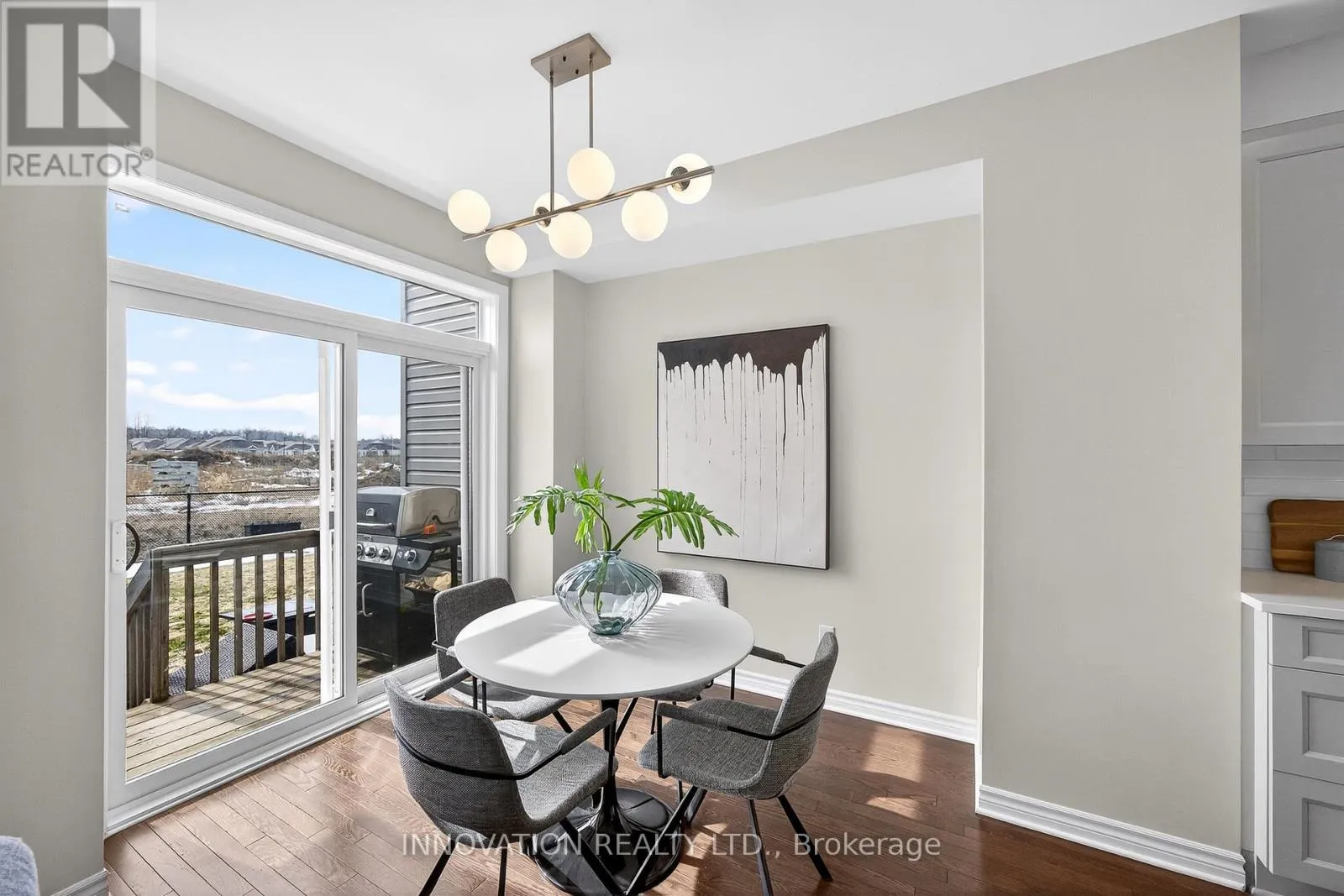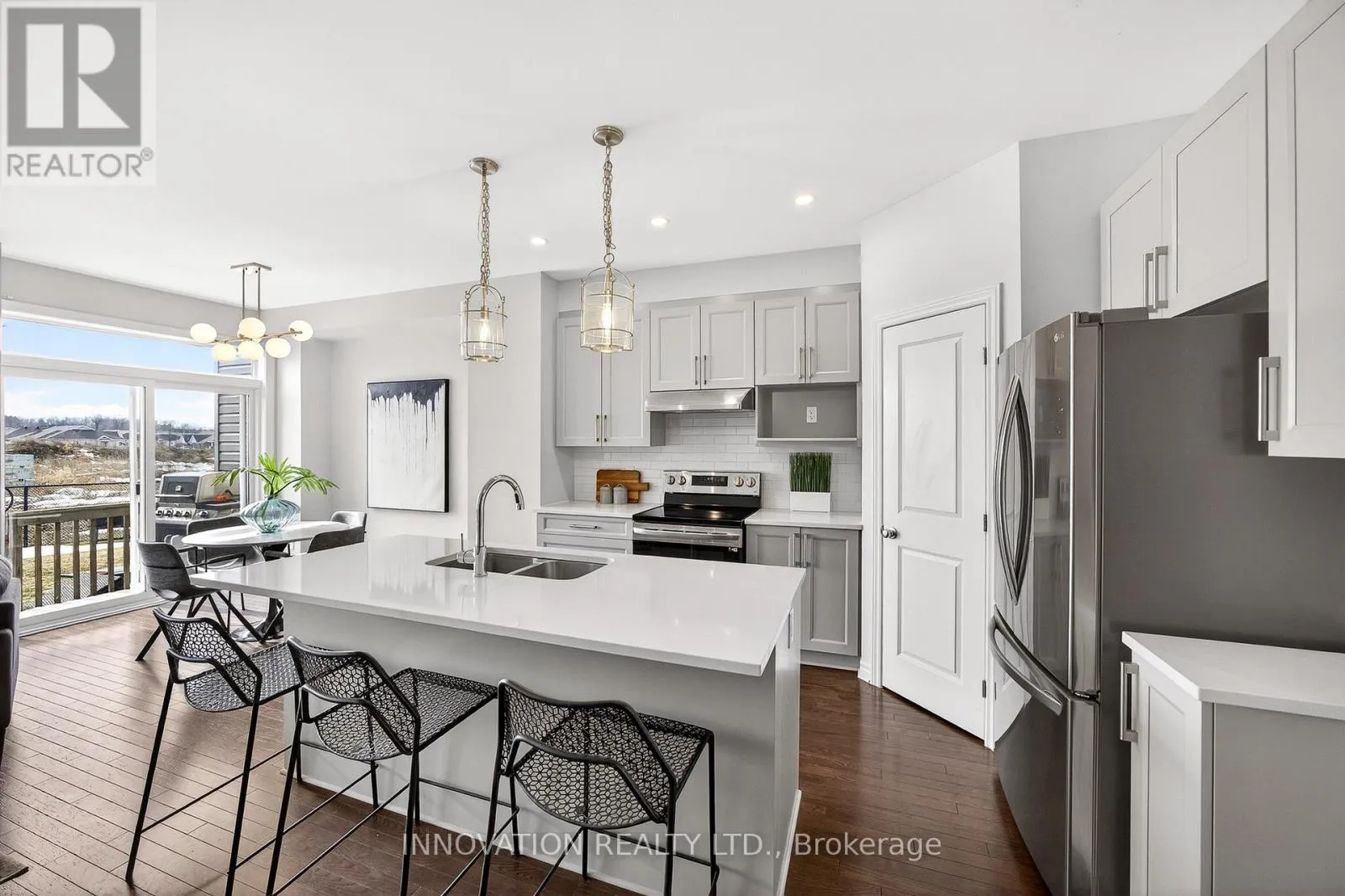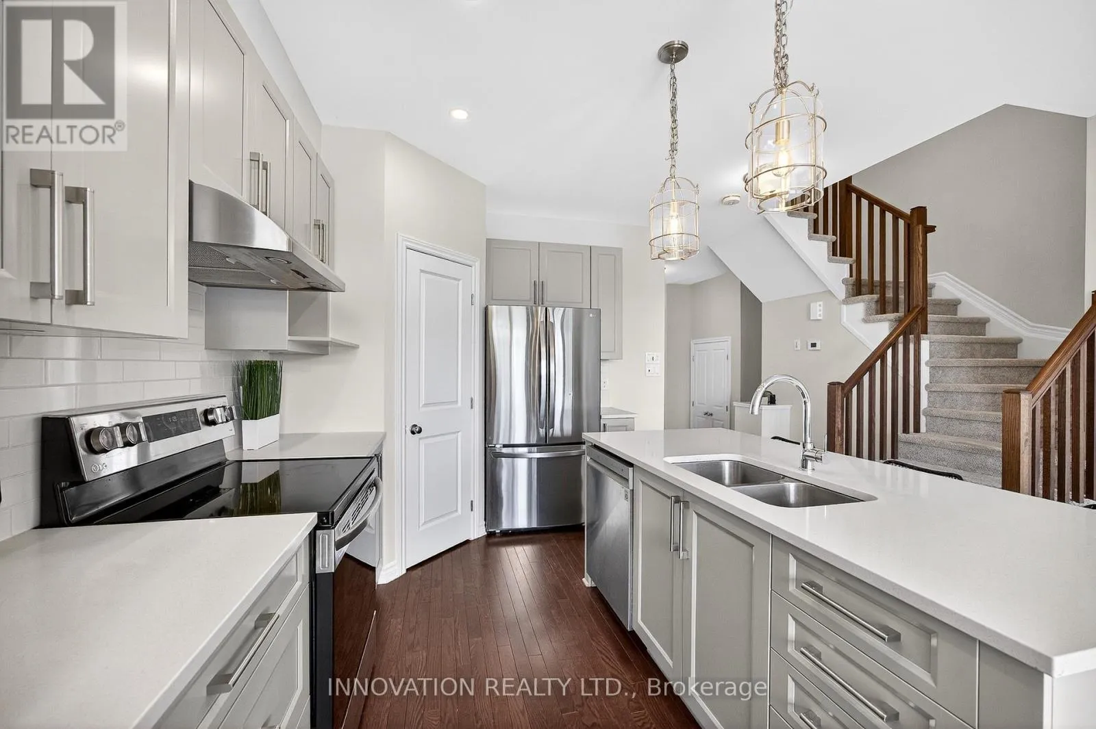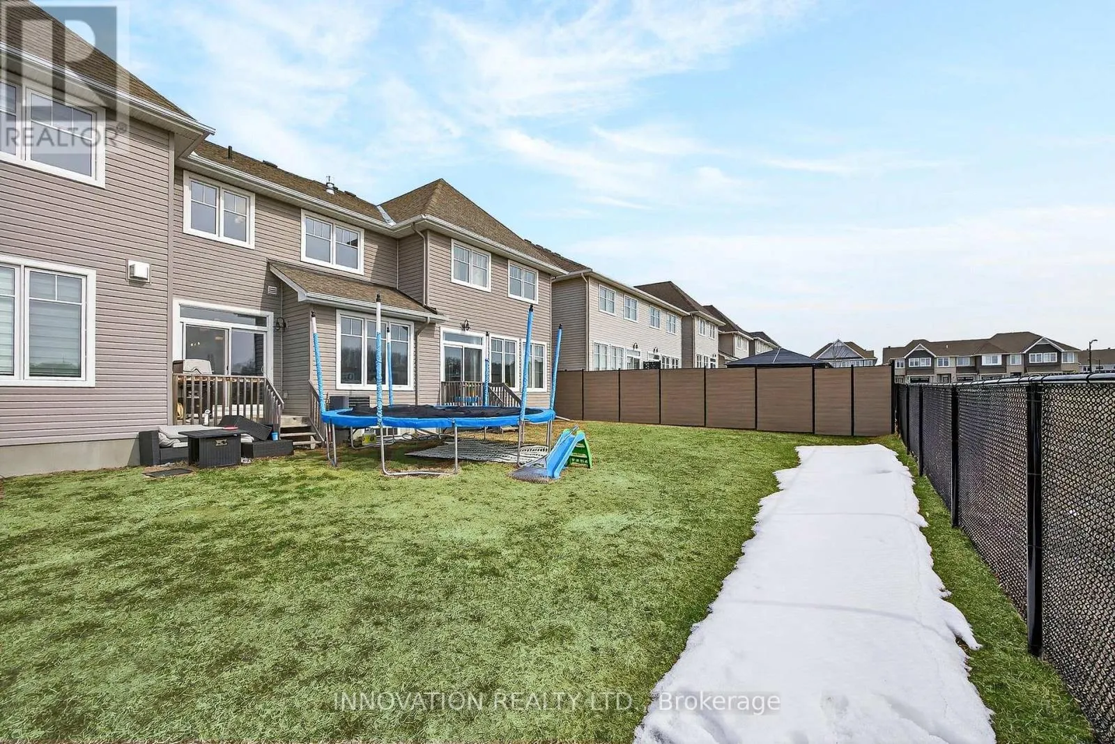 Cross Streets: Kanashtage Ter. & Antonio Farley St. ** Directions: Follow 417 E and 174 to Trim Rd in Orléans. Take the Trim Rd S exit. At the roundabout, take the 3rd exit onto Old Montréal Rd. Turn left onto Cardinal Creek Dr., then right onto Bonne-Renommée Ave., then right onto Kanashtage Terrace. Welcome to 321 Kanashtage Terrace, a tastefully upgraded Tamarack home with NO REAR NEIGHBOURS, offering 1855 sq. ft. of finished living area including a finished basement in the desirable community of Cardinal Creek in Orléans-Cumberland. This spacious 3-bedroom, 2.5-bath townhome features an open-concept main level, enhanced by sprawling 9-foot ceilings, rich hardwood flooring, upgraded lighting and large south-facing windows that allow natural light to permeate the level. The inviting living and dining areas are anchored by a cozy gas fireplace with a TV-ready wall, perfect for both everyday living and entertaining.The modern kitchen is both stylish and functional, featuring bright quartz countertops, pot & pendant lighting, stainless appliances, a large island with a breakfast bar, and a walk-in pantry, offering exceptional prep and storage space. Upstairs you'll find a well-appointed layout, including convenient second-level laundry with upper cabinets. The primary suite is a true retreat, featuring a spacious walk-in closet, and a luxurious ensuite with a large soaker tub and a walk-in shower. Two additional bedrooms, a 4-piece bathroom with quartz counters and laundry complete the level, providing excellent space and convenience for guests or growing families. The finished basement adds extra living space with a large recreation room - ideal for a home theatre, gym, or play area. Additional highlights include ample storage space and a single-car garage with entry to mudroom, adding both convenience and functionality. This home backs onto a future school and is just minutes from parks, trails, shopping and everyday amenities. It's also just a short commute to the future LRT, offering excellent long-term value and connectivity. Offering an ideal blend of space, function, and privacy, this home presents an exceptional opportunity in one of Orléans-Cumberland's fastest-growing neighbourhoods. (id:27476)