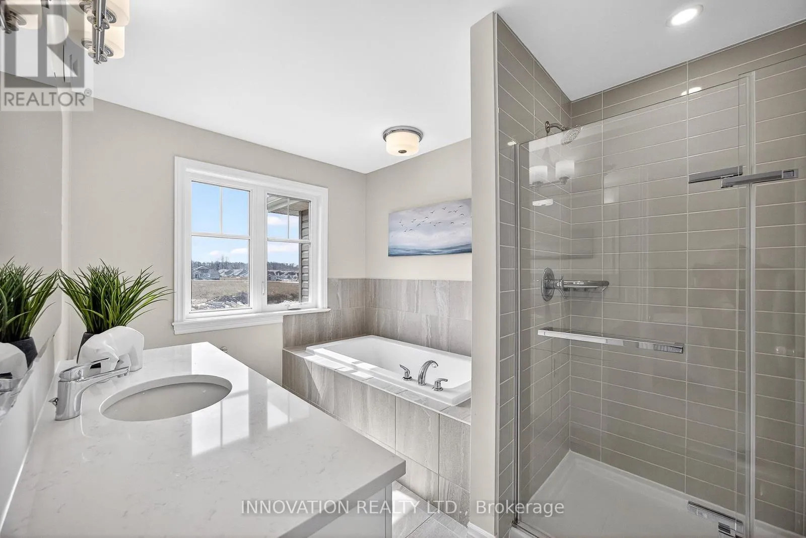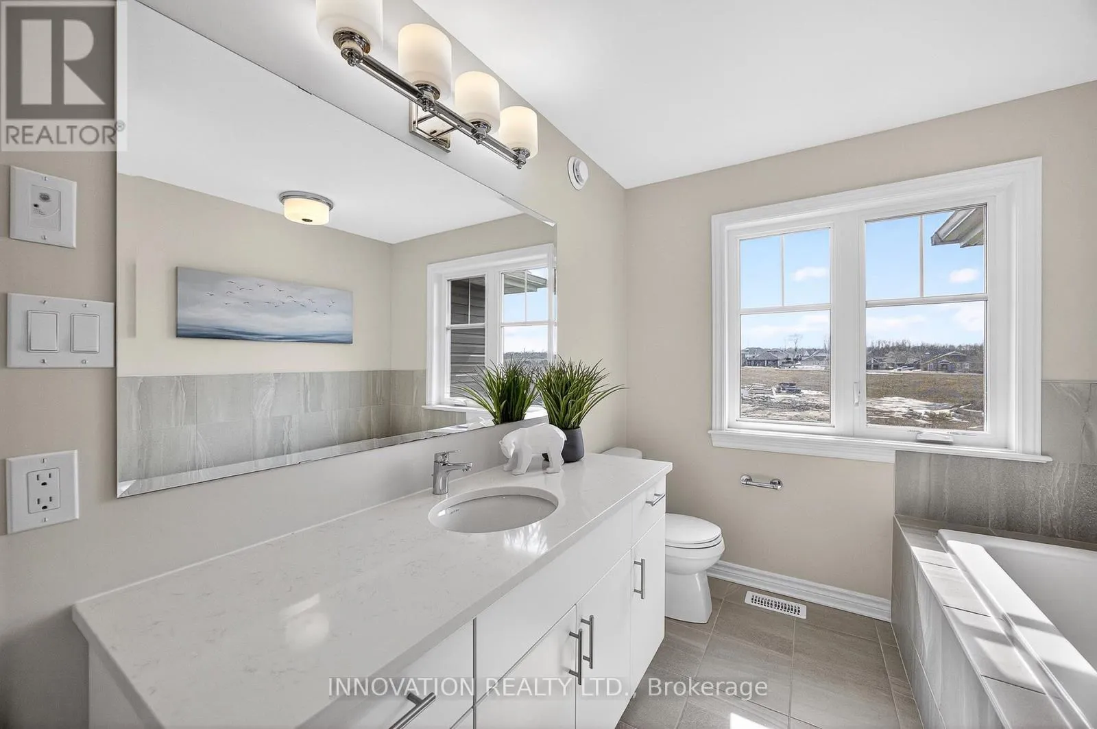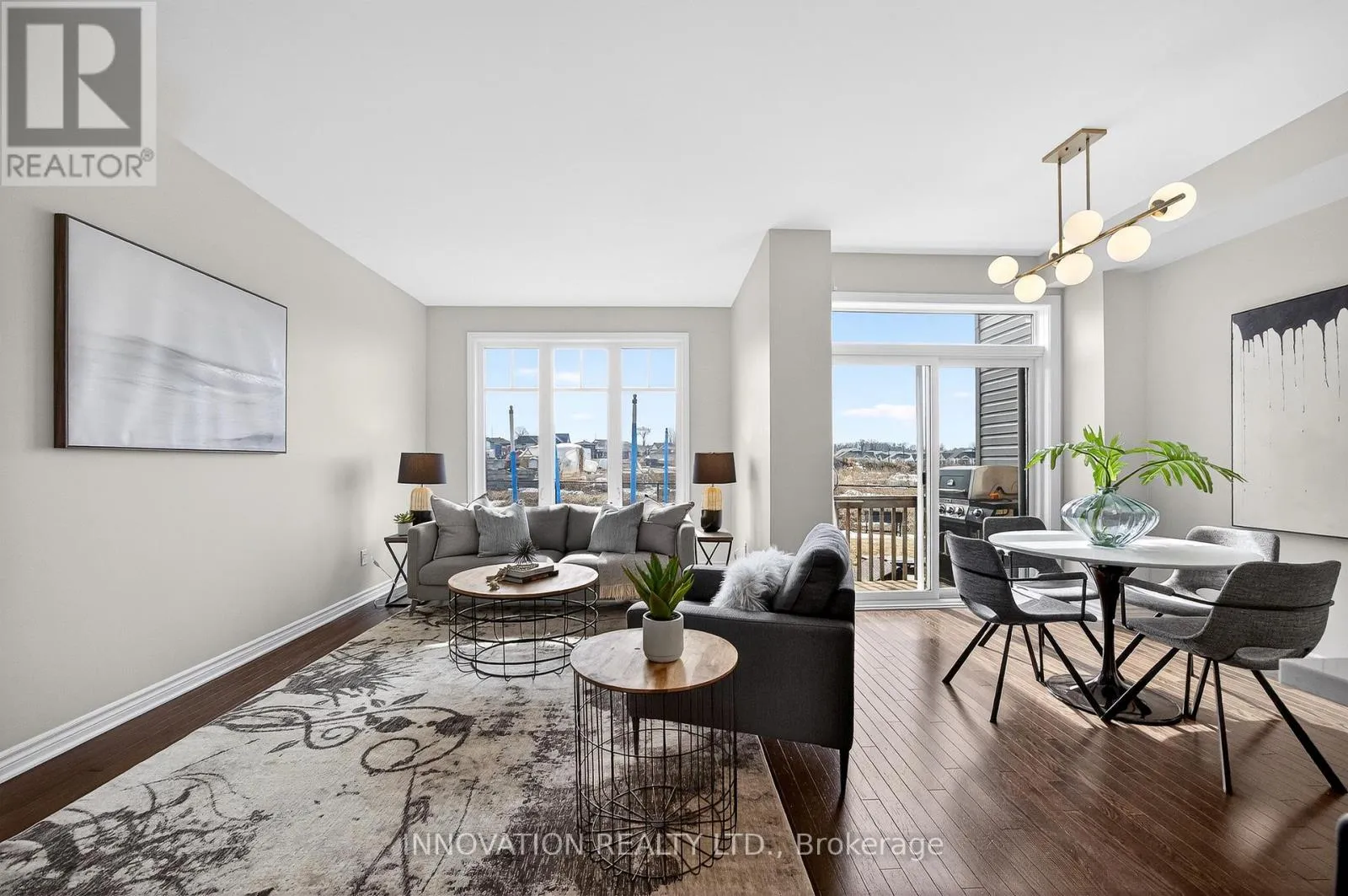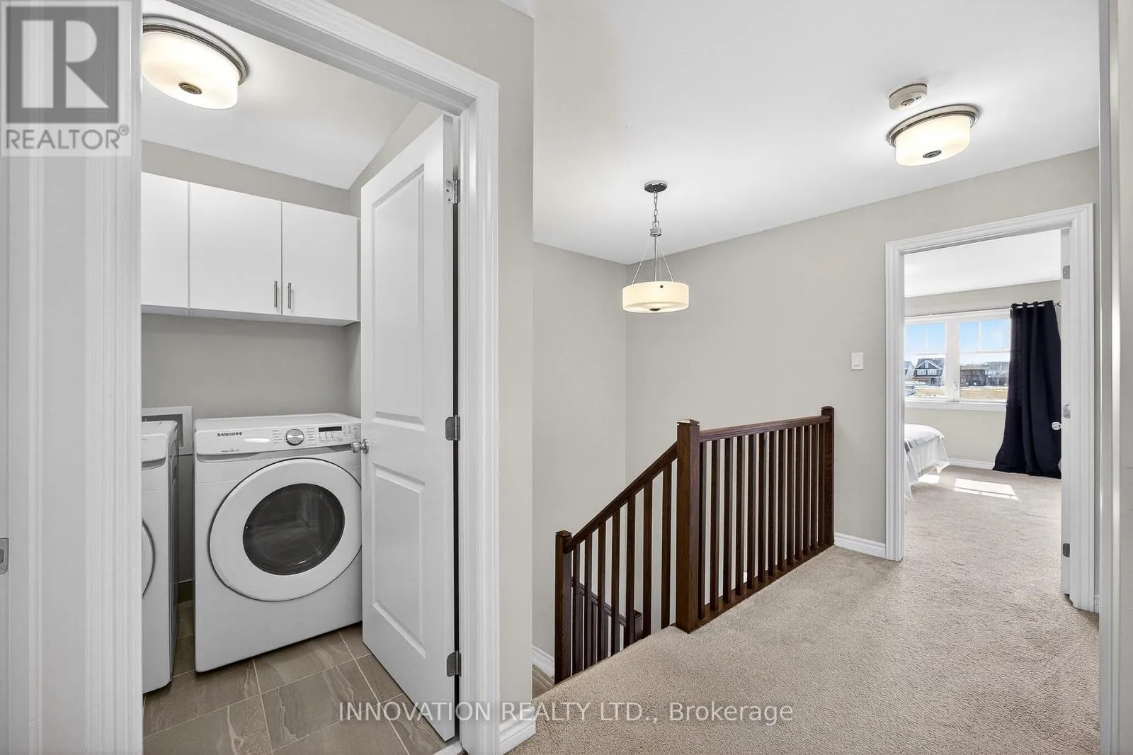 Cross Streets: Kanashtage Ter. & Antonio Farley St. ** Directions: Follow 417 E and 174 to Trim Rd in Orléans. Take the Trim Rd S exit. At the roundabout, take the 3rd exit onto Old Montréal Rd. Turn left onto Cardinal Creek Dr., then right onto Bonne-Renommée Ave., then right onto Kanashtage Terrace. Welcome to 321 Kanashtage Terrace, a tastefully upgraded Tamarack home with NO REAR NEIGHBOURS, offering 1855 sq. ft. of finished living area including a finished basement in the desirable community of Cardinal Creek in Orléans-Cumberland. This spacious 3-bedroom, 2.5-bath townhome features an open-concept main level, enhanced by sprawling 9-foot ceilings, rich hardwood flooring, upgraded lighting and large south-facing windows that allow natural light to permeate the level. The inviting living and dining areas are anchored by a cozy gas fireplace with a TV-ready wall, perfect for both everyday living and entertaining.The modern kitchen is both stylish and functional, featuring bright quartz countertops, pot & pendant lighting, stainless appliances, a large island with a breakfast bar, and a walk-in pantry, offering exceptional prep and storage space. Upstairs you'll find a well-appointed layout, including convenient second-level laundry with upper cabinets. The primary suite is a true retreat, featuring a spacious walk-in closet, and a luxurious ensuite with a large soaker tub and a walk-in shower. Two additional bedrooms, a 4-piece bathroom with quartz counters and laundry complete the level, providing excellent space and convenience for guests or growing families. The finished basement adds extra living space with a large recreation room - ideal for a home theatre, gym, or play area. Additional highlights include ample storage space and a single-car garage with entry to mudroom, adding both convenience and functionality. This home backs onto a future school and is just minutes from parks, trails, shopping and everyday amenities. It's also just a short commute to the future LRT, offering excellent long-term value and connectivity. Offering an ideal blend of space, function, and privacy, this home presents an exceptional opportunity in one of Orléans-Cumberland's fastest-growing neighbourhoods. (id:27476)