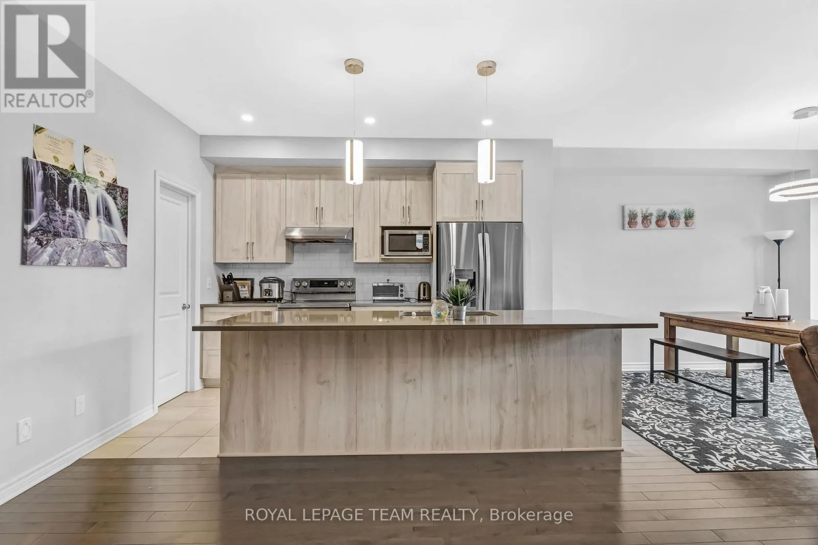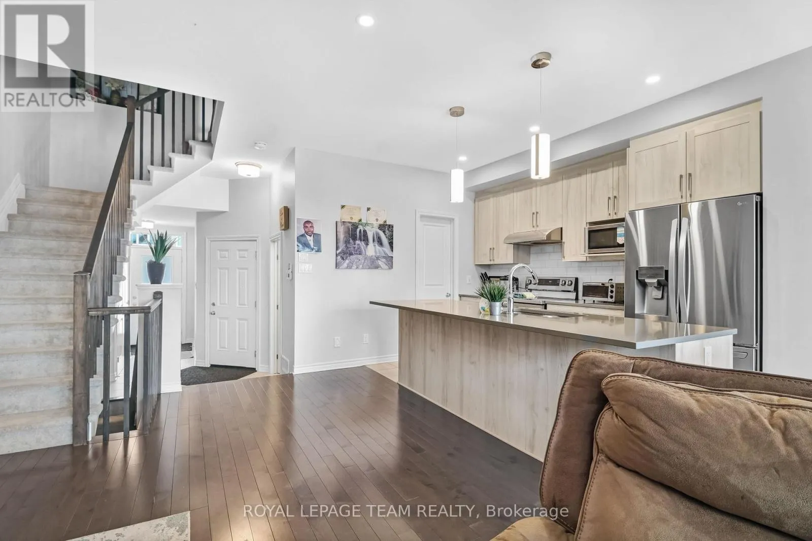 Cross Streets: Antonio Farley st & Kanashtage Terrace. ** Directions: From Old Montreal Rd turn to Cardinal Creek Dr, and then right on Famille-Laporte Ave, Turn left on Kanashtage Terrace, Property is on the right. Welcome to a beautiful Tamarack-built townhouse nestled in the sought-after Cardinal Creek Village in Orleans, ideally located close to parks and family-friendly amenities. As you step through the front door, you are greeted by a spacious and inviting living and dining area, perfect for both everyday living and entertaining. The main floor also features a modern kitchen complete with a large island, stainless steel appliances, a convenient powder room, and direct access to the garage. From the main level, step out into a beautiful backyard, offering the perfect space for outdoor relaxation and gatherings. On the second level, you will find a well-designed layout offering three generously sized bedrooms, including a primary bedroom with a large walk-in closet and a private ensuite. This level also includes a convenient laundry room equipped with a pedestal and additional storage space. Two additional bedrooms and another full bathroom complete the upper floor. The fully finished basement adds valuable extra living space, ideal for a family room, home office, or recreation area. Don't miss out-book your private showing today! (id:27476)