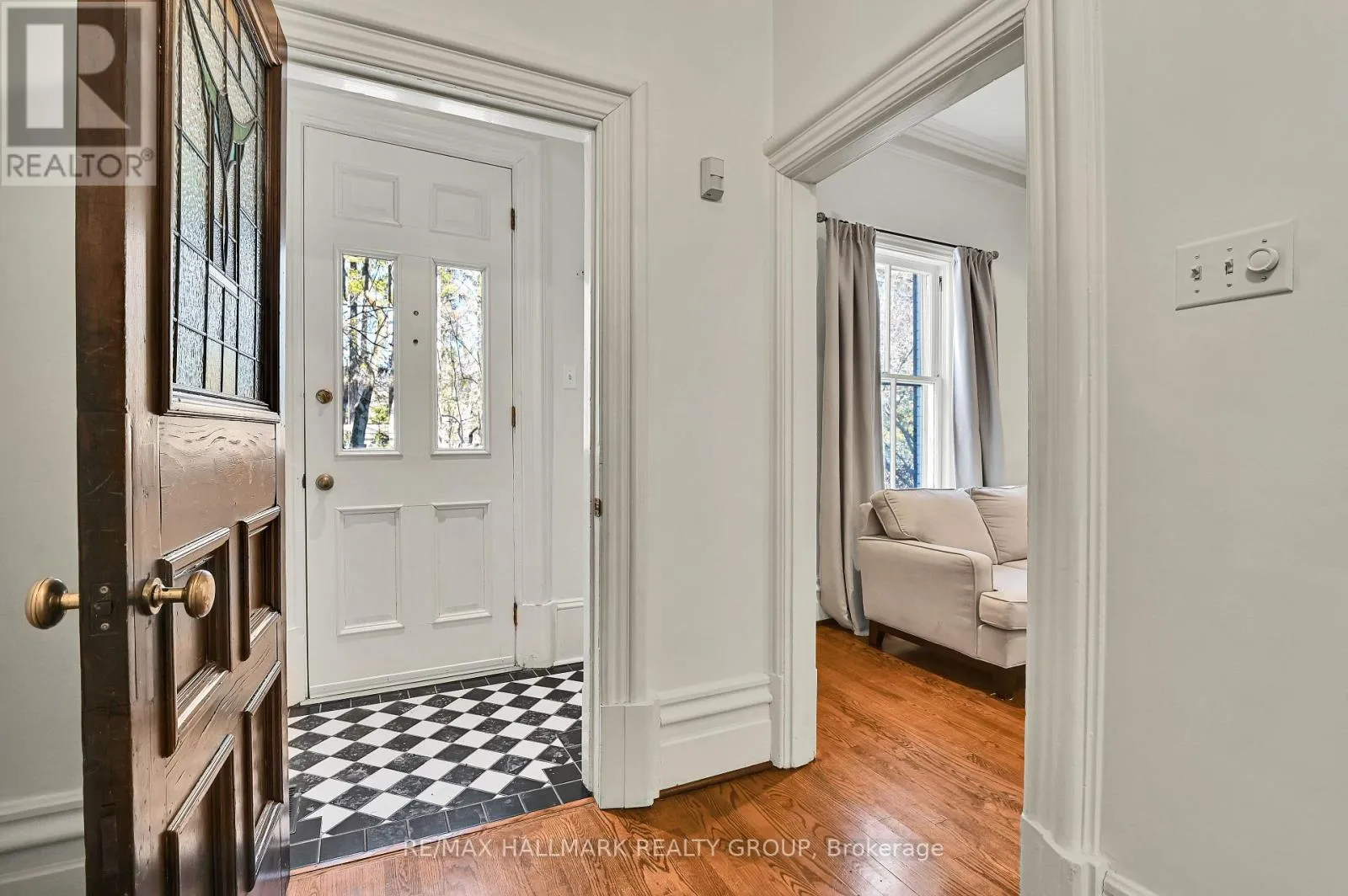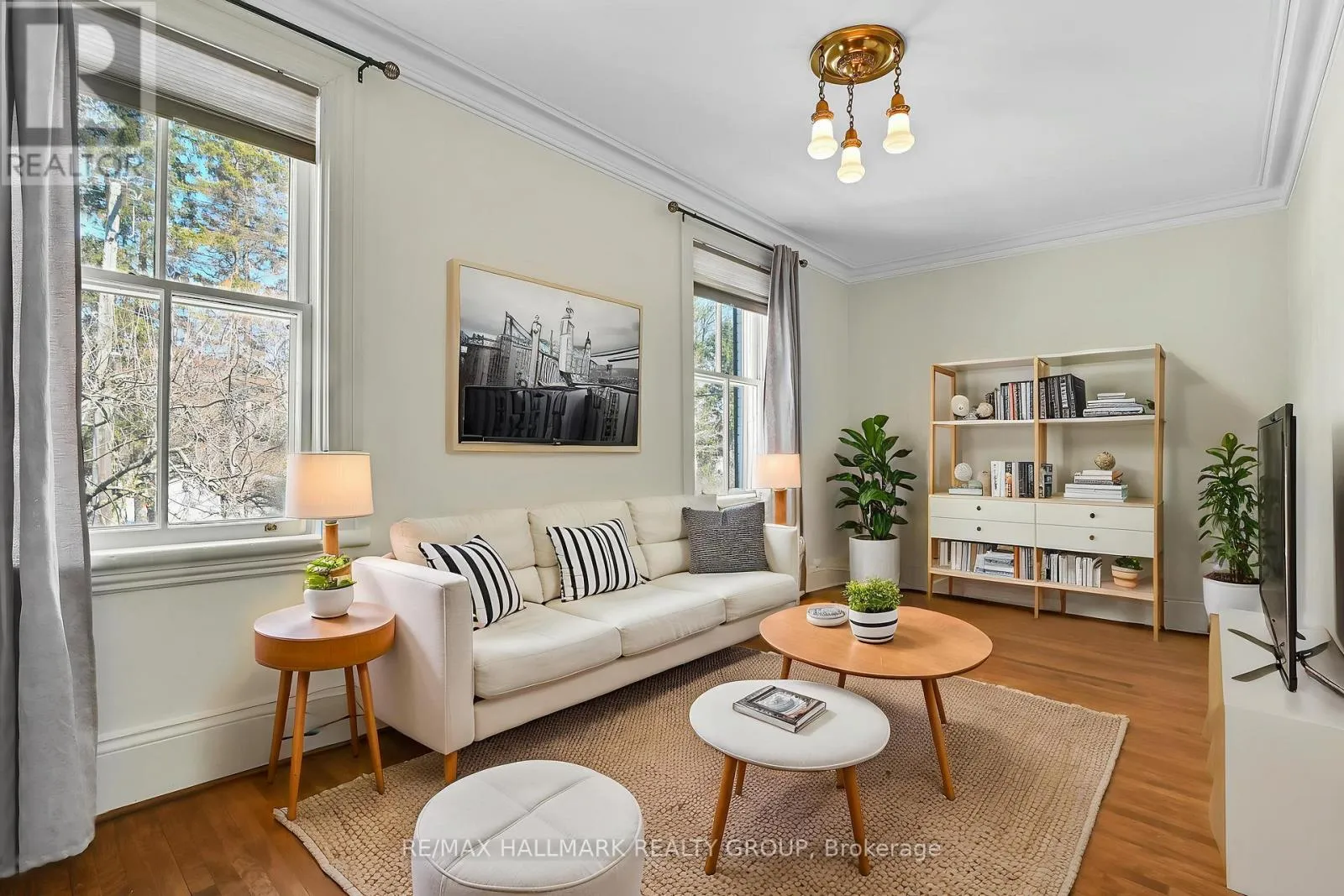 Cross Streets: MacKay St & Keefer St. ** Directions: Go north on Sussex past the National Art Gallery, Royal Mint, Embassies, Rideau Falls, Global Affairs, Old City Hall, and even catch a view of the Prime Ministers Residence as you turn right onto Mackay. Home is on your right. Timeless Heritage Brownstone in a Premier Location- Across from the Governor General's Residence & steps to Beechwood Village, Stanley Park, + the Rideau River, this full-brick 3-storey heritage brownstone blends historic charm with modern comfort in one of Ottawa's most coveted locations. Offering 4 bedrooms +2 full bathrooms across three levels, the main floor features an elegant, flexible layout. The focal fireplace can be highlighted in either the living or dining room, with easy conversion to gas if desired. The home also offers exceptional versatility, including the potential for a second-floor family room and a third-floor lounge with rooftop views. A bright white kitchen with a café-style eating area overlooks the private rear deck, creating a welcoming space for everyday living. The second level includes two generous rooms; one often used as a front-facing family room with views toward the Governor General's Residence. This floor also hosts two full bathrooms-one with a tiled shower, the other with a deep soaker tub-plus convenient second-floor laundry. The third level adds two additional bedrooms and a versatile lounge with a Juliet balcony, ideal for a home office, reading retreat, or relaxed sitting area. A full-height basement provides excellent storage and is notably dry, making it perfect for wine storage. Parking (1 vehicle) is accessed off of Keefer St. via a right of way (under the deck height restricted to standard car size). Thoughtful improvements over the years include a firewall in the attic, blown-in insulation in exterior and common walls and roof, repointed chimneys, updated roofing with snow and ice protection, upgraded electrical panel with copper wiring, new water service with copper plumbing, furnace, air conditioning, and modernized kitchen, bathrooms, and laundry. Timeless architectural details have been carefully preserved throughout, offering warmth, character, and enduring appeal in a truly remarkable heritage home. (id:27476)