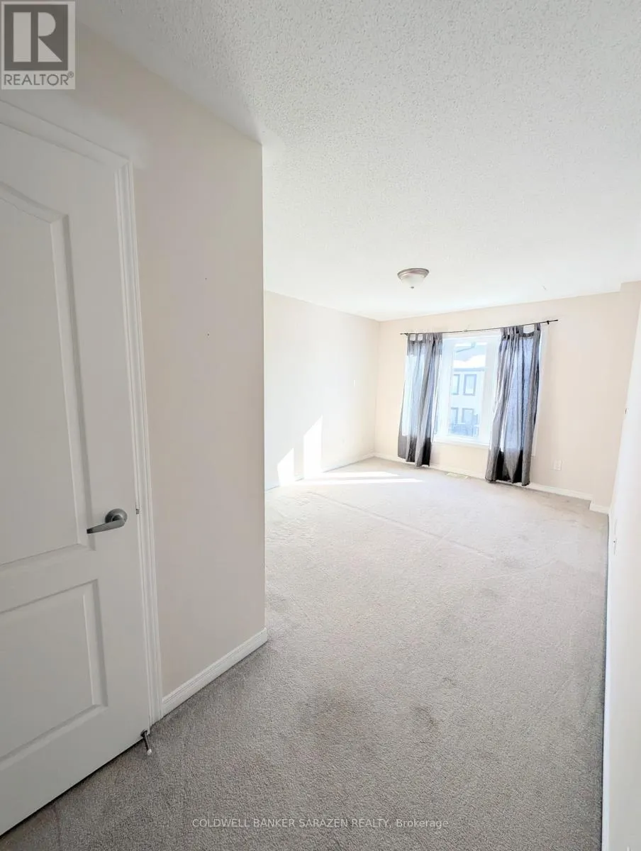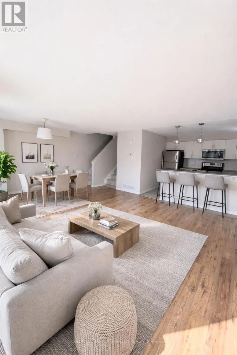South on Eagleson, Left on Radiant, right on Element IDEAL FOR YOUNG PROFESSIONALS, FIRST-TIME BUYERS OR INVESTORS! Welcome to Monahan Landing! This beautifully maintained 2-bedroom, 1.5-bath townhome offers the perfect combination of comfort, style, and low-maintenance living in one of Kanata South's most sought-after communities.Step inside to a tiled foyer that provides access to your attached garage and convenient flex space-perfect for a home office, study, or fitness nook. Upstairs, discover an inviting open-concept living area with gleaming floors, a spacious dining area, and a modern kitchen featuring stainless steel appliances, ample cabinetry, a center island, and generous counter space for meal prep or entertaining. Enjoy a SOUTH-facing, sunny private balcony just off the dining room-perfect for morning coffee or unwinding with evening sunsets. Upstairs, you'll find two generous bedrooms and a 4-piece bath. The primary suite includes a walk-in closet and plenty of natural light. Located on a quiet, family-friendly street close to parks, schools, transit, and shopping, this home is just minutes from Kanata Centrum, Tanger Outlets, and major routes 416 & 417- making commuting and errands a breeze. Designed for modern living, this home is perfect for anyone looking to enjoy the best of Kanata's south-end lifestyle. THIS HOME FEATURES: central air conditioning, an attached garage with a garage door opener, a verandah, a private balcony, and a private laneway (rare). - Association fee of $71/monthly for snow/garbage removal of a private street. **Some photos have been virtually staged. (id:27476)