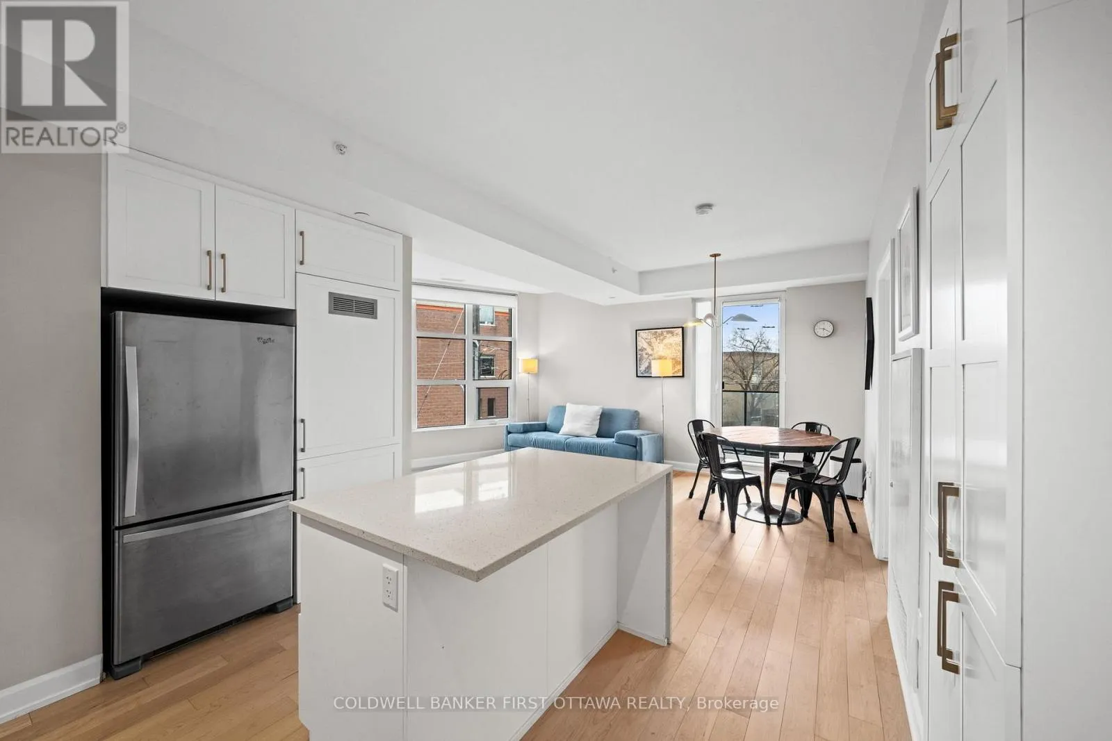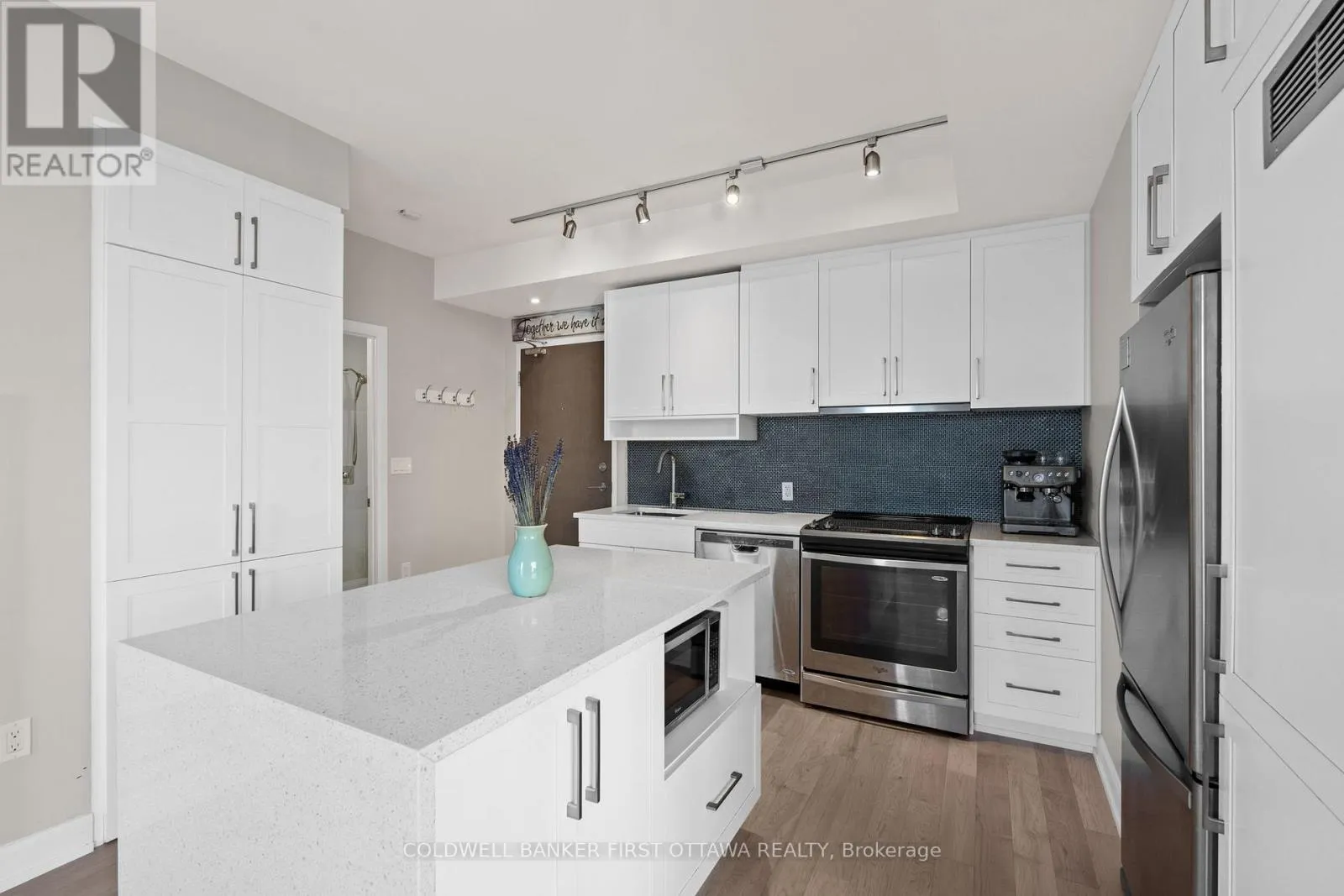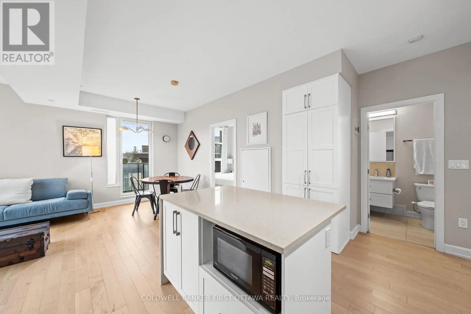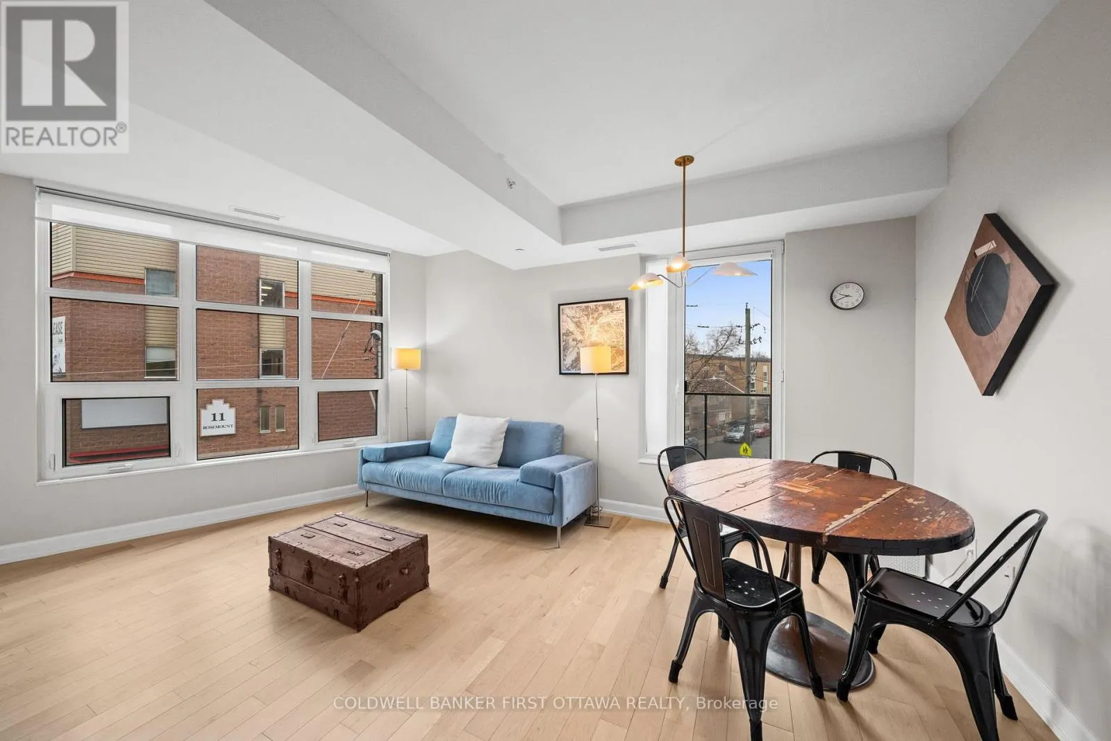 Cross Streets: Parkdale Ave and Wellington St W. ** Directions: North on Parkdale Ave, right onto Wellington St W, building at the corner of Rosemount and Wellington St W. Welcome to The Wellington, a boutique condo nestled in the heart of Hintonburg. Immerse yourself in the vibrant lifestyle of one of Ottawa's most coveted neighbourhoods, where shops, markets & restaurants are just steps away. Mooshu ice cream, Terra 20 and Timmies are IN THE BUILDING! This inviting 2-bed CORNER unit boasts maple hardwood floors, quartz countertops, in-unit laundry, and floor-to-ceiling windows that flood the space with natural light. The primary bedroom, which fits a King bed, features a dual walk-through closet & cheater door leading to the spa-like bath, with more quartz counters and an oversized walk-in glass shower. The second bedroom offers versatility, ideal for a home office and/or guest space. Step out onto the south-facing balcony with your morning coffee or unwind with an evening cocktail, unless of course you would rather head in either direction along Wellington to one of the various restaurants in the area. Complete with an underground parking space and storage locker, this condo is both sleek and functional. You'll also enjoy easy access to the Ottawa River pathways, and proximity to Civic Hospital campus, Mooney's Bay, LRT, and the 417. Come and experience the charm of Hintonburg and the trendy vibe of this condo for yourself! (id:27476)