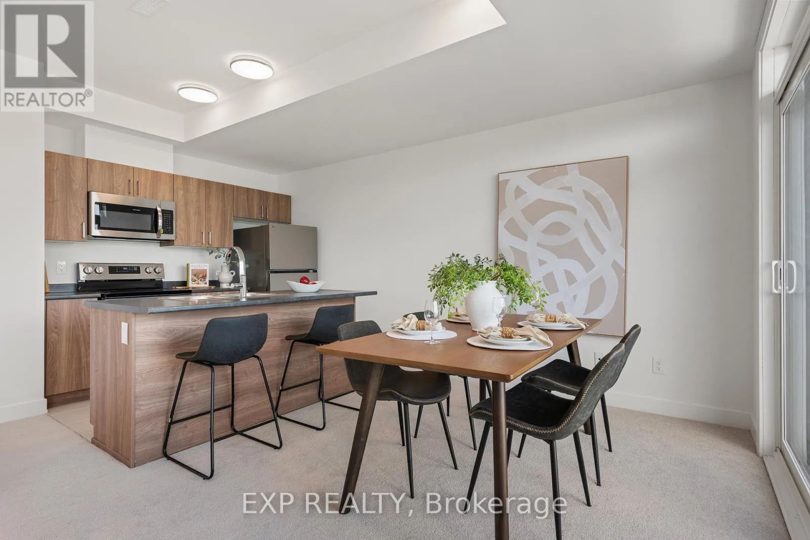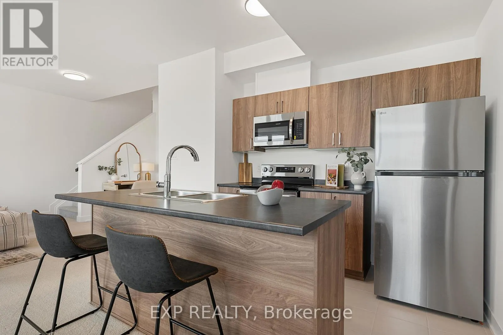 Cross Streets: Fallowfield Road and Silhouette Private. ** Directions: From Strandherd Drive to East on Fallowfield road and turn right on Silhouette Private. THIS HOME QUALIFIES FOR THE HST NEW HOUSING REBATE!! Welcome to 1005 Silhouette Private, a brand new upper unit condo that blends modern design, bright open spaces and everyday convenience in the heart of Barrhaven's growing community at The Junction. Thoughtfully designed with clean lines and oversized windows, this home offers a warm and inviting atmosphere from the moment you step inside. The main level features an expansive open concept layout filled with natural light. The living and dining areas flow effortlessly together, framed by a wall of windows and sliding doors that open onto your private balcony. A perfect spot for morning coffee or unwinding at the end of the day. The kitchen is stylish and functional with flat panel cabinetry, stainless steel appliances, a central island with seating and a well-planned layout that keeps everything within easy reach. A convenient powder room and a bonus study nook complete this level, adding flexibility for work, organization or a small tech space. Upstairs, two generously sized bedrooms offer comfort and privacy. The primary suite includes a walk-in closet and a three piece ensuite, while the second bedroom sits beside a full bathroom and linen storage. Laundry is also located on this level for added ease. With 2 bedrooms, 2.5 bathrooms, upgraded finishes and a bright airy feel throughout, this home is truly move in ready. Outside, enjoy a private balcony and the simplicity of an exterior parking spot. Located steps from everyday amenities, cafes, shops, green spaces and only minutes to transit, parks, schools and the new LRT extension, this is a community designed for convenience and connection. If you are looking for a stylish low maintenance home with a smart layout and modern finishes, 1005 Silhouette Private is a must see. Located just minutes from shopping and Costco, this home offers modern living with unparalleled convenience. (id:27476)