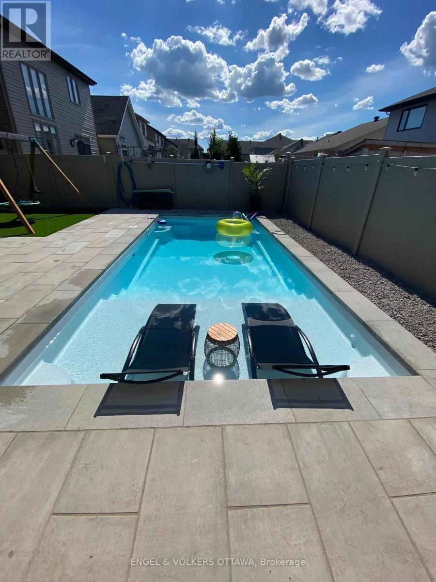 Cross Streets: Percheron Way and Balikun Heights. ** Directions: Go East from Robert Grant Ave onto Bobolink Ridge, then go North on Livery St then East on Balikun Heights. Welcome to this stunning and thoughtfully designed 4-bedroom Richcraft home in the highly sought-after Blackstone community. Built in 2018 and offering approximately 2,400 sq ft of beautifully finished living space, this home perfectly blends modern elegance with everyday comfort in a family-friendly neighbourhood close to top-rated schools, walking trails, shopping, and grocery amenities. Step inside to discover a bright, open-concept layout highlighted by 7" wide white oak hardwood flooring and a warm, inviting atmosphere. The spacious living area features a cozy fireplace and flows seamlessly into a spectacular chef-inspired kitchen, complete with quartz countertops, ample cabinetry, and a functional layout ideal for both entertaining and daily living. Upstairs, you'll find four generously sized bedrooms, including a luxurious primary suite offering two walk-in closets and a private ensuite bath. With a total of three well-appointed bathrooms, this home provides comfort and convenience for the whole family. The outdoor space is a true backyard oasis, featuring a beautiful in-ground fiberglass pool-perfect for relaxing or entertaining all summer long. Additional highlights include a double-car garage and a prime location in one of Blackstone's most desirable areas, surrounded by parks, schools, and everyday essentials. This exceptional property offers the perfect balance of style, space, and location-an ideal place to call home. (id:27476)