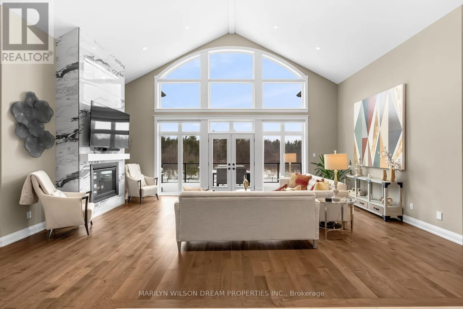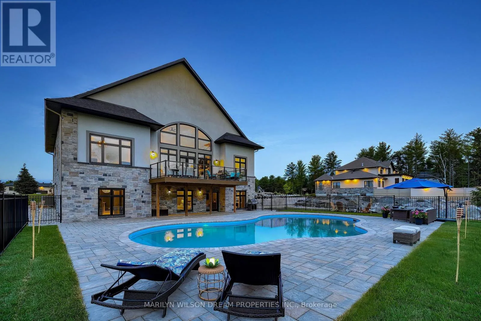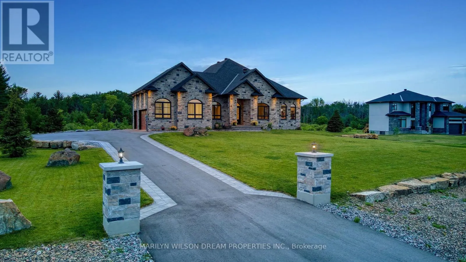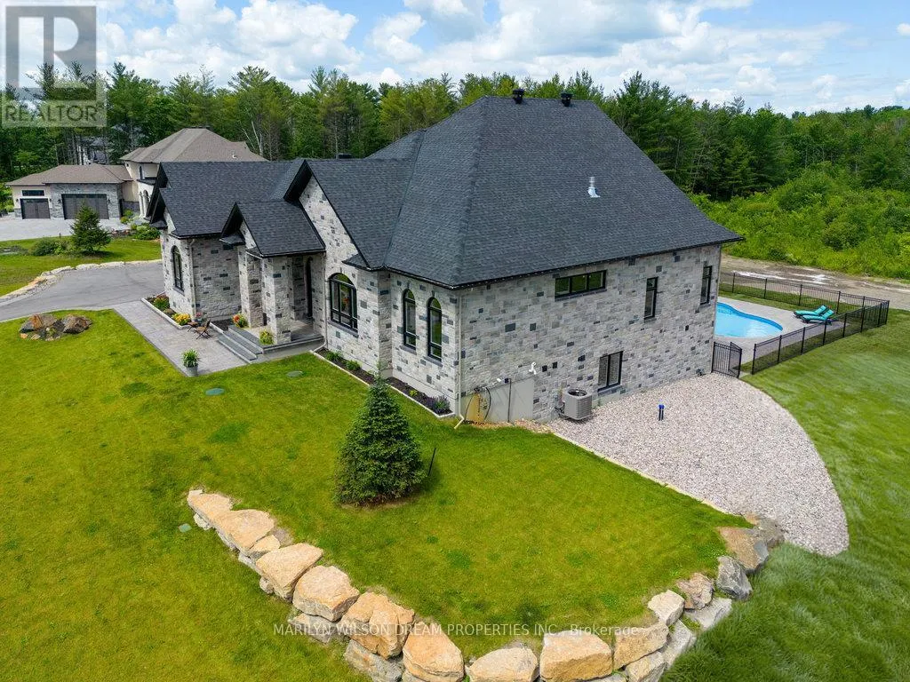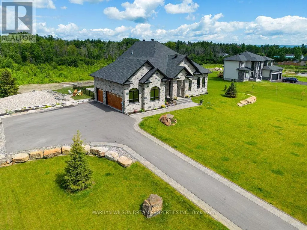 Cross Streets: Hedley Way and Dunrobin Road. ** Directions: Starting at March Rd and Dunrobin Rd, head onto Dunrobin Rd for 1.3 km, then turn left onto Hedley Way: The destination will be on the right. Elevate your lifestyle in this 2021-built executive bungalow at 324 Hedley Way, set on a rare, expansive 182 x 527 ft private lot in prestigious Kanata North, backing onto forest for ultimate seclusion close to everything. A grand driveway approaches the bright 3-car garage, perfect for car enthusiasts or family needs. Step Inside to soaring 12-ft ceilings throughout and a breathtaking 19-ft cathedral great room flood the home with light and volume, one-level luxury redefined. The chef's kitchen is exceptional: hand-glazed cabinetry, expansive granite island, induction cooktop with pot filler, dual ovens, Frigidaire commercial-grade fridge and freezer, dedicated wine bar, walk-in pantry, and integrated workspace. Retreat to the primary suite oasis featuring a double-sided fireplace and spa-like ensuite with oversized 6.5 x 6 ft glass shower, deep soaker tub, dual vanities, private water closet, and massive walk-in closet. The primary suite alone lives like a luxury condo, bedroom, spa bath, and boutique walk-in totalling over 700 square feet. A custom staircase descends to the bright walkout lower level (9'6" ceilings, in-floor radiant heat) boasting a dedicated theatre room, wet bar, games area, and two additional bedrooms sharing a Jack & Jill bath, ideal as a second living space. Outside, resort-style bliss awaits: multi-tiered landscaping, mature forest privacy, and a heated saltwater pool. Your private escape, just minutes from Kanata's tech hub and amenities. True refined resort living in one of Ottawa's most sought-after enclaves. Don't miss this exceptional opportunity. (id:27476)