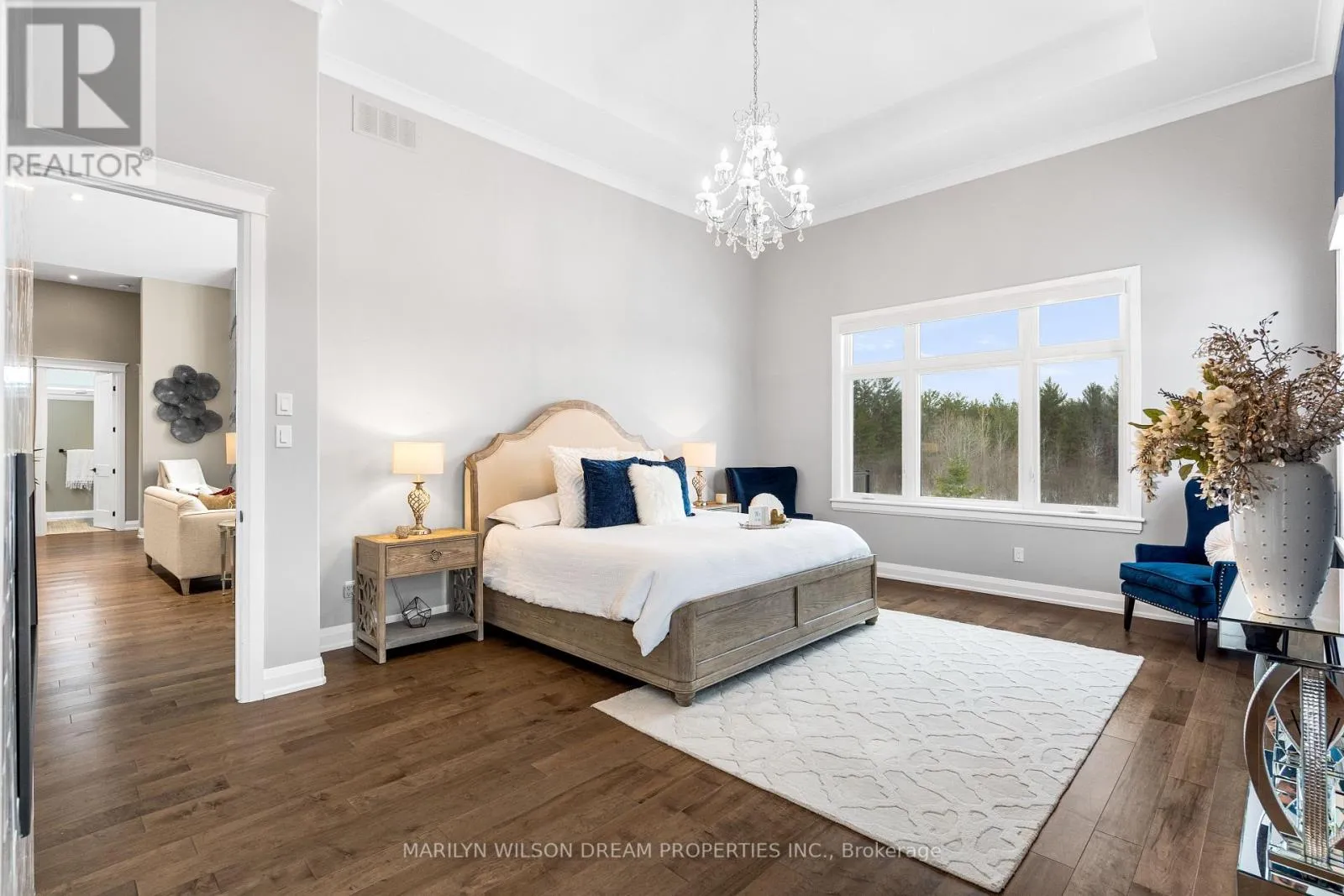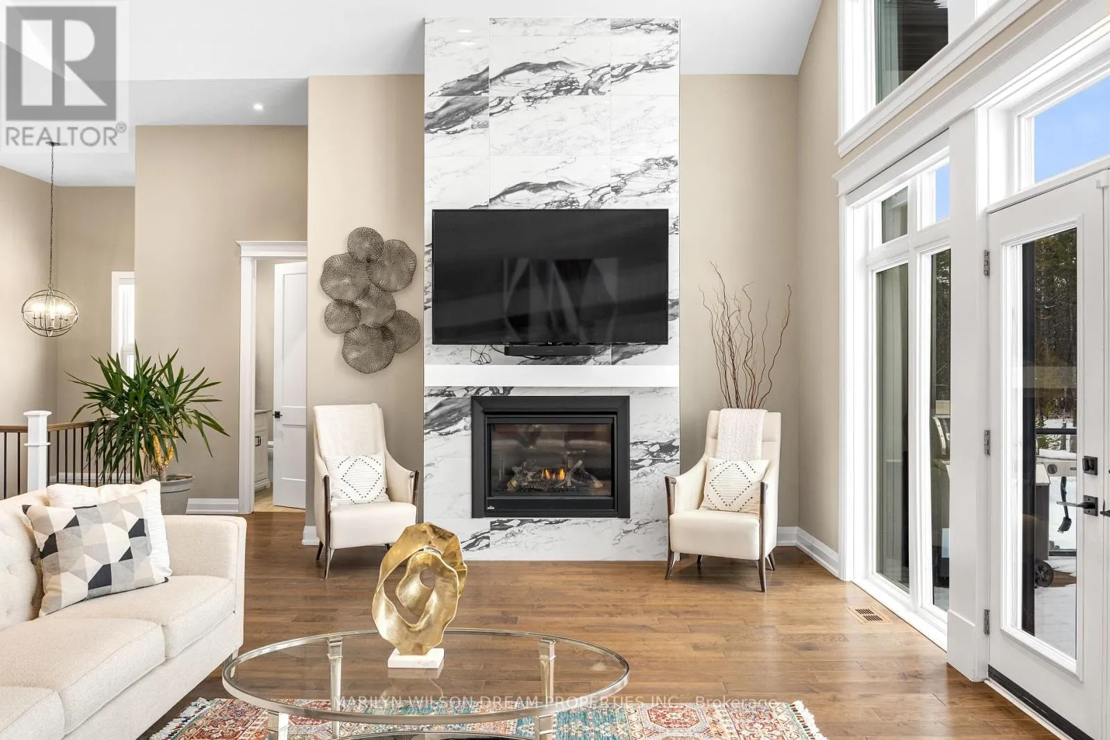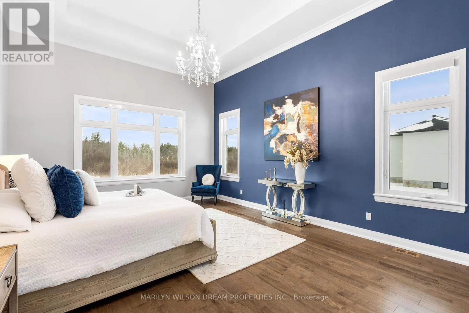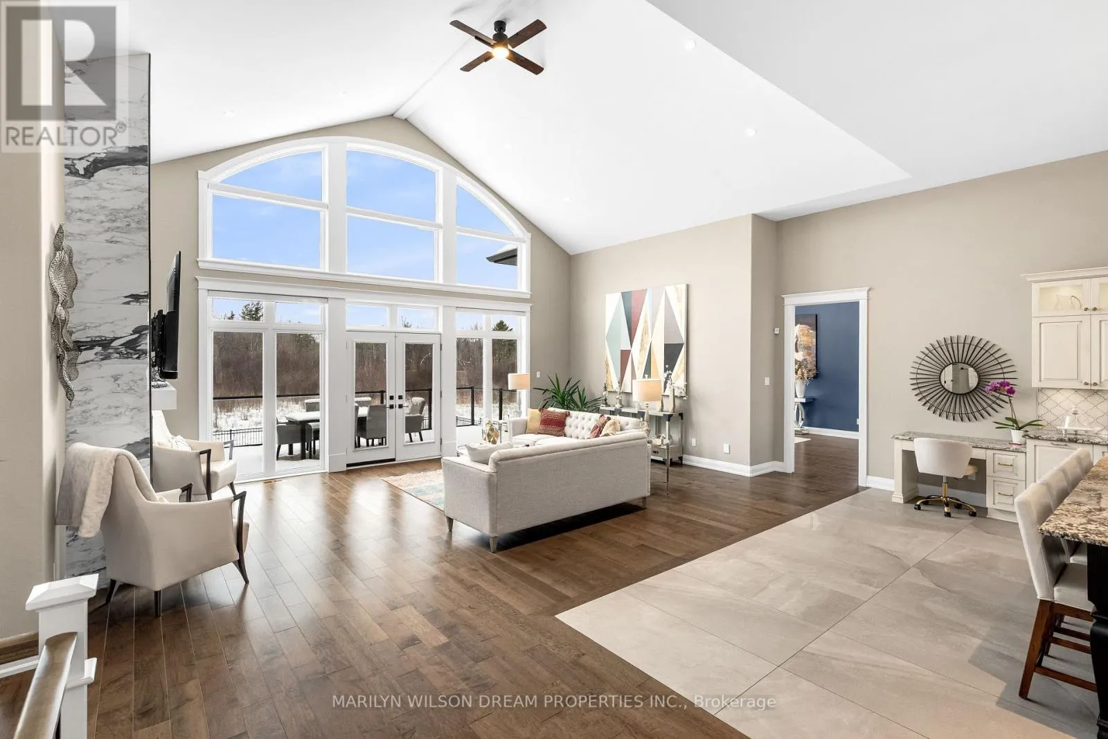 Cross Streets: Hedley Way and Dunrobin Road. ** Directions: Starting at March Rd and Dunrobin Rd, head onto Dunrobin Rd for 1.3 km, then turn left onto Hedley Way: The destination will be on the right. Elevate your lifestyle in this 2021-built executive bungalow at 324 Hedley Way, set on a rare, expansive 182 x 527 ft private lot in prestigious Kanata North, backing onto forest for ultimate seclusion close to everything. A grand driveway approaches the bright 3-car garage, perfect for car enthusiasts or family needs. Step Inside to soaring 12-ft ceilings throughout and a breathtaking 19-ft cathedral great room flood the home with light and volume, one-level luxury redefined. The chef's kitchen is exceptional: hand-glazed cabinetry, expansive granite island, induction cooktop with pot filler, dual ovens, Frigidaire commercial-grade fridge and freezer, dedicated wine bar, walk-in pantry, and integrated workspace. Retreat to the primary suite oasis featuring a double-sided fireplace and spa-like ensuite with oversized 6.5 x 6 ft glass shower, deep soaker tub, dual vanities, private water closet, and massive walk-in closet. The primary suite alone lives like a luxury condo, bedroom, spa bath, and boutique walk-in totalling over 700 square feet. A custom staircase descends to the bright walkout lower level (9'6" ceilings, in-floor radiant heat) boasting a dedicated theatre room, wet bar, games area, and two additional bedrooms sharing a Jack & Jill bath, ideal as a second living space. Outside, resort-style bliss awaits: multi-tiered landscaping, mature forest privacy, and a heated saltwater pool. Your private escape, just minutes from Kanata's tech hub and amenities. True refined resort living in one of Ottawa's most sought-after enclaves. Don't miss this exceptional opportunity. (id:27476)