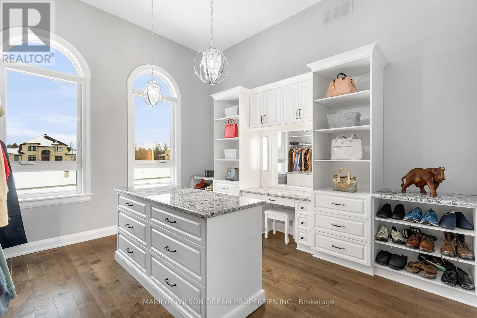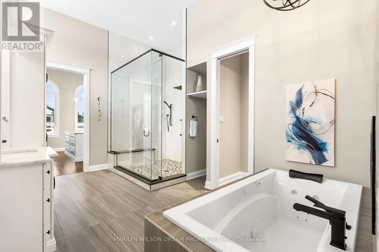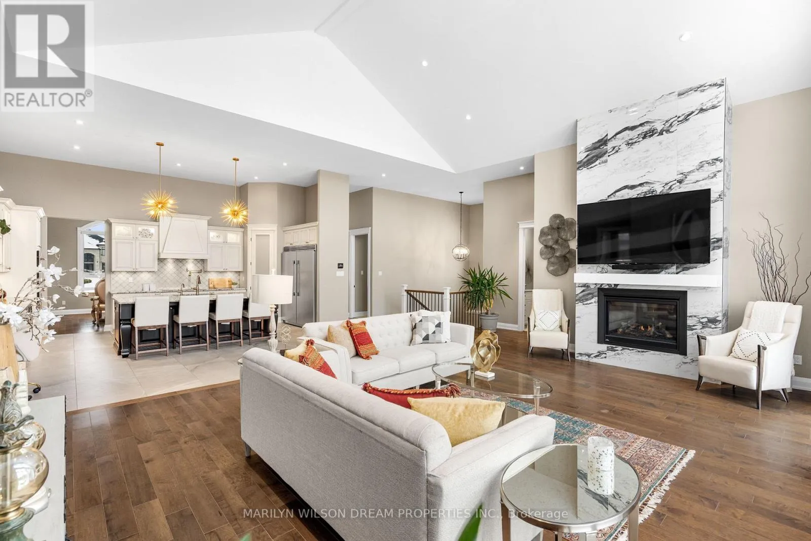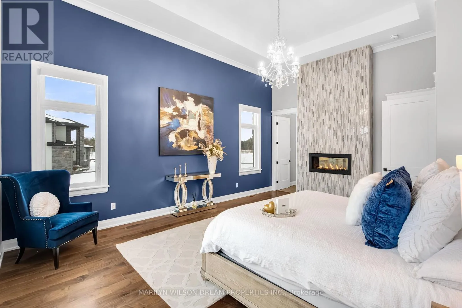 Cross Streets: Hedley Way and Dunrobin Road. ** Directions: Starting at March Rd and Dunrobin Rd, head onto Dunrobin Rd for 1.3 km, then turn left onto Hedley Way: The destination will be on the right. Elevate your lifestyle in this 2021-built executive bungalow at 324 Hedley Way, set on a rare, expansive 182 x 527 ft private lot in prestigious Kanata North, backing onto forest for ultimate seclusion close to everything. A grand driveway approaches the bright 3-car garage, perfect for car enthusiasts or family needs. Step Inside to soaring 12-ft ceilings throughout and a breathtaking 19-ft cathedral great room flood the home with light and volume, one-level luxury redefined. The chef's kitchen is exceptional: hand-glazed cabinetry, expansive granite island, induction cooktop with pot filler, dual ovens, Frigidaire commercial-grade fridge and freezer, dedicated wine bar, walk-in pantry, and integrated workspace. Retreat to the primary suite oasis featuring a double-sided fireplace and spa-like ensuite with oversized 6.5 x 6 ft glass shower, deep soaker tub, dual vanities, private water closet, and massive walk-in closet. The primary suite alone lives like a luxury condo, bedroom, spa bath, and boutique walk-in totalling over 700 square feet. A custom staircase descends to the bright walkout lower level (9'6" ceilings, in-floor radiant heat) boasting a dedicated theatre room, wet bar, games area, and two additional bedrooms sharing a Jack & Jill bath, ideal as a second living space. Outside, resort-style bliss awaits: multi-tiered landscaping, mature forest privacy, and a heated saltwater pool. Your private escape, just minutes from Kanata's tech hub and amenities. True refined resort living in one of Ottawa's most sought-after enclaves. Don't miss this exceptional opportunity. (id:27476)