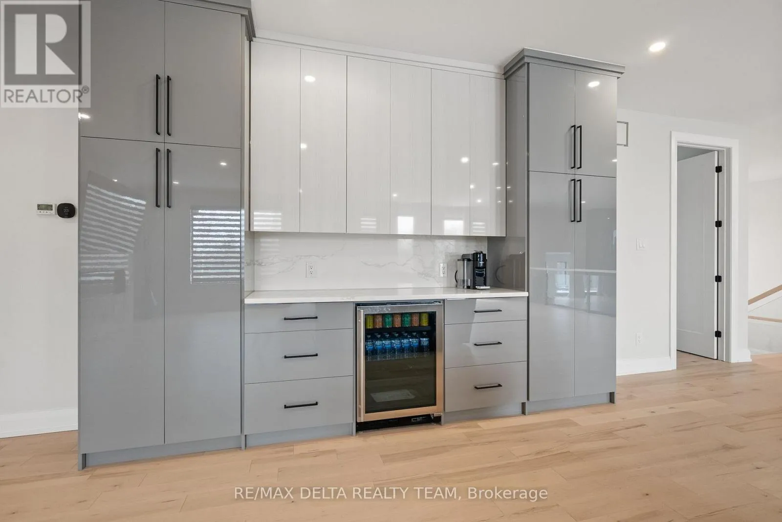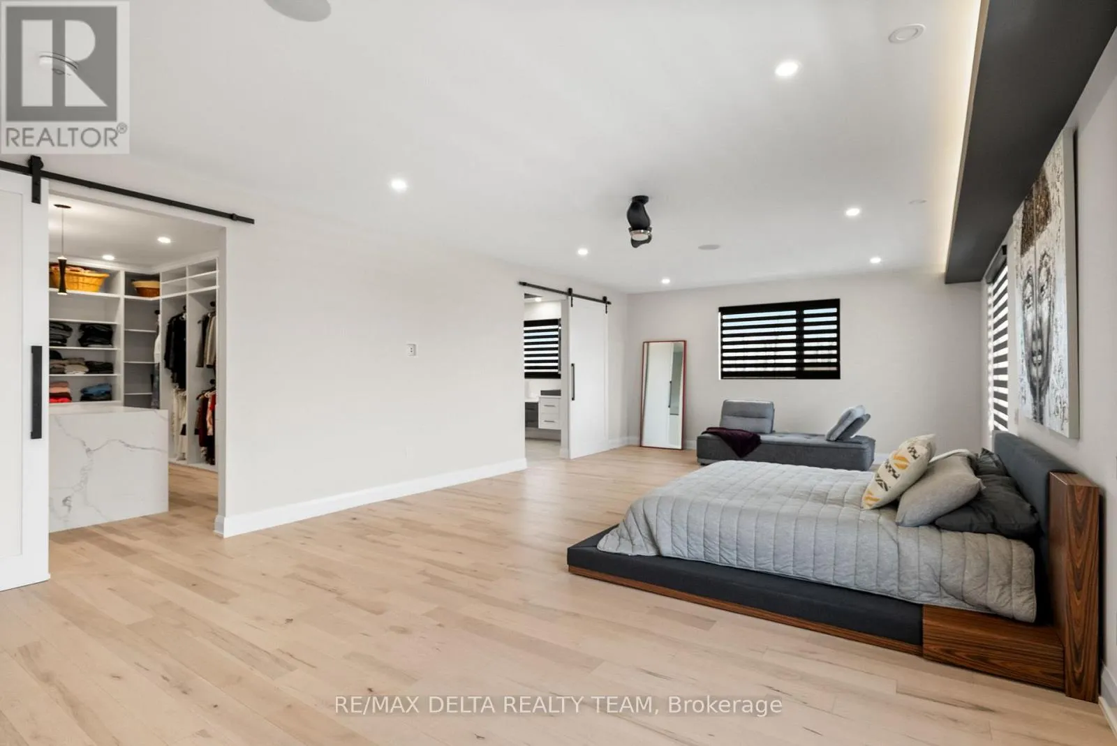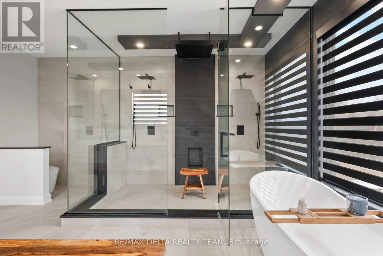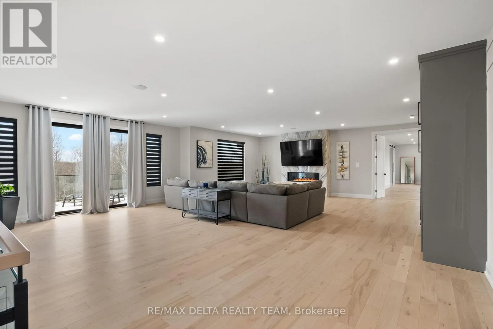 Albion Rd & Mitch Owens Dr. Tailored for the executive lifestyle, perfected for family living. Welcome to 663 Ballycastle Crescent a showstopping modern residence with commanding curb appeal, set on a quiet crescent lined with prestigious homes and backing onto peaceful open space. With over 5,700 sq. ft. of refined living space, this 5-bedroom, 6-bathroom home is a true architectural statement. The exterior offers bold, clean lines and grand scale, while inside, elegance meets innovation. Soaring 20-foot ceilings and a dramatic open-riser staircase set the tone in the main living area anchored by a double-sided porcelain-wrapped fireplace and lighted artwork niches. Maple and leather-finished porcelain floors run throughout the main level. The kitchen is both luxurious and functional, with dual waterfall quartz islands, Thermador appliances, a walk-in pantry, and a striking glass wine feature. A spacious main floor suite with walk-in closet and ensuite offers flexible comfort for guests or extended family. Upstairs, an 830 sq. ft. loft overlooks the great room, connecting two bedrooms each with private ensuites and walk-ins plus a bar area. The 540 sq. ft. primary suite offers a stunning gas fireplace, a dream walk-in closet with quartz island and a spa-inspired ensuite with freestanding tub, porcelain finishes, and custom-lit glass shower with rain heads and jets. The lower level features radiant-heated floors, a fireplace lounge, wet bar, theater, fifth bedroom and full bath, and a 900 sq. ft. commercial-grade gym with mirrors and glass dividers. Built-in media and smart systems run throughout. A 1,200 sq. ft. triple garage offers an oversized bay, loft storage, and backyard access. Two expansive decks add outdoor living space. Minutes from the new Hard Rock Casino and surrounded by luxury. This is a home that makes a statement. (id:27476)