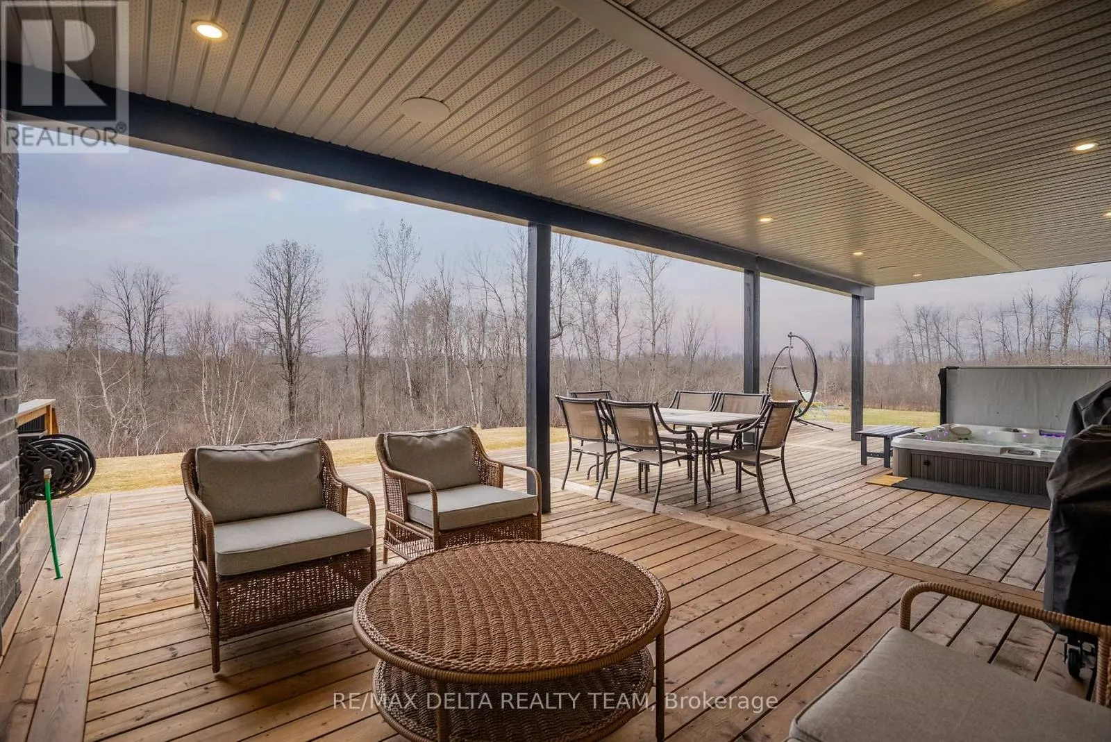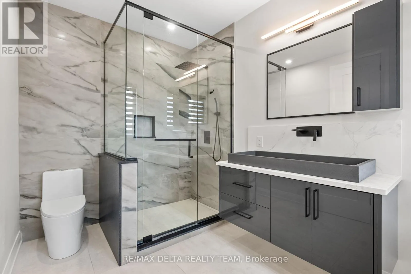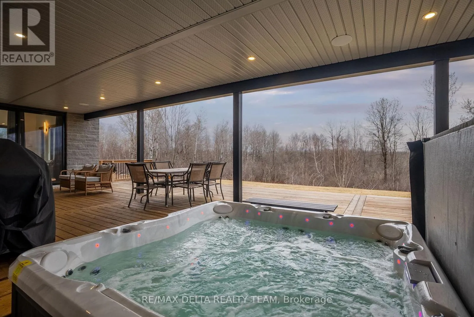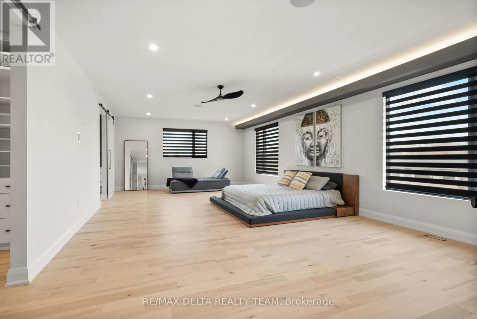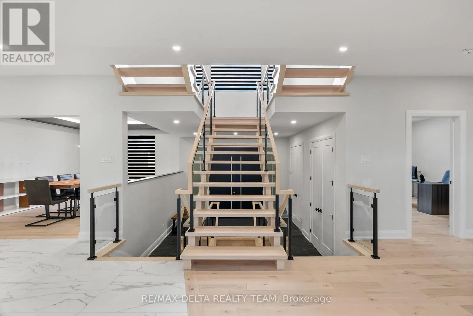 Albion Rd & Mitch Owens Dr. Tailored for the executive lifestyle, perfected for family living. Welcome to 663 Ballycastle Crescent a showstopping modern residence with commanding curb appeal, set on a quiet crescent lined with prestigious homes and backing onto peaceful open space. With over 5,700 sq. ft. of refined living space, this 5-bedroom, 6-bathroom home is a true architectural statement. The exterior offers bold, clean lines and grand scale, while inside, elegance meets innovation. Soaring 20-foot ceilings and a dramatic open-riser staircase set the tone in the main living area anchored by a double-sided porcelain-wrapped fireplace and lighted artwork niches. Maple and leather-finished porcelain floors run throughout the main level. The kitchen is both luxurious and functional, with dual waterfall quartz islands, Thermador appliances, a walk-in pantry, and a striking glass wine feature. A spacious main floor suite with walk-in closet and ensuite offers flexible comfort for guests or extended family. Upstairs, an 830 sq. ft. loft overlooks the great room, connecting two bedrooms each with private ensuites and walk-ins plus a bar area. The 540 sq. ft. primary suite offers a stunning gas fireplace, a dream walk-in closet with quartz island and a spa-inspired ensuite with freestanding tub, porcelain finishes, and custom-lit glass shower with rain heads and jets. The lower level features radiant-heated floors, a fireplace lounge, wet bar, theater, fifth bedroom and full bath, and a 900 sq. ft. commercial-grade gym with mirrors and glass dividers. Built-in media and smart systems run throughout. A 1,200 sq. ft. triple garage offers an oversized bay, loft storage, and backyard access. Two expansive decks add outdoor living space. Minutes from the new Hard Rock Casino and surrounded by luxury. This is a home that makes a statement. (id:27476)