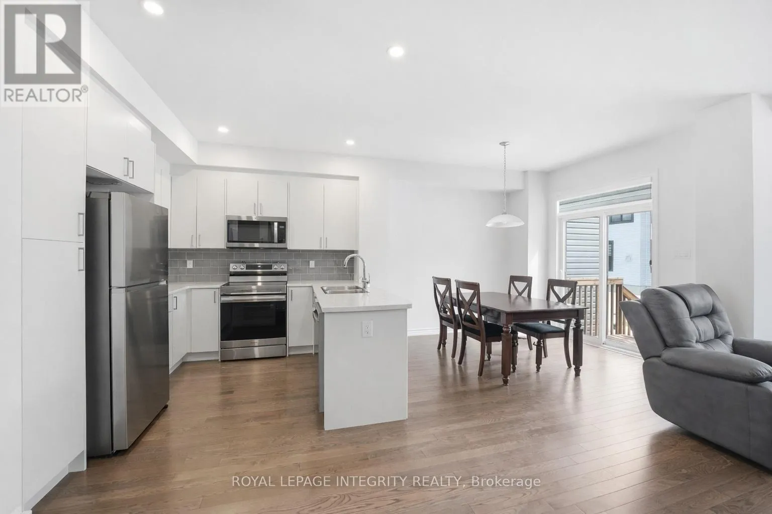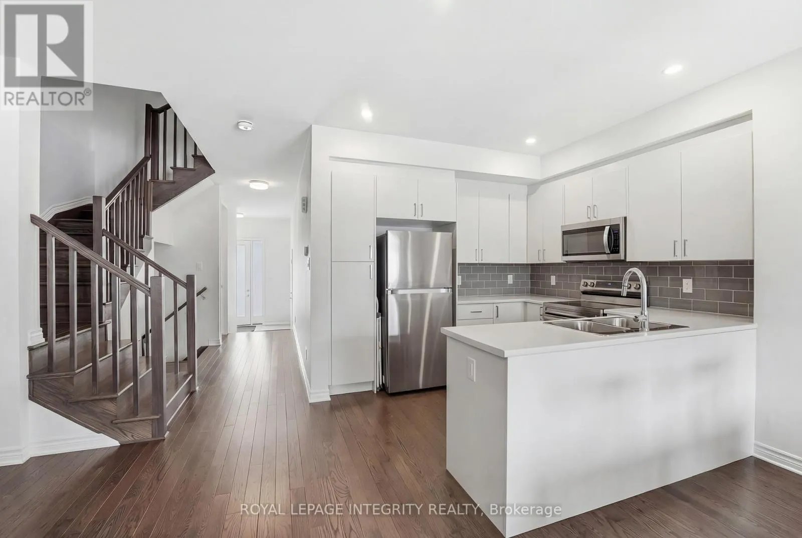 East on Innes, right on Lamarche, left on Jargeau Rd Welcome to this almost-new executive townhome in the highly desirable Orleans Village, offering over 2,000 sq. ft. of beautifully designed living space. This south-facing home is filled with natural light and features impressive arched, high ceilings that create an open and airy feel throughout.The main level boasts oak flooring complemented by 9-foot ceilings. The spacious kitchen features sleek finishes with SS appliances and breakfast nook. Upstairs, you'll find three generously sized bedrooms, with the primary offering two walk-in closets and a full ensuite. Second-level laundry for added convenience. The layout is both functional and family-friendly, offering comfort and privacy for all. The finished basement provides a versatile recreation room-perfect for a home theatre, gym, or additional living space; ample storage. Conveniently located in Ottawa East at the western edge of Orléans, offering easy access to shopping, dining, trails, schools, transit, and downtown Ottawa. Some photos have been virtually altered. (id:27476)