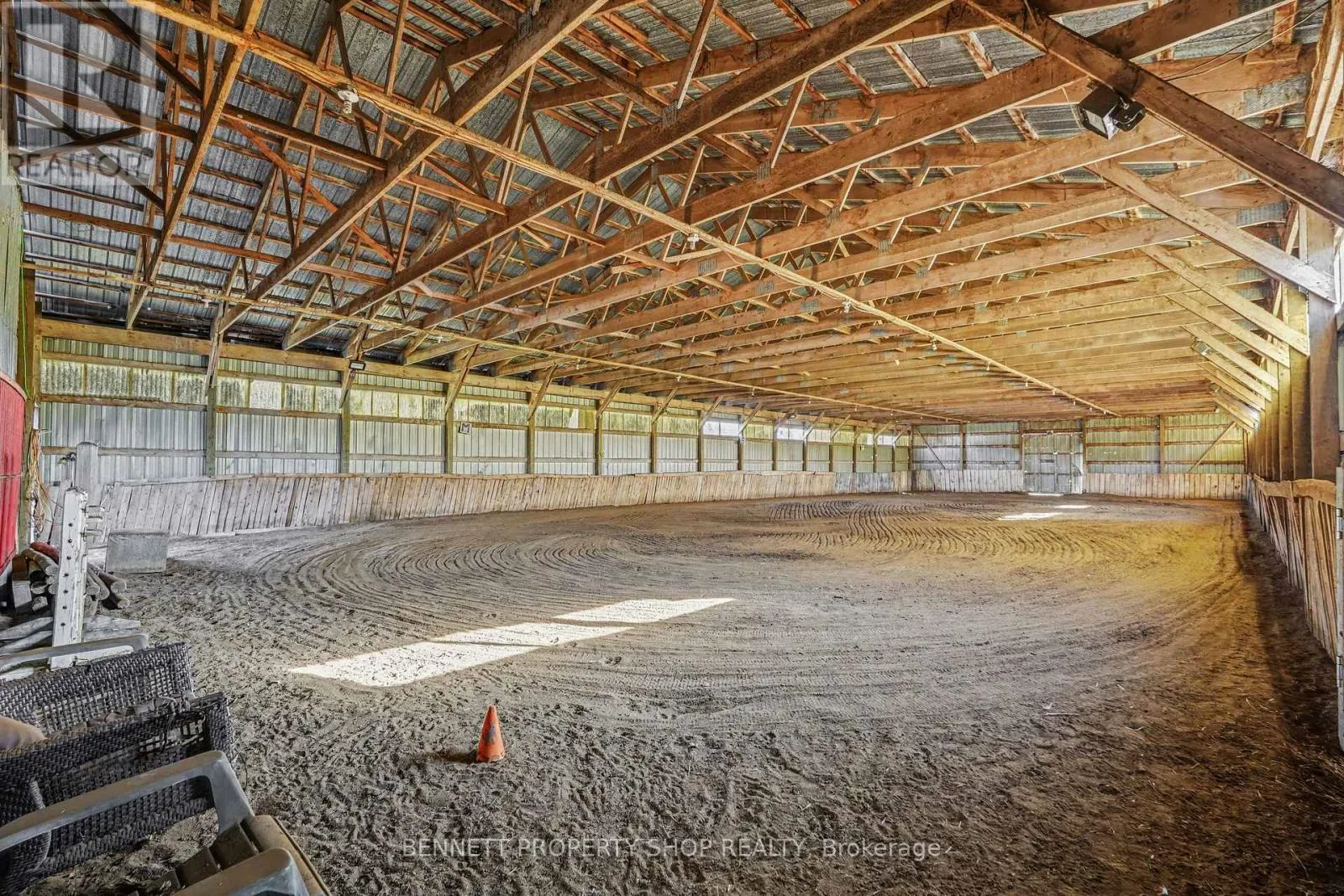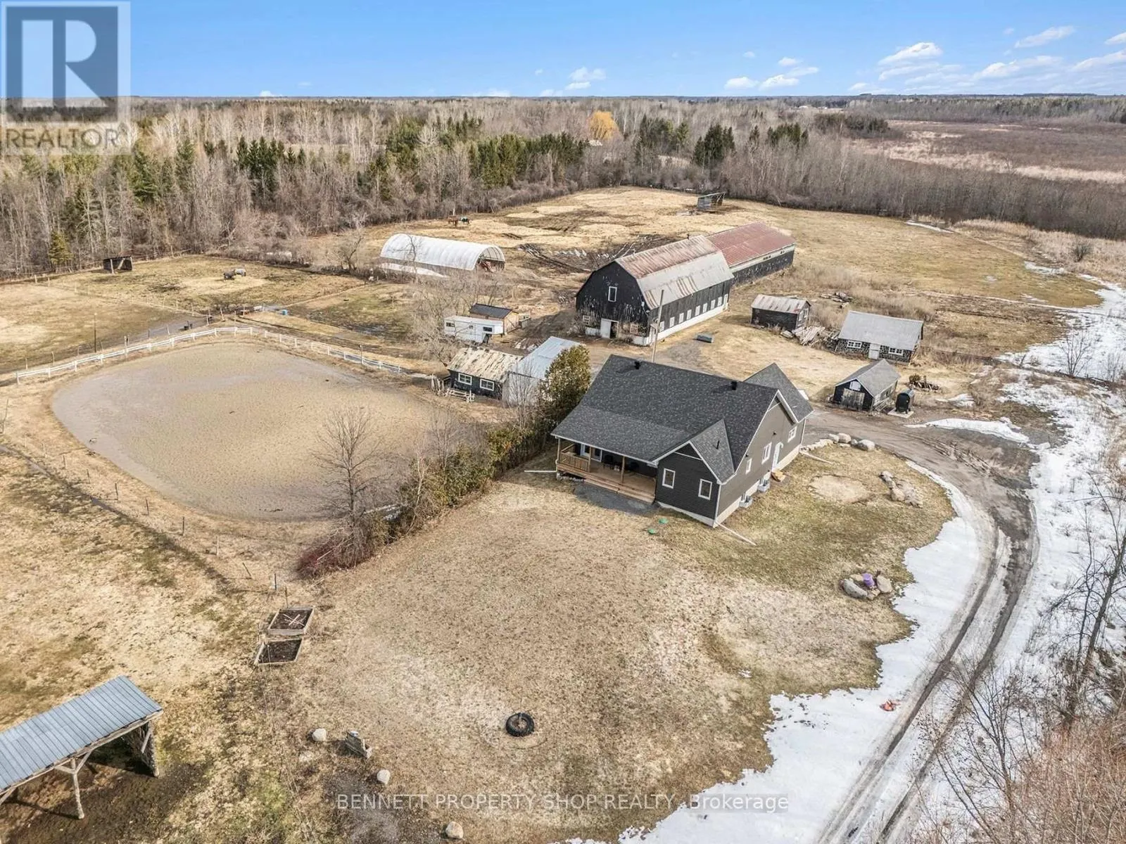Cross Streets: Roger Stevens. ** Directions: Hwy 416 to Dilworth exit to Third Line. Opportunity to own an oasis, minutes to Highway 416 and Roger Stevens Drive, this exceptional 40-acre equestrian property offers a rare opportunity to own a turnkey farm, with the option to purchase the established equestrian business. Built in 2024, the well-designed three-bedroom bungalow features vaulted ceilings, bright open living spaces, front and rear covered decks where you can relax and admire the private surroundings with mature trees and a partially finished lower level with 9-foot ceilings, bathroom rough-in, and excellent development potential-ready for your custom finishing. Equestrian enthusiasts will appreciate the impressive infrastructure, including a 13-stall barn and a 60' x 150' indoor riding arena with sand footing and a completed hydro retrofit. The property is thoughtfully laid out with five fenced pastures with four adjacent water hydrants, equipped with electric fencing, along with numerous outbuildings, outdoor sand ring and shelters to support a variety of agricultural or boarding operations.Versatile, efficient heating with forced air furnace/heat pump and outdoor wood furnace. Modern rural living is enhanced with Starlink internet and a Generlink system for added convenience and reliability. Tractors, chickens, horses, and additional equipment are negotiable, at an additional cost, making this a truly turnkey opportunity. Whether you're looking to operate a business or enjoy country living with top-tier facilities, this versatile property is ready to meet your vision. 24 hours irrevocable on all offers. (id:27476)
