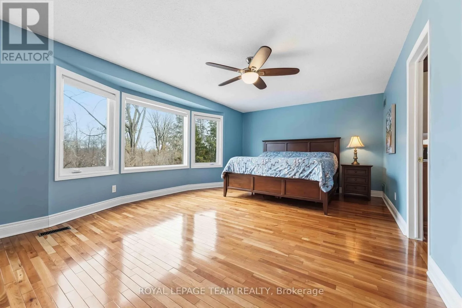 Cross Streets: Riverside Drive. ** Directions: Riverisde Drive turn onto Uplands Drive, left on Gillespie Crescent then left on Hackett Street. Welcome to this charming executive two-storey 4+1 bedroom family home with a double built-in garage, ideally located in the prestigious Hunt Club Woods on a quiet, family-friendly street located just steps from scenic nature trails and a short walk to the renowned Ottawa Hunt and Golf Club, this home offers an exceptional lifestyle. This tastefully updated home features hardwood and ceramic flooring throughout both levels. The main level boasts a spacious dining room that is ideal for entertaining and an adjacent living room with a stunning two-sided gas fireplace, adding warmth and ambiance to both spaces. The sun-filled, south-facing family room impresses with large picture windows, a soaring vaulted ceiling, and a cozy gas fireplace. The spacious gourmet kitchen is designed for both everyday living and entertaining, complete with quartz composite countertops, a large centre island, and a convenient breakfast bar. An elegant hardwood staircase leads to the upper level, where you'll find a gracious primary bedroom with large picture windows that overlook the ravine, with large walk-in closet and a luxurious 5-piece ensuite. Three additional generously sized bedrooms complete this level. The professionally finished basement (2018) offers excellent additional living space, including a recreation room with a gas fireplace, a spacious bedroom, a full 4-piece bathroom, and a versatile laundry/hobby room with abundant storage, plus a utility room and storage area. Step outside to enjoy beautiful sunrises from the newer rear composite deck, along with interlock walkways, a fenced backyard, and stunning perennial gardens. Overlooking a serene ravine - No front neighbours - this home is perfectly situated on an exceptional quiet street. Just move in! (id:27476)