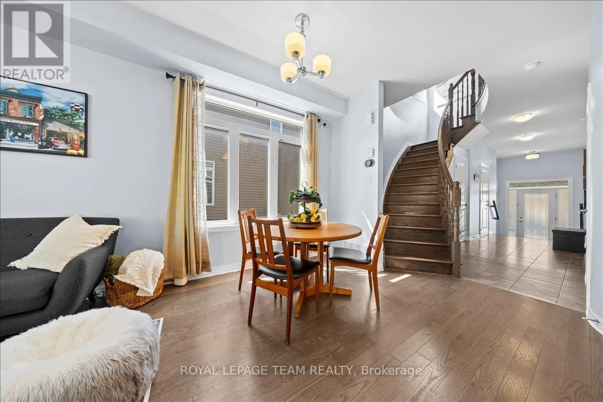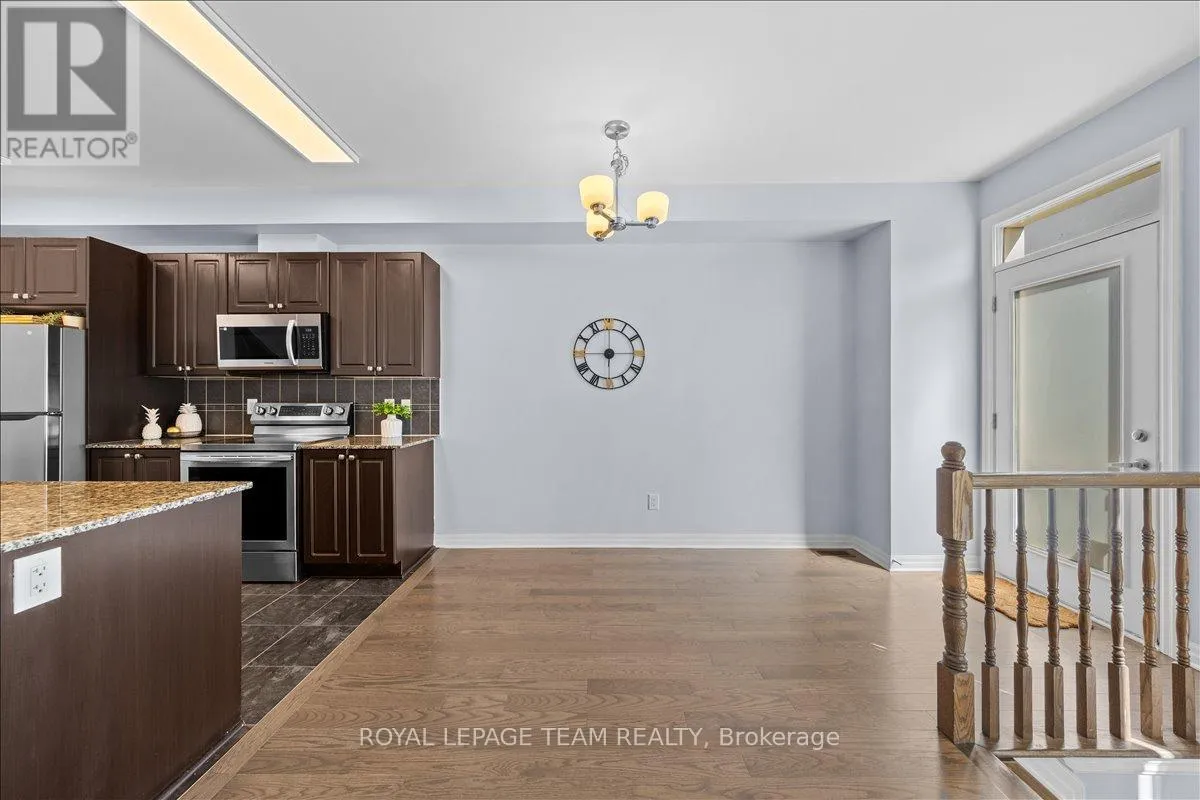 Cross Streets: Overberg Way and Tulum Cres. ** Directions: From Terry Fox Dr. turn onto Overberg Way, then turn left to stay on Overberg Way, then turn left onto Tulum Cres, property will be on the right. Located in the highly desirable Trailwest community of South Kanata, this sun-filled 4 bedroom, 3.5 bathroom end-unit townhouse offers the perfect balance of style, space, and convenience. Set on an extra-wide lot, the home boasts a carpet-free design, soaring 9-ft ceilings, elegant hardwood floors, and oversized windows that fill every level with natural light. The modern kitchen features granite countertops, a center island, stainless steel appliances, and abundant cabinetry, opening seamlessly to bright and spacious living and dining areas perfect for entertaining or everyday family living. A convenient powder room, mudroom with laundry, and a hardwood spiral staircase complete the main level. Upstairs, discover four generous bedrooms, including a primary retreat with a walk-in closet and private ensuite, along with a second full bathroom. The fully finished basement adds even more living space with a large recreation room, full bath, and generous storage, ideal for a home office, gym, or family gatherings. Freshly painted in 2025 and move-in ready, this home is ideally located just steps from schools, parks, shopping, and public transit. (id:27476)