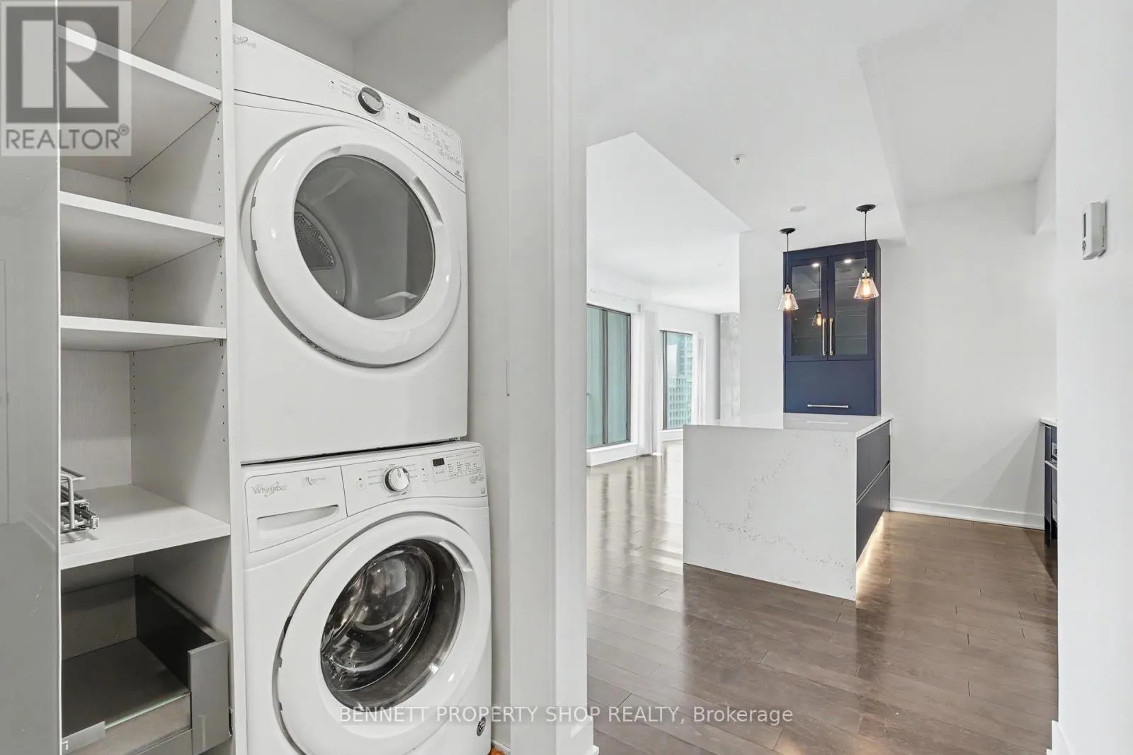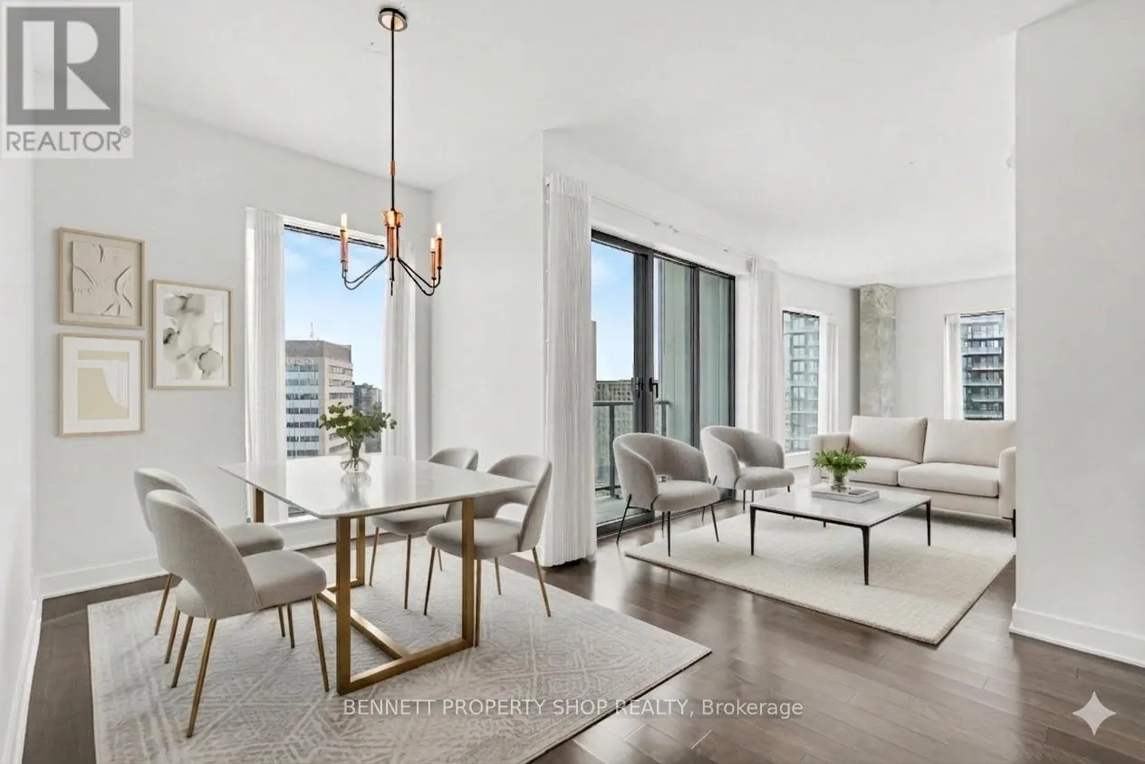 Waller Street & Daly Avenue This beautifully updated 2-bedroom, 2-bathroom residence at ArtHaus, Ottawa's sophisticated downtown condo tower, offers abundant natural light and beautiful south-facing views through floor-to-ceiling windows. The gorgeously updated kitchen is the heart of the home, featuring modern cabinetry, premium stone countertops, high-end stainless-steel appliances, and a sleek island that invites culinary creativity. Whether you're hosting friends or enjoying a quiet morning coffee, this chef-inspired space delivers!! The open-concept living space then flows seamlessly into a generous dining and living area, all with amazing views. Both bedrooms are generously sized, with the primary suite boasting a private ensuite bathroom and ample closet space. The second bathroom is equally well-appointed (murphy bed), offering convenience for family or guests. ArtHaus residents enjoy an elevated lifestyle with outstanding building amenities, including: a well-equipped fitness centre with weights, cardio, and yoga studio, stylish party room and Firestone Lounge for gatherings, expansive rooftop terrace with skyline views, secure underground parking and storage locker, and in-suite laundry. Location is everything, you're steps from the ByWard Market, Rideau Centre, University of Ottawa, Parliament Hill, restaurants, cafes, boutiques, and cultural venues. Public transit, bike paths, and parks are all at your doorstep. This move-in-ready gem combines contemporary finishes, an unbeatable location, and the artistic spirit that defines ArtHaus! 24 hours irrevocable on all offers. Some photos are digitally enhanced. (id:27476)