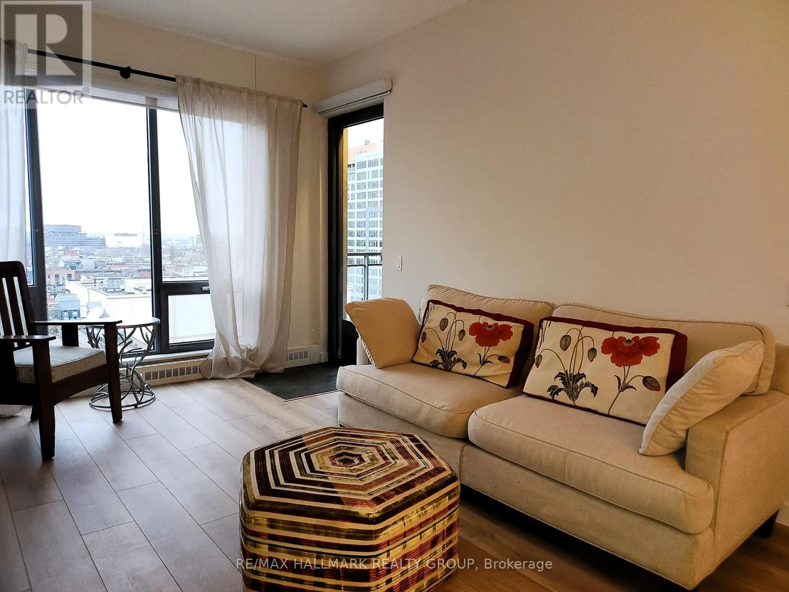 Cross Streets: George St. and Dalhousie St. ** Directions: O-train to Rideau Station, just around the corner from William Street exit. Absolutely Stunning Fully Furnished 1 Bedroom plus Den at the iconic 90 George Street, Ottawa's most prestigious and sought-after luxury condo building in the heart of the vibrant ByWard Market. Including an underground parking space. This bright and spacious fully furnished one bedroom plus den unit features an excellent free-form layout with tall ceilings. The generous primary bedroom offers ample closet space while the separate den provides a perfect flex space for a home office, guest area or additional storage. Floor-to-ceiling windows flood the unit with natural light and showcase beautiful views of the ByWard Market. The gourmet kitchen boasts high-end finishes, stainless steel appliances and a beautiful breakfast bar. Enjoy hardwood flooring throughout, in-suite laundry, a private balcony ideal for morning coffee or evening relaxation and a storage locker. Building amenities include a rooftop terrace with stunning views, an indoor pool, exercise room, concierge and more. Perfectly located in Ottawa's ByWard Market this is the epitome of lively location and chic. You are steps away from the University of Ottawa, Parliament Hill, Rideau Centre, LRT and major transportation as well as world-class restaurants and boutiques. Also available unfurnished with parking for $2450 per month. Schedule B to accompany all offers. Rental application, photo ID, credit check required. Visit today and experience luxury urban living at its finest. (id:27476)
