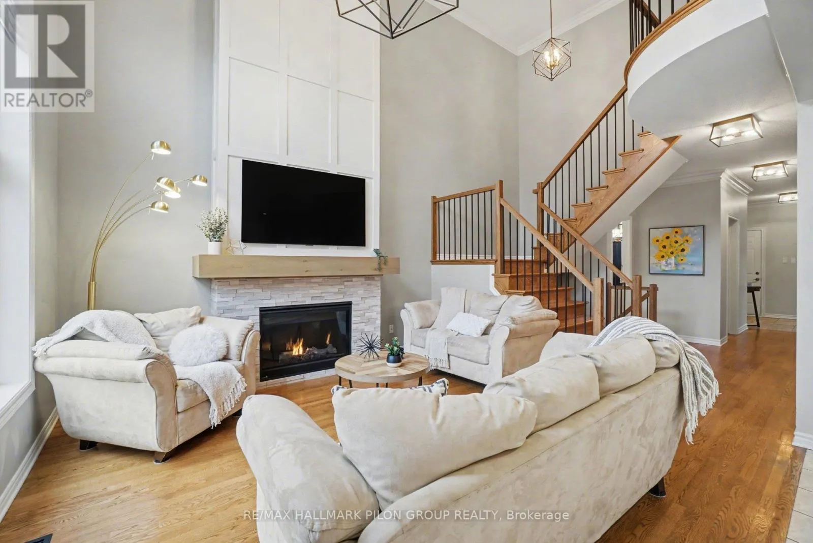 Cross Streets: Den Haag / Borealis. ** Directions: Den Haag Drive to Borealis Crescent. Discover this spectacular home nestled in the highly sought-after community of Carson Grove. The elegant living & dining rooms are beautifully appointed with large windows, arched doorways & elegant crown moulding. The chef-inspired kitchen is sure to impress, featuring rich cabinetry, luxurious granite countertops, gleaming stainless steel appliances, a neutral backsplash, bonus pantry cupboards & an oversized island with seating. The adjacent family room is truly breathtaking, highlighted by a striking two-storey accent wall & a cozy gas fireplace. A spacious main floor den provides an ideal work-from-home setup, while a stylish, Pinterest-worthy powder room adds a touch of personality. A large walk-in closet at the front entrance & direct access to the double car garage complete this level. Upstairs, a stunning hardwood staircase with modern railing leads to the second floor. The expansive primary retreat can easily accommodate any size bedroom set. It offers a vaulted ceiling, rich hardwood flooring, a generous walk-in closet & a luxurious 5 piece ensuite. Three additional bedrooms are all generously sized with ample closet space, while a neutral full bathroom & convenient second-floor laundry add to the home's functionality. The fully finished lower level extends living space with a versatile rec room that easily accommodates a media area, play space, or home gym. A generously sized 5th bedroom makes for the perfect guest suite or private retreat for teens, with plenty of additional storage available in the utility room. Step outside to your private backyard oasis-an ideal extension of your living space during the warmer months. Enjoy a large deck perfect for outdoor dining, an above-ground pool that is partially in-ground surrounded by fencing for added safety & a secondary deck platform. Perfectly located close to excellent schools, parks, shopping & amenities, as well as the Montfort Hospital, CMHC, and La Cité Collégiale. Some photos virtually staged. (id:27476)