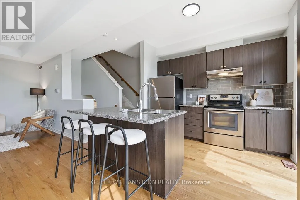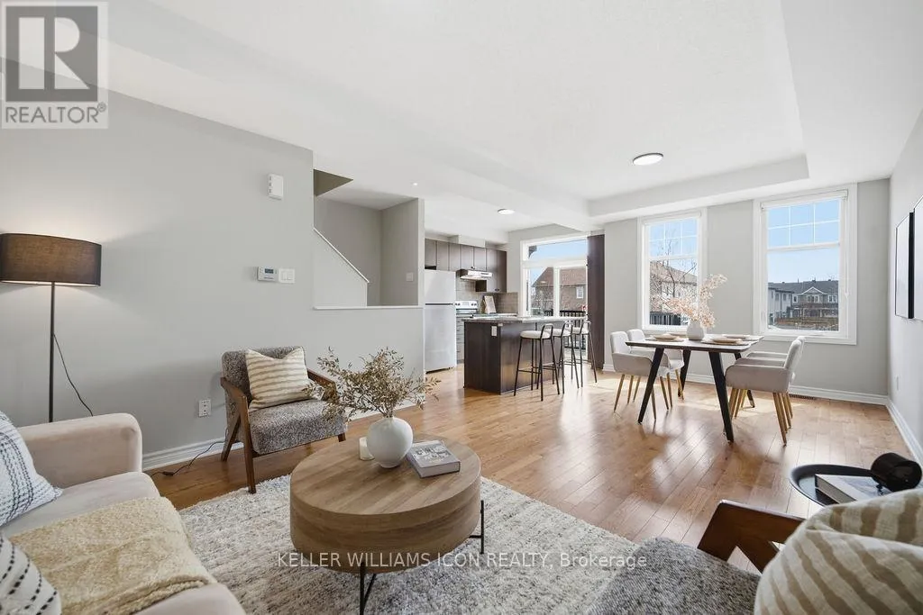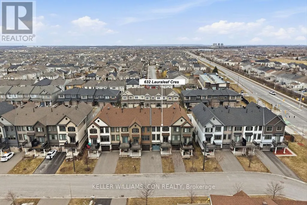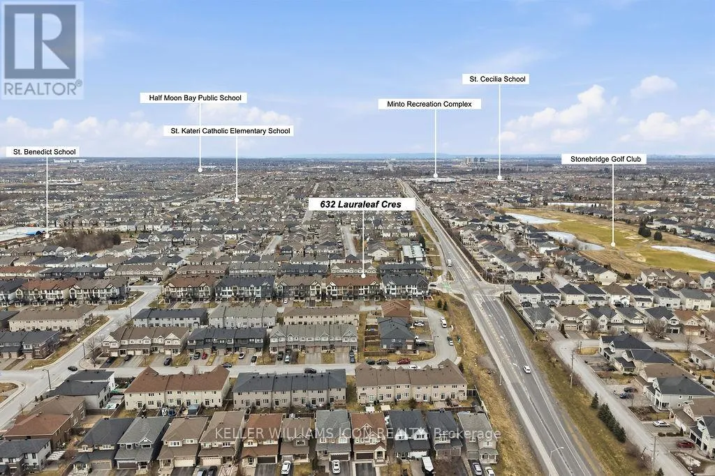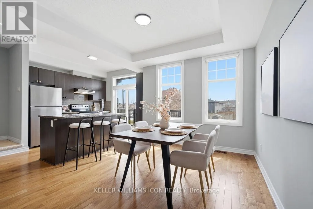 Cross Streets: Greenbank. ** Directions: Greenbank to Kilbirnie to Breakstone to Lauraleaf. Bright and beautifully maintained SOUTH-FACING 3-STOREY TOWNHOUSE WITH PRIVATE BALCONY in the popular HALF MOON BAY community, offering a low-maintenance lifestyle close to PARKS, TRANSIT, SHOPPING, SCHOOLS, AND EVERYDAY AMENITIES.The MAIN LEVEL features tile flooring, a large LAUNDRY ROOM, additional STORAGE, and DIRECT GARAGE ACCESS.The SECOND LEVEL showcases impeccably maintained HARDWOOD FLOORING, dark cabinetry, STAINLESS STEEL APPLIANCES, and a functional KITCHEN ISLAND WITH BREAKFAST BAR. The layout also includes a SEPARATE DINING ROOM and spacious LIVING ROOM WITH LARGE WINDOWS & PATIO ACCESS TO THE PRIVATE BALCONY, perfect for relaxing or entertaining. A convenient POWDER ROOM is also located on this level.The THIRD LEVEL offers a spacious PRIMARY BEDROOM WITH A LARGE WALK-IN CLOSET AND ACCESS TO A 4-PIECE CHEATER ENSUITE, along with a GENEROUS SECOND BEDROOM. The property also offers a DRIVEWAY THAT CAN ACCOMMODATE TWO VEHICLES, providing additional convenience.Recent updates include FRESHLY PAINTED (2026) and LED LIGHTING (2026). PERFECT FOR YOUNG PROFESSIONALS, COUPLES, OR SMALL FAMILIES SEEKING COMFORT, STYLE, AND CONVENIENCE IN A VIBRANT COMMUNITY. (id:27476)