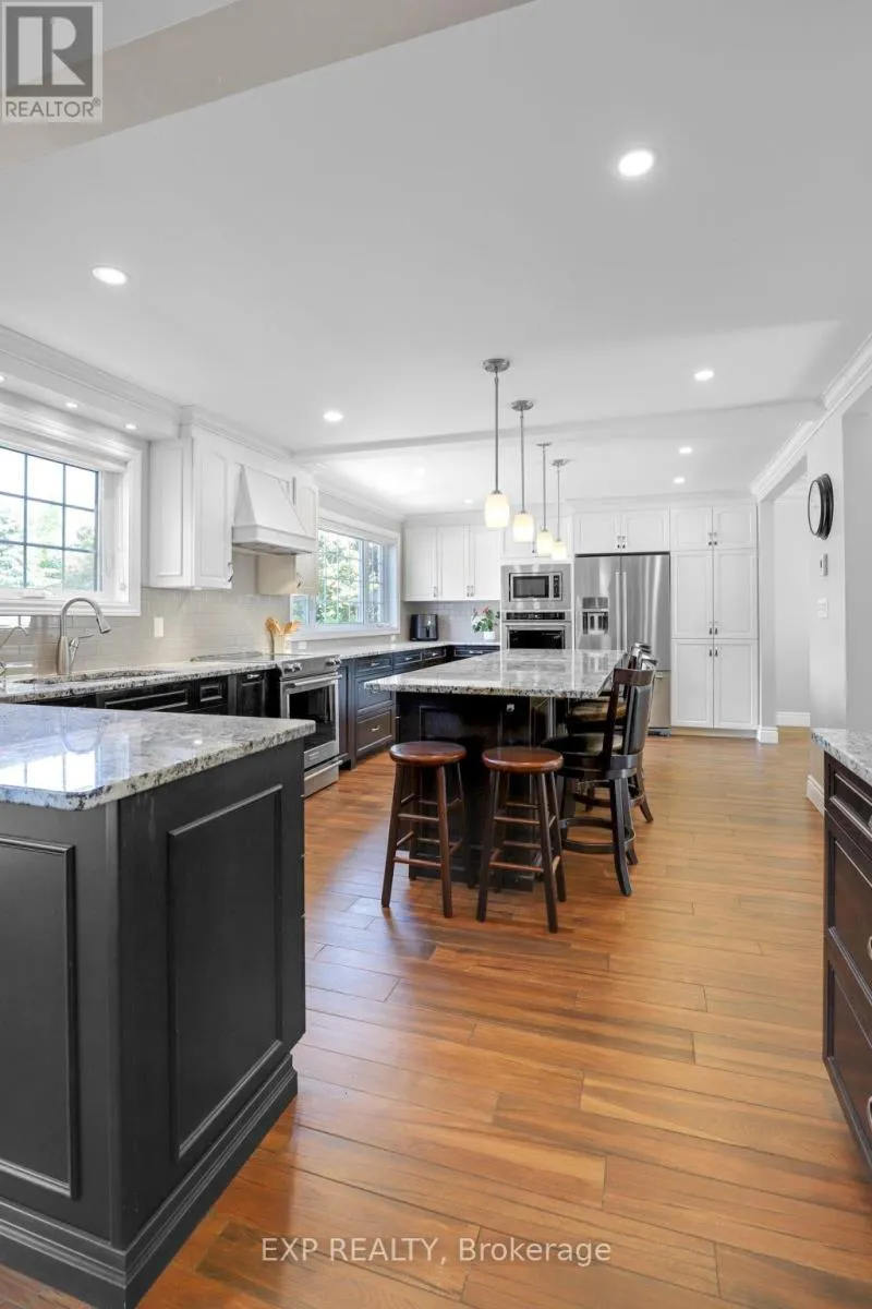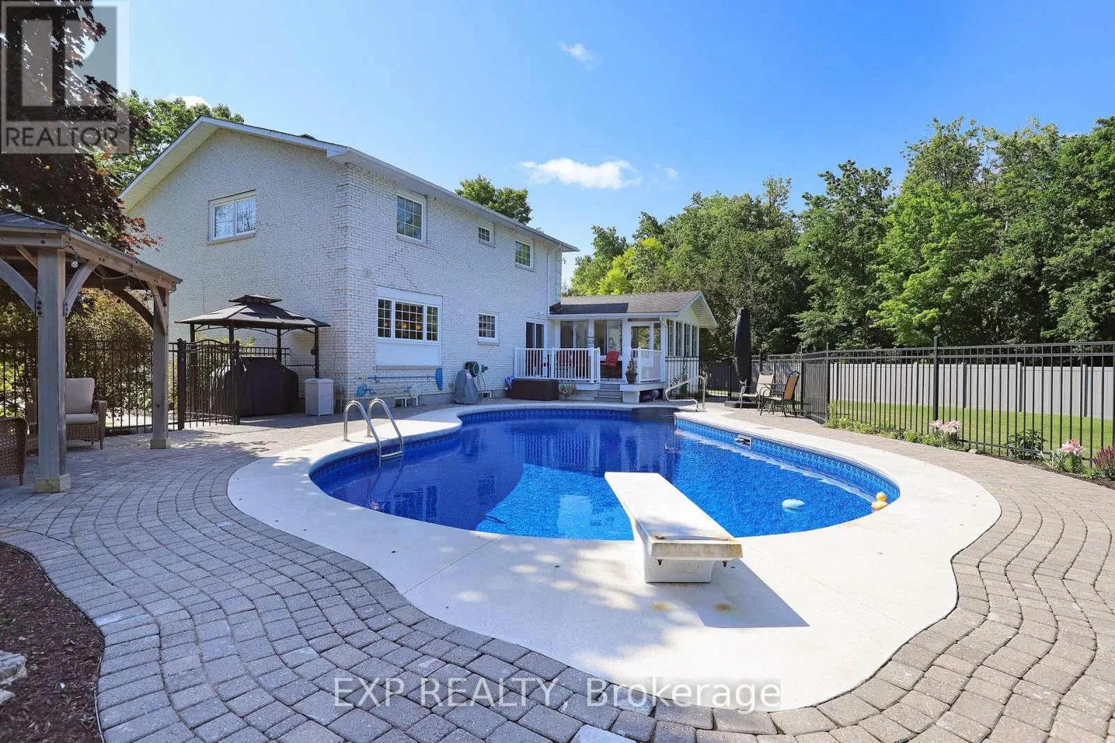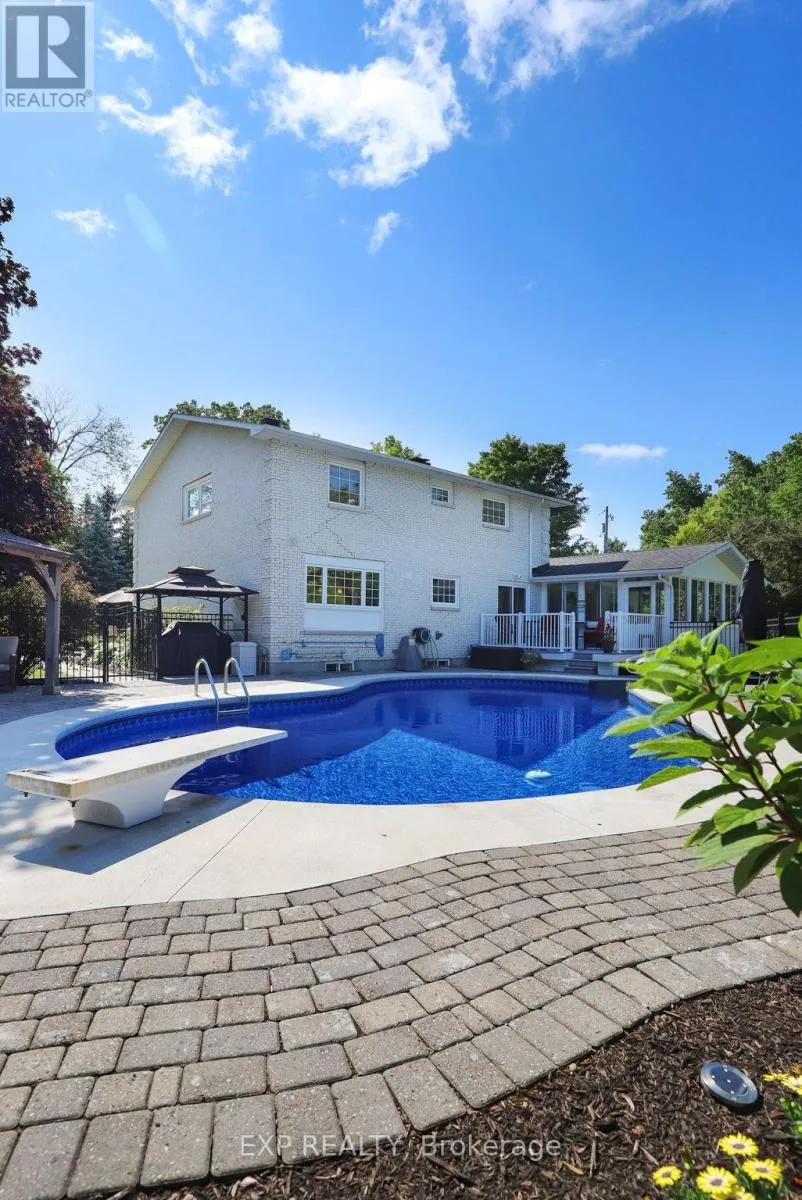 Cross Streets: Prince of Wales and Third Line. ** Directions: Prince of Wales to Third Line. Tucked away on an expansive 3.74-acre lot surrounded by Prince of Wales Dr., Phelan Rd., and with private access off Third Line Rd South, this custom all-brick estate is a rare opportunity to own a versatile, move-in ready compound just minutes from city conveniences.Whether you're a multigenerational family, business owner, or hobbyist, this home offers space, privacy, and serious potential. Main Residence Features: 4 spacious bedrooms. 2.5 bathrooms, including 4-piece ensuite + walk-in closet in the primary suite. Spacious formal dining room, perfect for entertaining. Converted attached garage now serves as a large media-room ideal for a home theatre, in-law suite, or flexible living space. Beautiful 3-season sunroom overlooking the pool and gardens. Finished basement with rec-room, storage, and workshop area. Hydronic heating system (hot water via propane) provides efficient, comfortable warmth throughout. In-floor heating in the kitchen, laundry area, and powder room. 2 split-system A/C units, one for the main floor, and a new heat pump + AC unit (2025) in the primary bedroom.Additional Highlights: Heated workshop with separate road access, ideal for home-based businesses or tradespeople. Oversized 3-car detached garage (roof 2020, 50year shingles, 10-year labour warranty). In-ground pool with recent upgrades (2023), fully fenced for safety and privacy. Roof replaced in 2012 (50-year warranty on shingles). Propane heating upgrade 2018. New fencing installed in 2021. Massive 24 kW standby generator provides wholehome backup power for uninterrupted comfort and security.Outbuildings & Extras: Garden cottage. Equipment shed (includes pool heater and filter area). 1,200 sq. ft. workshop/storage area. (id:27476)