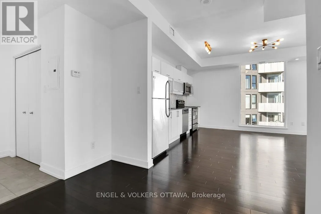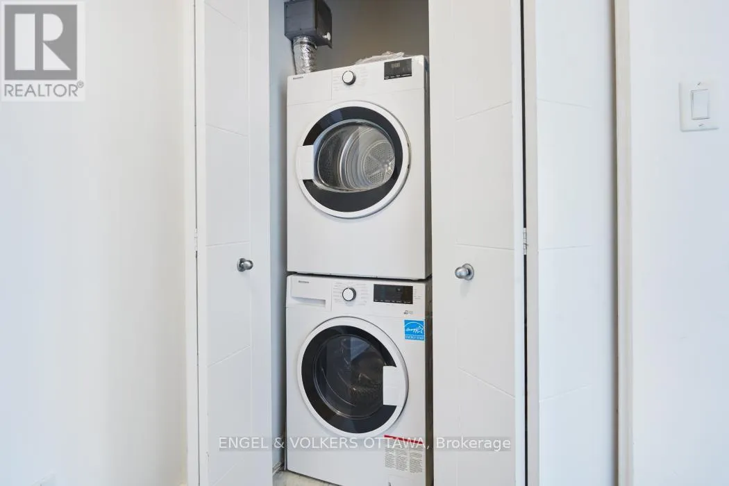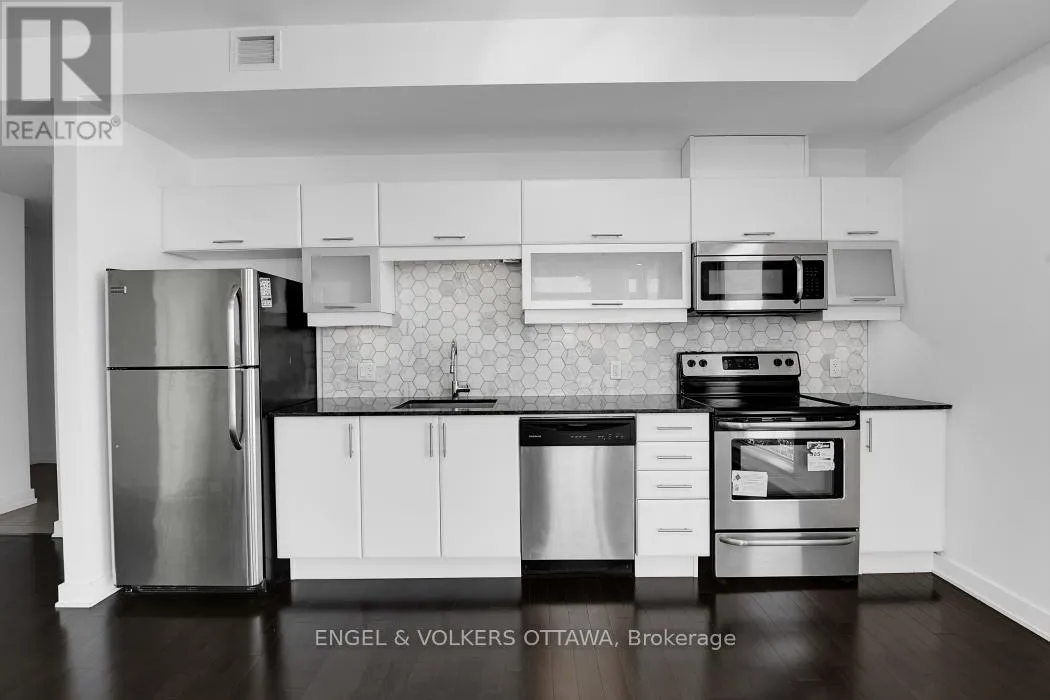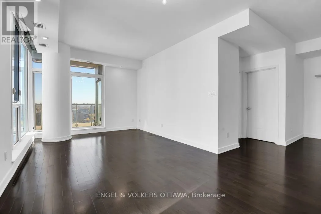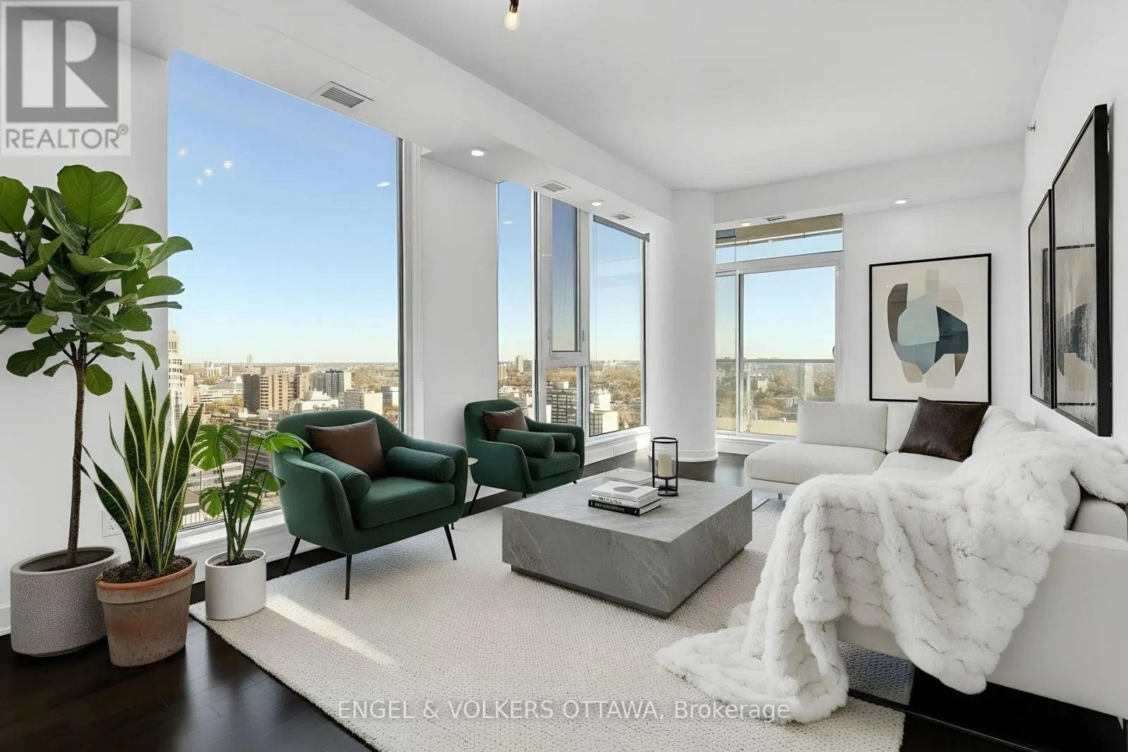 Cross Streets: Metcalfe St & Nepean St. ** Directions: From Elgin St toward Nepean St, turn right onto Lisgar St. Luxurious 1-bedroom + den CORNER unit, spanning 805 sq. ft.-one of the largest 1 bed. floor plans in its collection. This sophisticated residenceoffers an open-concept layout with floor-to-ceiling windows that provide million-dollar, unobstructed downtown views from the 20th floor. Thecustom kitchen is equipped with granite countertops, a beautiful new backsplash, and elegant white cabinetry. Sliding doors open to a privatebalcony, perfect for enjoying the city scape. The versatile office/den area is conveniently located to the right of the kitchen. The large primarybedroom boasts a corner window and a dedicated study area. Additional features include in-suite laundry (2024), custom roller blinds (2025),hardwood floors, and updated light fixtures throughout the unit. A parking space and storage locker are also included. Residents will enjoy anarray of amenities, including a 24-hour concierge/security service, a guest suite, a terrace, an outdoor patio with BBQs, an indoor pool, a gym,and a conference room. For ultimate convenience, Farm Boy is located on the ground level, with amazing restaurants and an LCBO just stepsaway. The building offers quick access to Parliament Hill, Rideau Centre, the University of Ottawa, and the Financial District. (id:27476)