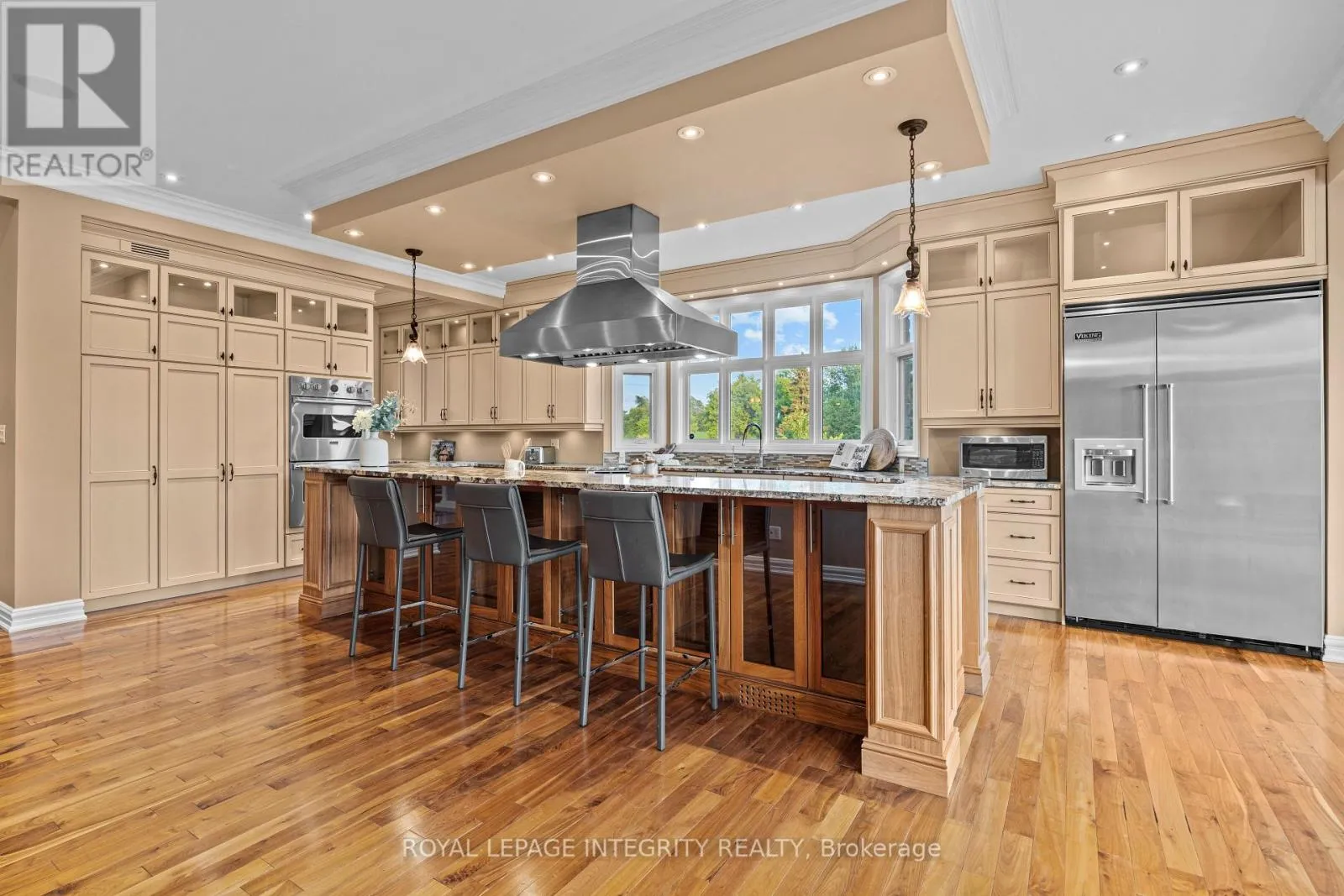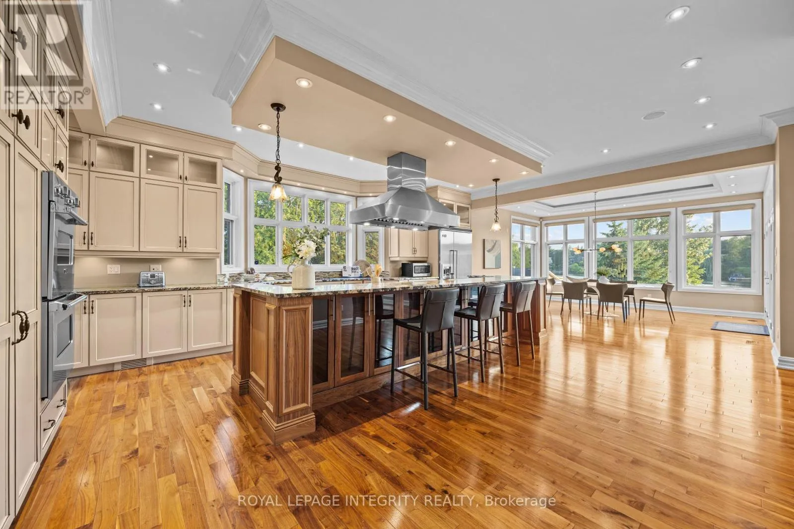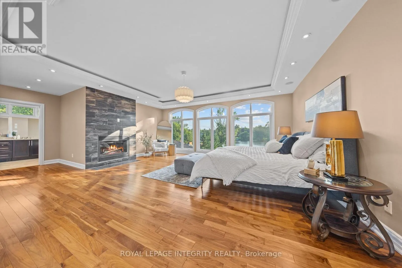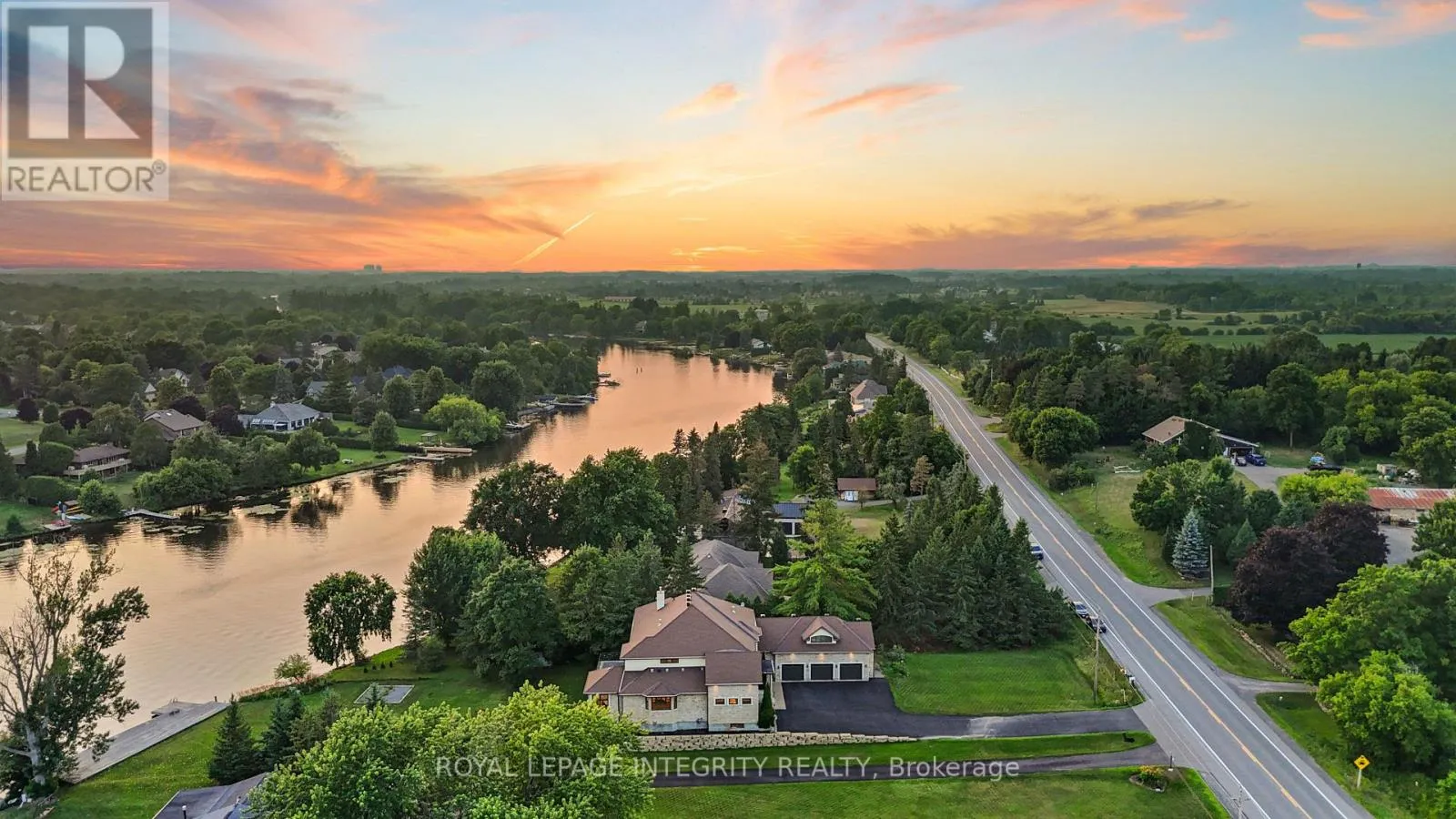 Cross Streets: River Rd & Mitch Owens Rd. ** Directions: River Road past Mitch Owens. Property is on the right side of the road. Perched along the serene Rideau River, this magnificent Italian-style villa seamlessly blends timeless elegance with modern luxury. Spanning over 7,400 sq. ft. of meticulously crafted living space, the residence delights at every turn with breathtaking river views, exquisite craftsmanship, and luxurious amenities. Beyond the dramatic 20-foot marble foyer that makes an unforgettable first impression, the home unfolds with graceful elegance. Soaring 10-foot ceilings and rich hardwood flooring flow throughout the main level, while multiple rooms showcase exquisite tray ceilings with recessed lighting, creating an ambiance of refined warmth. The formal dining room impresses with its 14-foot arched ceiling and stunning arched window that fills the space with natural light while framing picturesque outdoor views. The gourmet kitchen features a 13-foot granite island, top-tier Viking appliances, and custom walnut and Pashmina White cabinetry, complemented by a walk-in pantry for effortless entertaining. The adjoining breakfast area and family room bathe in natural light and offer panoramic water views, enhanced by a convenient wet bar and rough-in elevator. The main floor also includes a spacious executive office with private balcony access, along with a full bathroom that doubles as a guest suite. Upstairs, four bedroom suites each boast generous walk-in closets and spa-like Ensuite offers a massage shower & granite counter tops. The walkout basement serves as a versatile retreat, featuring high ceilings, oversized windows, a fifth bedroom, and a full bath. Enjoy whole-home indoor & outdoor audio system. Outside, the home's full stone façade exudes sophistication, while the expansive 650 sq. ft. balcony and private dock invite you to enjoy the breathtaking riverfront setting. Every detail of this exceptional residence has been thoughtfully designed to deliver an extraordinary living experience. (id:27476)
