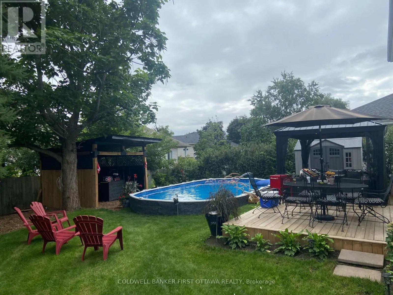 Cross Streets: Stittsville Main St and Fernbank, Fernbank and Arrowwood. ** Directions: Stittsville Main Street South to Fernbank, turn left to Arrowood turn right, left on James Lewis. Welcome to this bright and spacious 3-bedroom, 2.5-bathroom single-family home, thoughtfully designed for comfortable living and modern versatility. Flooded with natural light, the interior showcases beautiful hardwood floors throughout, creating a warm and inviting atmosphere in every room. The main level features a well-designed layout with generous living and dining spaces, perfect for both everyday living and entertaining. A dedicated home office or den provides the ideal spot for remote work, studying, or a quiet retreat. Upstairs, you'll find three well-proportioned bedrooms, including a relaxing primary suite complete with its own private ensuite bathroom and walk in closet. The additional bathrooms are thoughtfully designed to accommodate family and guests with ease. Step outside to a beautifully maintained backyard oasis, complete with an above-ground pool-perfect for summer enjoyment, weekend gatherings, or simply unwinding in your own private space. Additional highlights include a two-car garage and a large unfinished basement with roughed in plumbing for an additional bathroom, offering endless potential to customize to your needs-whether you envision a home gym, media room, or additional living area. Combining comfort, functionality, and room to grow, this home is a fantastic opportunity you won't want to miss. Bright, spacious, and move-in ready-this is the perfect place to call home! (id:27476)