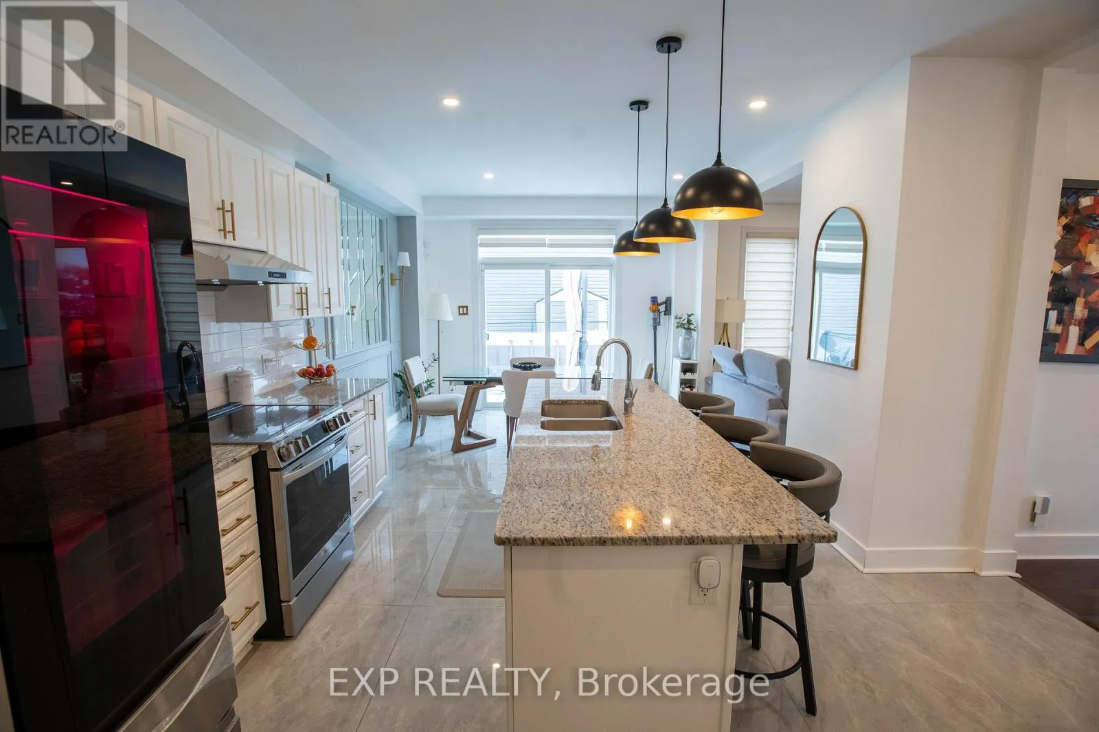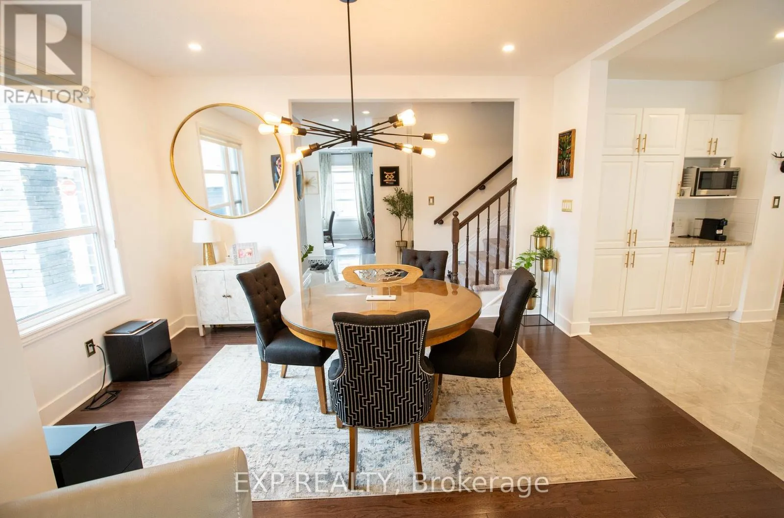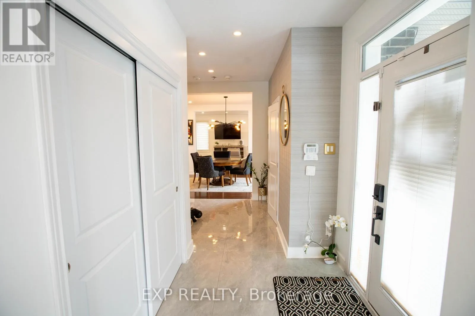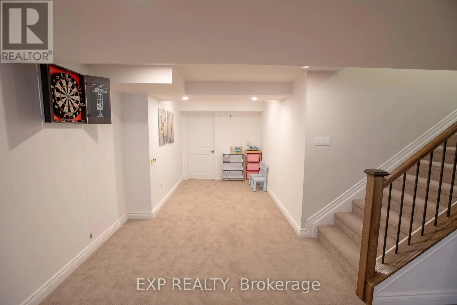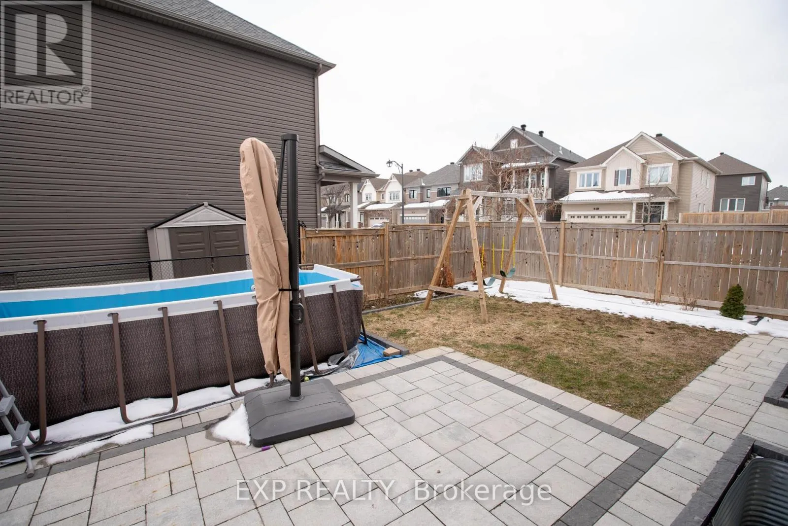 Cross Streets: Alex Polowin Ave & Clonfadda Terrace. ** Directions: South of Greenbank Rd to Right onKilbirnie Dr, then left on AlexPolowin Ave. Ideally situated on a 40-foot premium corner lot in the heart of Barrhaven's Half Moon Bay, this Minto-built "Jasper" model offers a refined blend of modern design and practical family living. With approximately 2,970 sq. ft. of finished living space, the home provides notable curb appeal with a facade of dark brick and stone veneer accents. The spacious foyer leads to an open layout featuring hardwood floors that extend throughout both the main and second levels, providing a consistent, carpet-free environment.The kitchen serves as a central hub, equipped with granite countertops, a custom backsplash, and a suite of stainless steel appliances-all less than a year old-including a gas stove. A built-in desk provides a versatile workspace for daily organization. This area transitions naturally into the living and dining spaces, which look out upon a professionally landscaped, fully fenced backyard. This outdoor retreat features an above-ground pool, perfect for summer entertaining.The upper level is designed for privacy, centered around a generous primary suite with a walk-in closet and an updated 4-piece ensuite. Three additional bedrooms provide ample space, two of which include their own walk-in closets. All bathrooms have been updated with modern finishes for a clean, consistent aesthetic. A second-floor laundry room adds to the home's functional flow. The finished lower level offers a large recreation room with insulated flooring and high ceilings, suitable for a home gym or guest area, supported by a full fourth bathroom.The location is a significant advantage: a 5-10 minute walk to Wazoson Public School and a 20-minute walk to the Minto Recreation Complex. Nearby amenities include the new Food Basics and pharmacy on Cambrian Road, plus easy access to River Mist, Guinness, Black Raven, and Lamprey Parks. This home offers a balanced lifestyle in a premier family community. (id:27476)