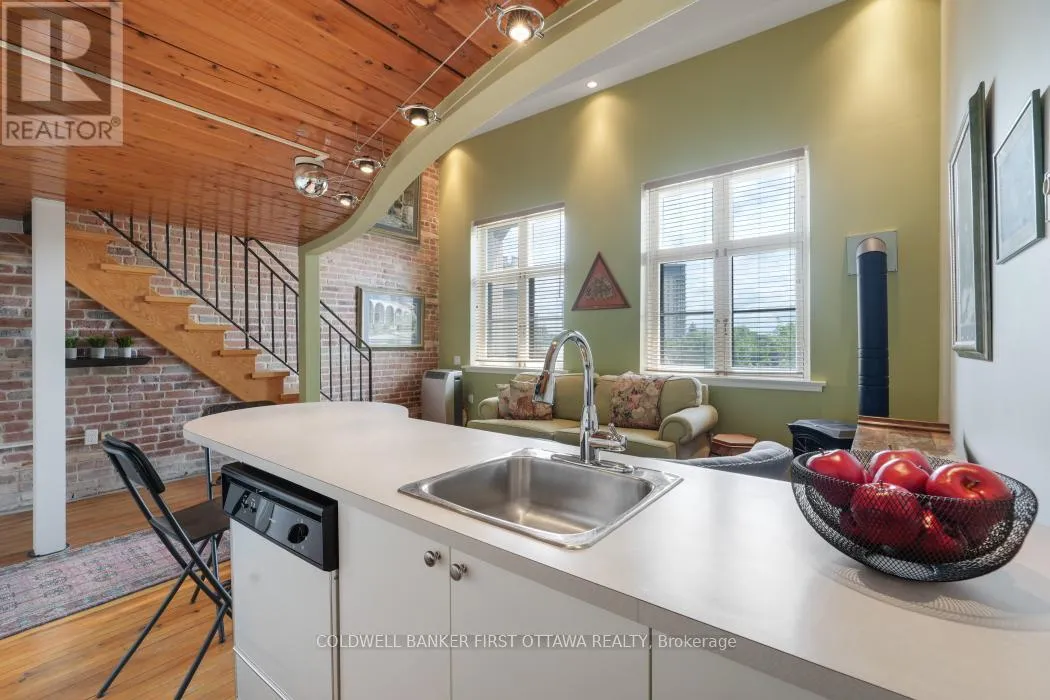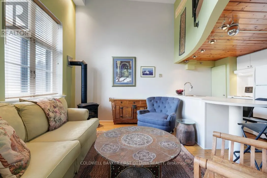 Cross Streets: Charlotte St. and Rideau St. ** Directions: Rideau St. between Charlotte St. and Wurtemburg St. Step into this stunning one bedroom loft in Ottawa's iconic Wallis House, where heritage charm meets modern urban living. Soaring 14-foot ceilings and massive south facing windows flood the space with natural light, highlighting the dramatic exposed brick wall and open-concept layout. The kitchen flows seamlessly into the living space, perfect for entertaining or enjoying cozy evenings by the gas fireplace. Enjoy the convenience of in-suite laundry and the character of a space that blends warmth, history and functionality. Located in a prime downtown location close to the Byward Market, Parliament Hill, the Rideau Canal, the National Art Centre and many of Ottawa's best restaurants and cafes. This is more than a home...it's an opportunity to own a piece of Ottawa's history while enjoying a vibrant urban lifestyle. (id:27476)