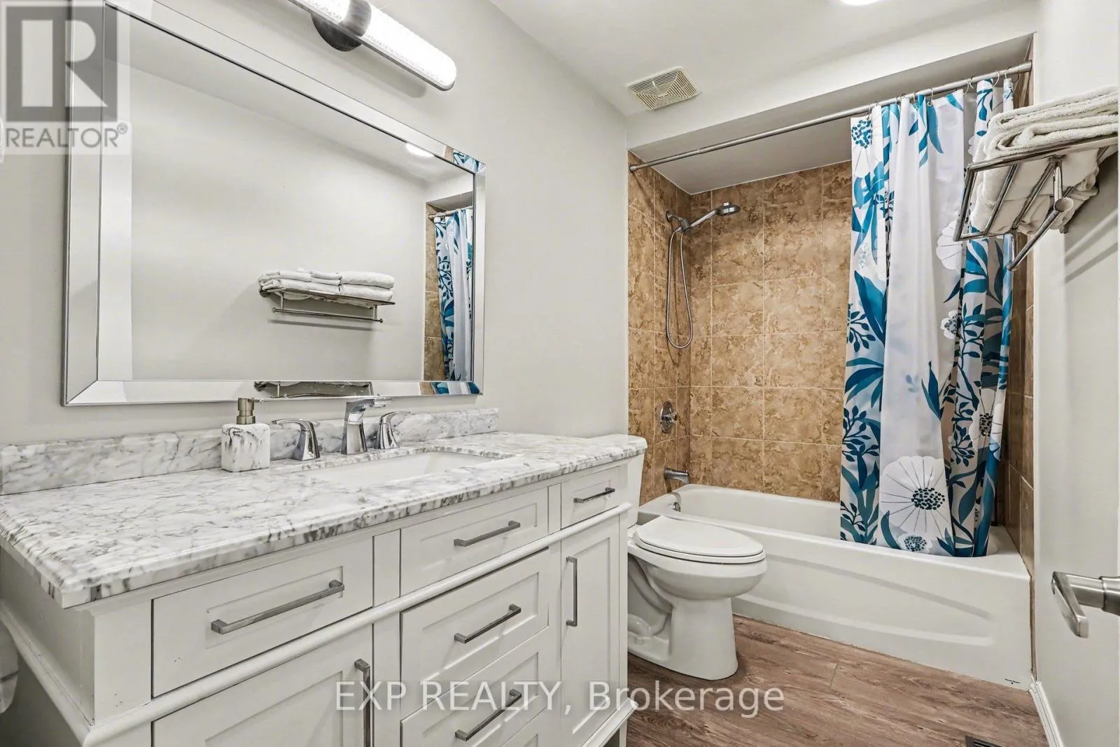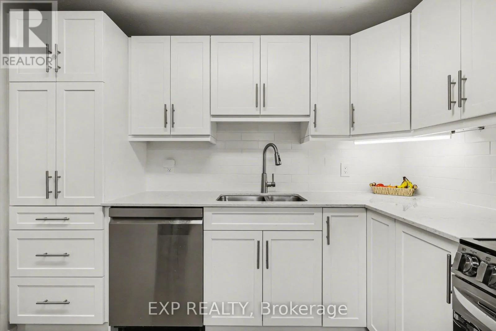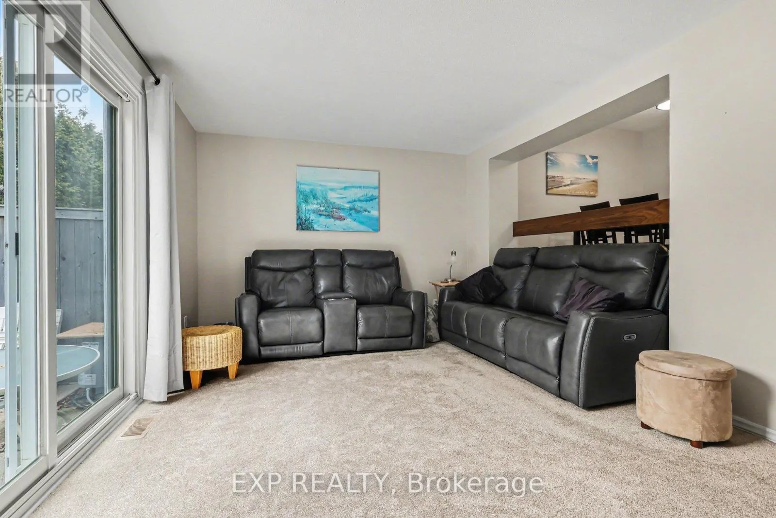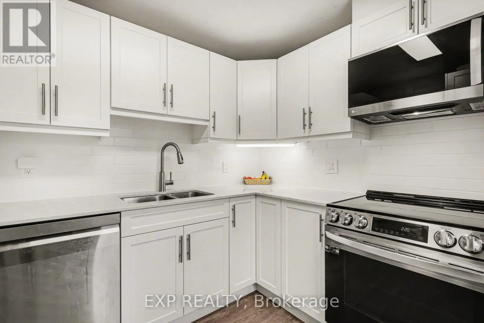 Cross Streets: Des Epinettes & Prestwick. ** Directions: Tenth Line to Des Epinettes to Lamoureux. Some units arrive with a list of things to fix. This one arrives with the work already done.Located in Queenswood Heights, one of Orleans' most established neighbourhoods, this move-in ready end-unit townhouse has been thoughtfully updated throughout. The kitchen is the standout: white shaker cabinets to the ceiling, quartz countertops, subway tile backsplash, and a complete LG stainless appliance suite including French door refrigerator, slide-in electric range, built-in dishwasher, and over-the-range microwave.The main floor flows from the dining area with dark hardwood flooring into a sunken living room with sliding glass doors to the private fenced patio, backed by mature cedars. An updated powder room with dark wood vanity and quartz top completes the main level.Upstairs: three bedrooms including a primary with mirrored sliding closet doors and custom blinds, plus an updated four-piece bath with marble-topped vanity and tiled tub surround. The finished basement offers two carpeted rooms and a separate laundry room with LG front-load washer and dryer.Smart thermostat included. One parking spot. Playground on site. Tenth Line Road is steps away: GoodLife, groceries, and daily services right across the street. Place d'Orléans and Hwy 174 are minutes away. LRT East Extension (Place d'Orléans and Trim stations) opening 2026. Our Lady of Wisdom, Dunning-Foubert, and Sir Wilfrid Laurier Secondary all within walking distance. (id:27476)
