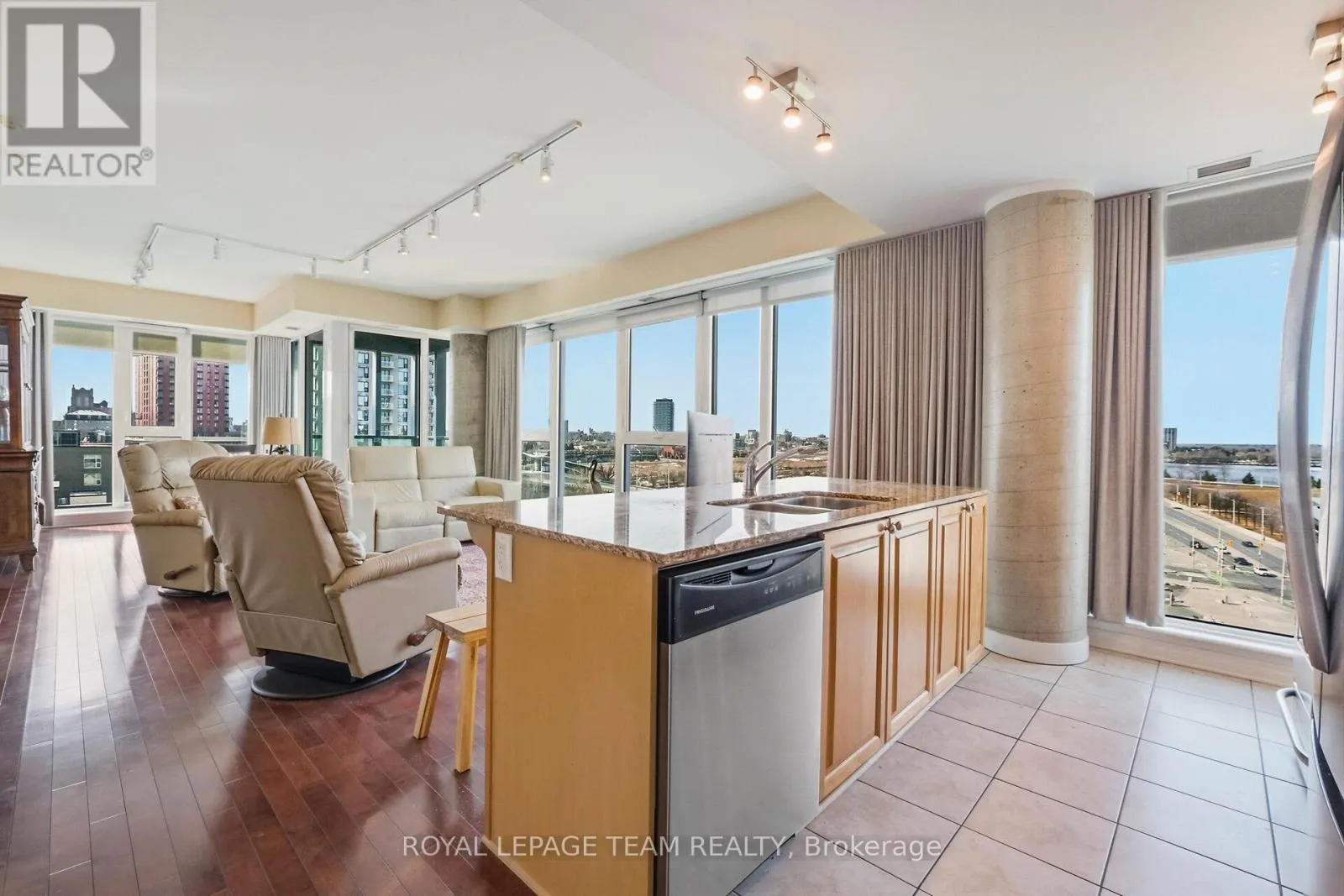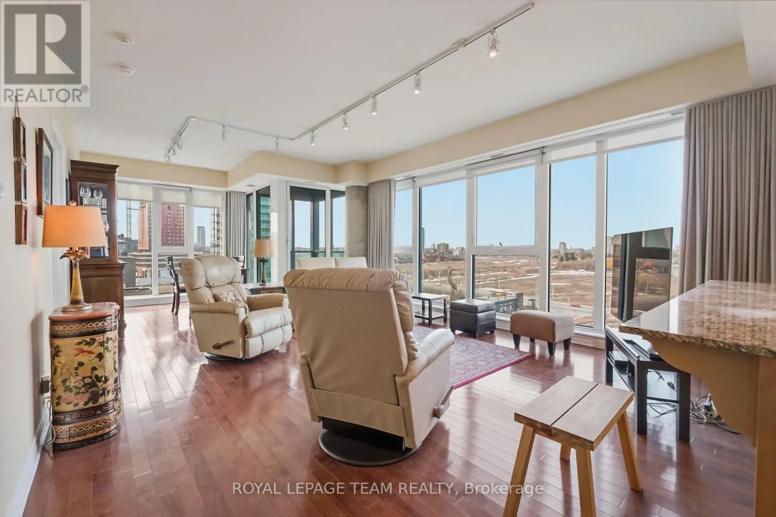 Cross Streets: Wellington Street / Booth Street. ** Directions: East on Wellington Street, right onto Lett Street. A RARE OPPORTUNITY WITH THIS BEAUTY. This corner apartment must be seen to be experienced and enjoy the unobstructed and awesome views before you. Imagine living with the backdrop of panoramic views of south and west Ottawa, the Ottawa River, the Gatineau Hills, the Museum, the parks and the SUNSETS! This is a stunning, oasis in the sky. The apartment living space is bathed with plenty of natural light, elegant hardwood floors, designer lighting and high-end finishes. Top quality window finishings are included. (Linen Chest 2023). Enjoy a gorgeous well-appointed Kitchen, truly a chef's delight, with high quality cabinetry, granite counters, plenty of space, and complete with an ample island. An attractively designed and inspiring layout, with open concept Dining & Living rooms. Entertaining is fun again! Primary bedroom, with a full roomy ensuite. Additional 3-piece bathroom. This unit is a spacious at 1138 sq ft. (according to builder's plans). Enjoy a secure, underground, well-located parking spot. The infrastructure exists for Buyers to install an EV Charger if they choose. There are TWO storage rooms. Great value! Eco-friendly, LEED building. Desirable common areas, Gym, Patio/BBQ, Party/Meeting Rooms. Well run building. Parkland at your doorstep in almost every direction. Bike paths galore. And, a quick jaunt to some of Ottawa's most destination neighbourhoods - sought after for their shopping, dining and nightlife. Little Italy, Chinatown, Hintonburg all within minutes. Ottawa Bluesfest and the future Senators arena. Steps to many National Museums, a short walk to Parliament. Enjoy easy downtown and Tunney's Pasture access. The LRT is nearby. BEST LOCATION IN THE CITY. SPECTACULAR VIEWS. THIS WILL NOT LAST. 48 hours irrevocable. (id:27476)
