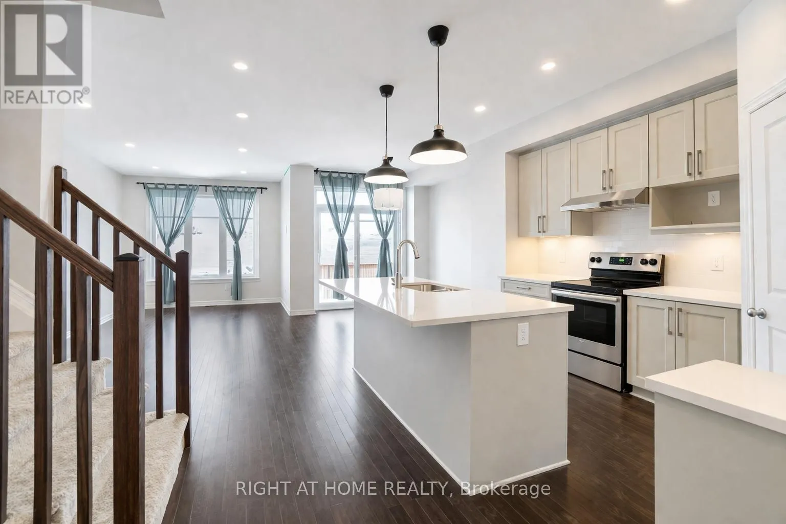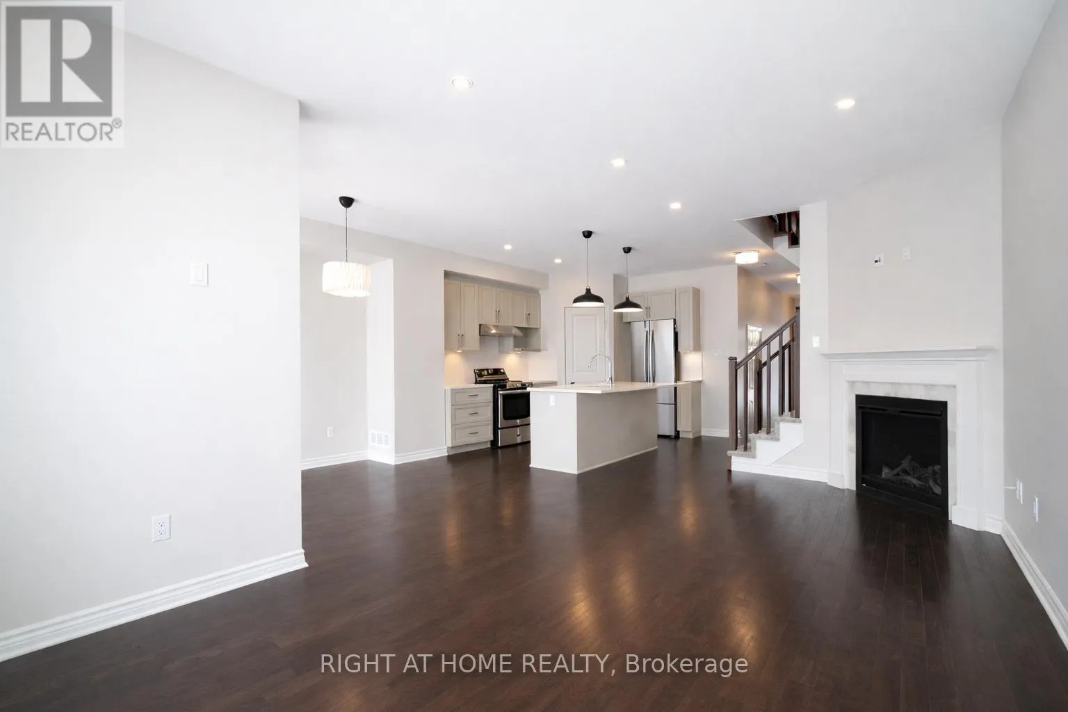 Elevation Rd to Sonmarg Cres Welcome to this stunning 3-year-new, fully fenced Tamarack Homes townhouse in the highly sought-after Half Moon Bay community! Featuring 3 bedrooms and 3 bathrooms, this home offers a bright and functional open concept layout with 9 ft ceilings and large windows that fill the space with natural light.The main floor showcases elegant hardwood flooring throughout, complemented by a modern fireplace that adds warmth and style to the living area. The kitchen is beautifully finished with quartz countertops, stainless steel appliances, and ample workspace perfect for both everyday living and entertaining.Upstairs, the spacious primary bedroom features a walk in closet and a private ensuite bath. Two additional well sized bedrooms share a full bathroom, and the convenient second floor laundry enhances everyday practicality.The fully finished lower level offers a versatile family room ideal for a home theatre, gym, or play area. Both the kitchen and all bathrooms are finished with stylish quartz countertops, maintaining a consistent high end feel throughout.Located in a prime family friendly neighborhood, this home is within walking distance to Food Basics, and offers easy access to top rated schools, parks, shopping, restaurants, Highway 416, and public transit. Book your showing today! (id:27476)