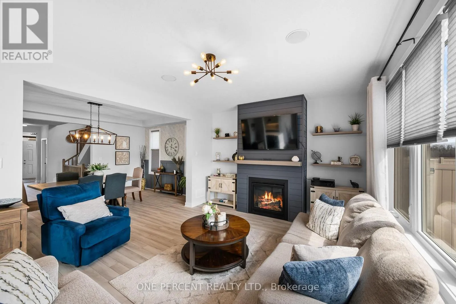 Cross Streets: Showman St & Meynell Rd. ** Directions: Heading South on Eagleson Rd, Turn right onto Old Richmond Rd/Perth St, Turn left onto Meynell Rd, Turn left onto Showman St. Finished like a showhome on a premium ravine lot with no rear neighbours, this Mattamy Sycamore delivers over 2,400 sq. ft. of above-grade living where no detail was overlooked. For families who want a home that turns heads and functions effortlessly, this one delivers: an open-concept layout, beautiful finishes, and the kind of style most people only see in magazines. The main floor flows naturally from a spacious dining room into a cozy living room with a stylish shiplap fireplace, abundant natural light, and in-ceiling speakers. The kitchen is a true focal point, built for those who value beauty as much as function: two-tone cabinetry, a waterfall island with a black granite sink and seating for four, a herringbone tile backsplash, quartz countertops, stainless steel appliances including an induction cooktop, and a double-door pantry. Oversized patio doors extend the space outdoors to a private, landscaped, fully fenced yard with a large interlock patio and gas BBQ hookup, made for entertaining. A vaulted loft with a built-in den gives the upper level a sense of space most homes this size simply don't have. The primary suite is a true retreat, with an oversized walk-in closet and a spa-inspired four-piece ensuite featuring double undermount sinks, quartz countertops, and a glass-enclosed shower. Two additional bedrooms, a well-appointed four-piece main bath, and an upper-level laundry room complete the floor. The fully finished basement extends the living space with a large rec room, a dedicated gym, a roughed-in bath, and plenty of storage. All of this, set in Fox Run just steps from the park, where Richmond's small-town charm and easy access to Ottawa offer the best of both worlds. Check out the virtual tour and book your private showing today. (id:27476)