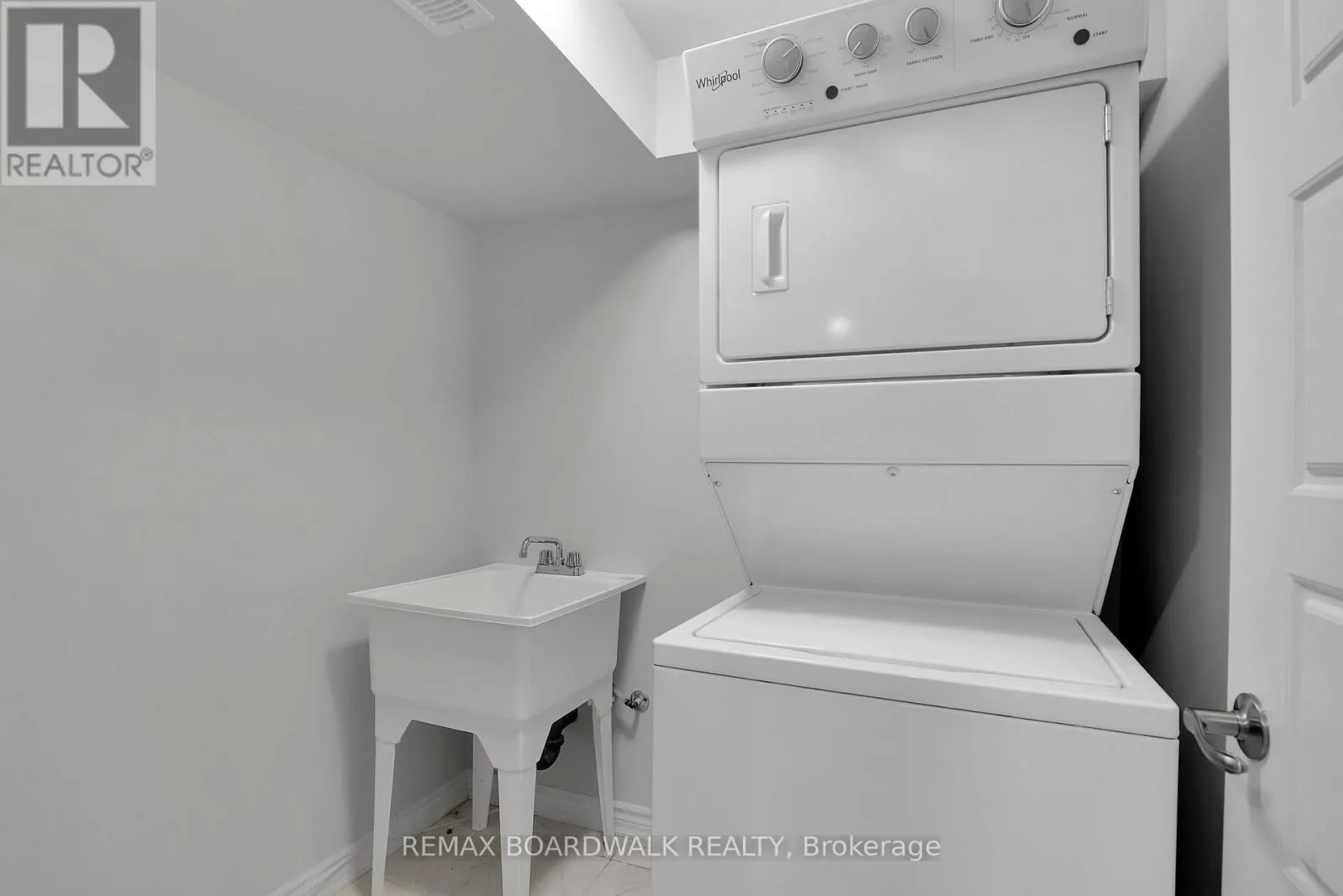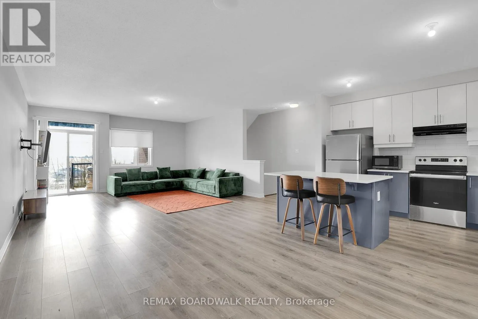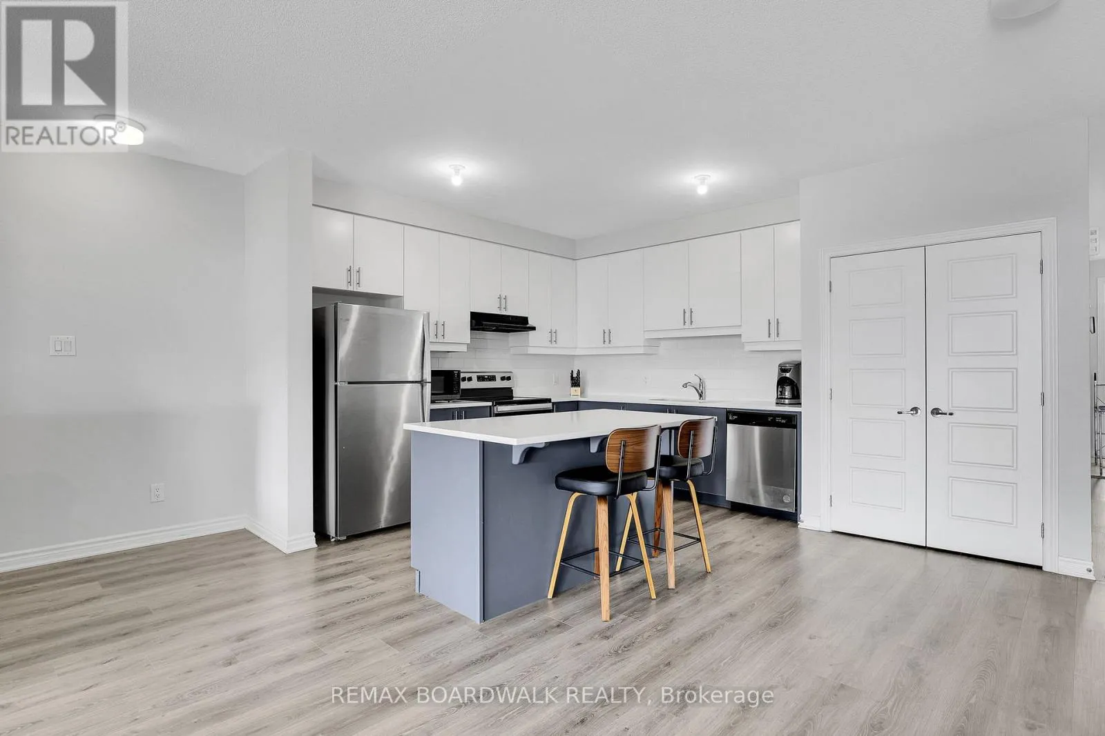 Cross Streets: Fernbank & Rouncey. ** Directions: Fernbank to Rouncey to Nautilus to Pilot. Welcome to 306 Pilot Private, a move-in ready "Bungalow" stacked townhouse offering 1,030 sq/ft on the main level + a finished basement that provides almost as much additional living space. Built in 2022, this modified floorplan showcases an immense open-concept main floor living area that is filled with natural lights thanks to all your big windows. Walking in the wide foyer, you find a well-sized front bedroom with dual closets and direct access to the main floor bathroom which has stylish Quartz countertops. Around the corner is the heart of the home with a grand living room and a Chef's kitchen that features Quartz countertops, large sit-up island, 2-toned cabinetry, Stainless Steel appliances, custom backsplash, built-in wall pantry and plenty of cabinet & counter space. Down on the lower level you find another spacious bedroom with direct access to the modern bathroom that hosts a custom shower & Quartz countertops. The lower level also has a generous rec room, dedicated laundry room and sizable storage area. With both bedrooms having direct access to a bathroom, you have the flexibility to use either as the primary suite and the other one as a secondary bedroom or home office. Great additional features include: 9ft ceiling on main, covered front porch, covered back deck, upgraded doors throughout the home, parking space in front of home & high-end laminate flooring on both levels. This quiet & private complex has a courtyard with picnic tables and ample visitor parking. Within walking distance to great schools, multiple parks, splash pad, skateboard park, tennis courts, mini sledding hill, the Walmart Supercenter and easy drive to all the great shops & restaurants Kanata & Stittsville have to offer. (id:27476)