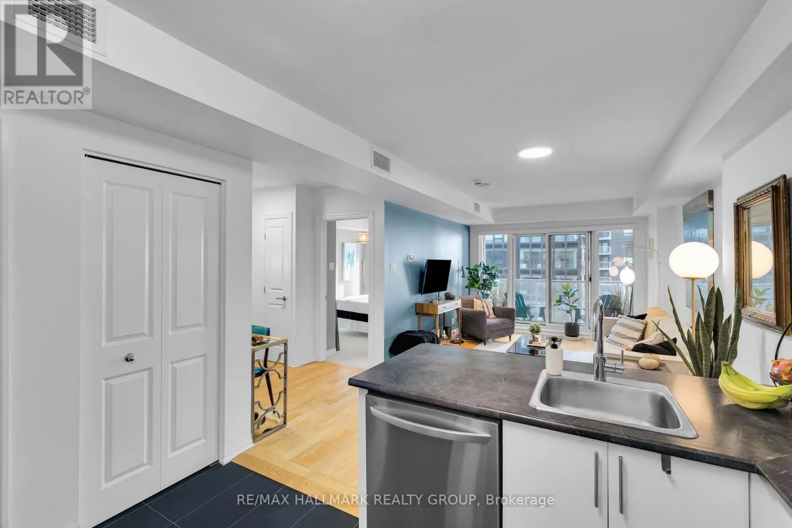 Corner of Rideau and Cumberland Welcome to Unit 803 at 242 Rideau Street, a bright and modern condo located in the heart of downtown Ottawa. Situated in Claridge Plaza Phase III, this well-designed Howston model offers an open-concept layout and an unbeatable location just steps from the ByWard Market, Rideau Centre, the University of Ottawa, and the Rideau LRT station. The main living space features hardwood flooring and large windows that bring in plenty of natural light while showcasing city views. The open-concept design seamlessly connects the kitchen and living area, creating a functional layout ideal for both everyday living and entertaining. The kitchen offers sleek white cabinetry, stainless steel appliances, generous counter space, and a breakfast bar with seating. The living area is bright and comfortable with direct access to a private balcony overlooking the downtown skyline. The spacious bedroom features large windows and ample closet space, while the full bathroom includes a large vanity, tiled flooring, and a bathtub and shower combination. The unit also includes the convenience of in-suite laundry. Residents enjoy access to excellent building amenities including an indoor pool, fitness centre, party room, rooftop terrace, concierge service, and secure building access. Located in one of Ottawa's most walkable neighbourhoods, you are just steps from restaurants, cafés, shopping, entertainment, and transit, with Parliament Hill, the Rideau Canal, and the University of Ottawa all within easy walking distance. An ideal opportunity for professionals, students, or investors seeking comfortable downtown living in a well-managed building. (id:27476)