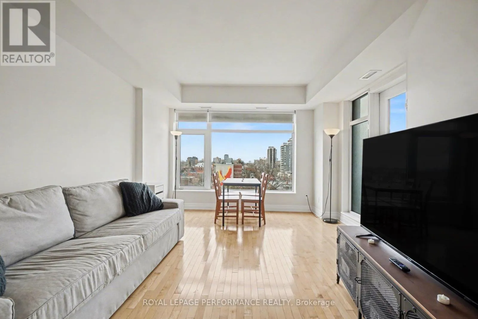 Cross Streets: Nepean. ** Directions: Corner of Kent and Nepean St. Welcome to Hudson Park-an exceptional Charlesfort-built residence in the vibrant heart of Centretown. Perched on the 8th floor, this beautifully maintained 1 bedroom + den condo offers a bright, thoughtfully laid out floor plan, designed for modern urban living. Floor-to-ceiling windows flood the space with natural light, highlighting the hardwood flooring that flows throughout. The open-concept living and dining area is both inviting and functional-perfect for everyday living or entertaining. The stylish kitchen is well-appointed with stainless steel appliances, quality cabinetry, and sleek stone countertops, providing both form and function. The ample sized bedroom features a large walk-in closet and convenient access to a well-designed 4-piece bathroom. A versatile den adds valuable flexibility, ideal for an office or reading nook. Step out onto your private balcony to enjoy beautiful city views. This unit also includes IN-UNIT LAUNDRY, one UNDERGROUND PARKING space and a STORAGE locker for added convenience. Residents of Hudson Park enjoy premium amenities, including a fully equipped fitness centre, stylish party lounge, landscaped gardens and a stunning rooftop terrace complete with BBQs and entertaining space. An unbeatable location just steps to shops, restaurants, transit, and all that downtown Ottawa has to offer, this is an outstanding opportunity to enjoy refined, low-maintenance living in one of the city's most sought-after buildings. (id:27476)