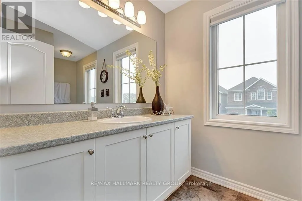 Cross Streets: Andre Audet Avenue. ** Directions: Greenbank Road, west on Dundonald Drive, left on Andre Audet Avenue, left onto Switch Grass Crescent. Welcome to this beautiful 3-bedroom single family home in sought-after Half Moon Bay! A charming front porch sets the tone for this warm and inviting property. Inside, the bright and spacious layout features an inviting living room with large windows and a cozy gas fireplace, alongside a separate formal dining room - perfect for hosting family gatherings. The sunny eat-in kitchen offers ample cabinetry, a convenient pantry, and a peninsula with breakfast bar. Upstairs, the primary bedroom retreat boasts a walk-in closet, additional closet, and a stylish ensuite with an oversized shower. Two well-sized bedrooms, a 4-piece main bathroom and convenient laundry room complete the second level. The finished basement provides an entertainment-sized rec room with pot lighting, a built-in wet bar, and plenty of storage. Step outside to a beautiful backyard with a deck and PVC fencing - ideal for relaxing or entertaining. Attached garage with inside entry. Ideally located steps to schools, parks, scenic trails, the Minto Rec Centre, and Stonebridge Golf Club - a dream location for active living! 48 hour irrevocable. Photos are from prior to tenants moving in. (id:27476)