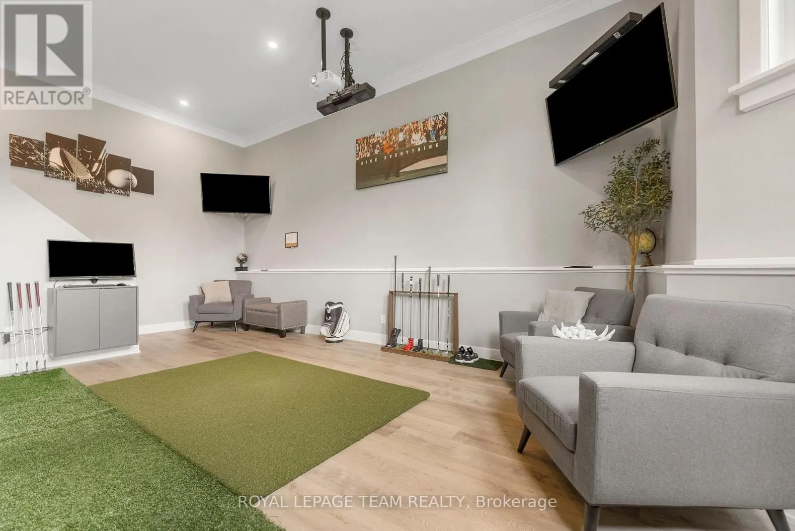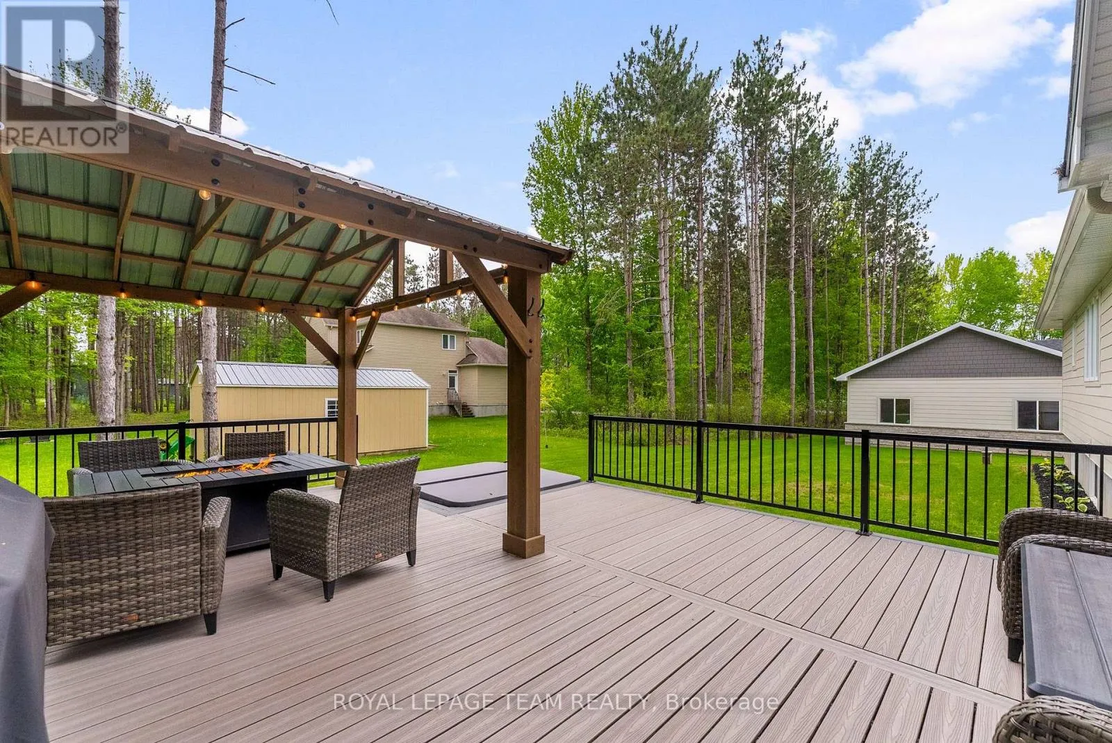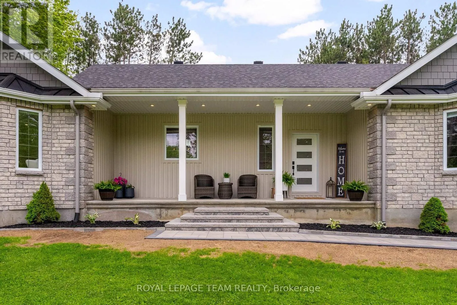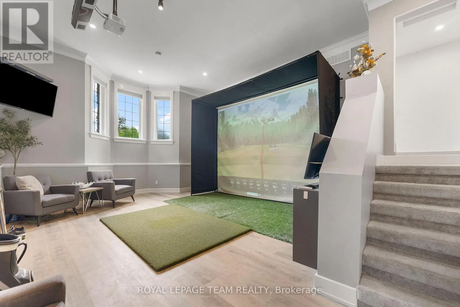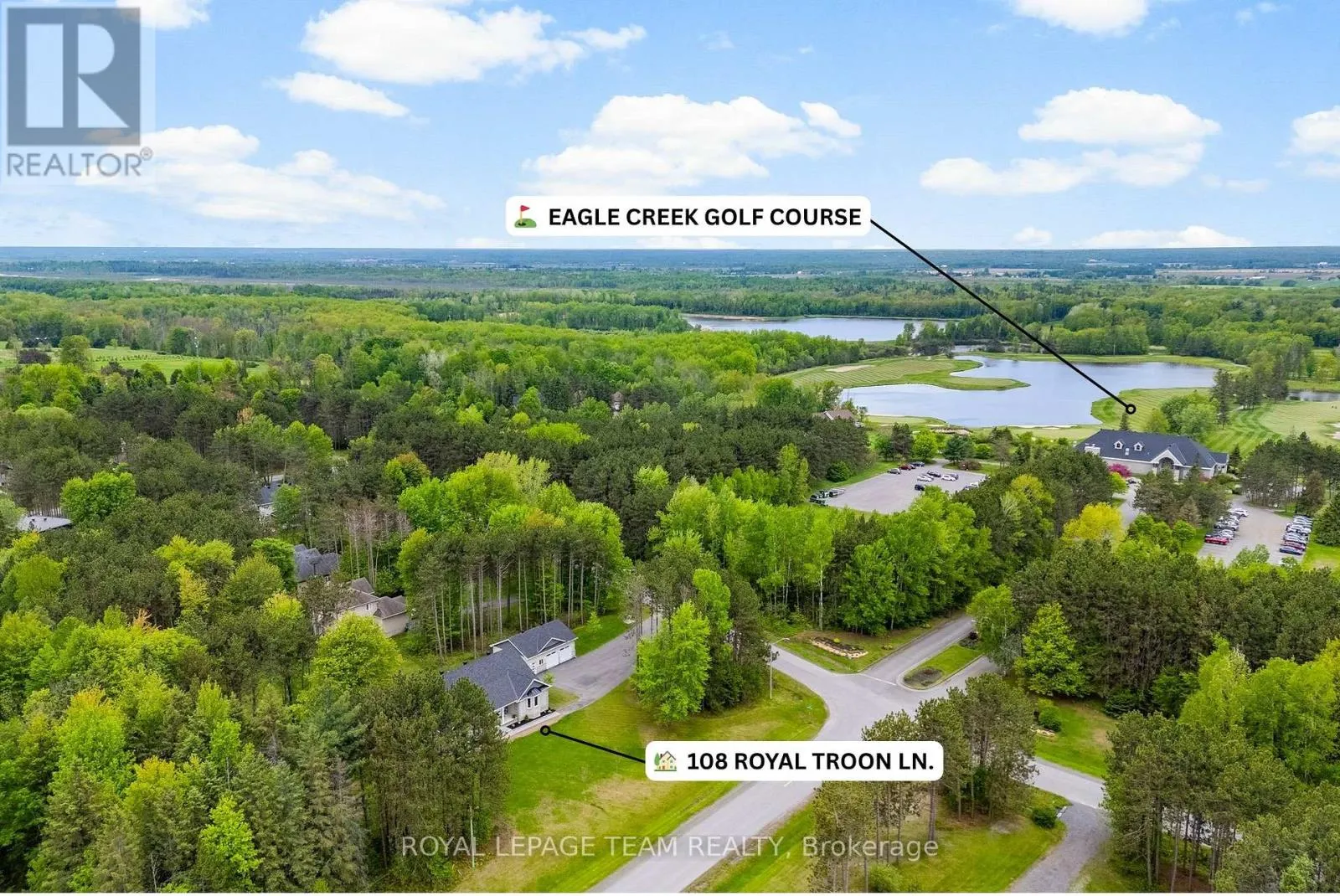 Cross Streets: Pine Valley Ct / Royal Troon Ln. ** Directions: From March Road, turn right to Dunrobin Road, right on Vance's Side Rd, left on Greenland Rd, left on Pine Valley Ct. and right on Royal Troon Ln. Welcome to this CUSTOM-finished, show-stopping BUNGALOW where luxury and lifestyle collide on a pristine 1-ACRE lot, just steps from the prestigious Eagle Creek Golf Club in beautiful Dunrobin - just 35 minutes from downtown Ottawa and 20 from Kanata. From the moment you arrive, you are greeted by the OVERSIZED DRIVEWAY and detached 2-car garage with a heated workshop. Inside the home, premium oak engineered hardwood and sleek marble-gloss tiles guide you through an OPEN-CONCEPT masterpiece. The kitchen is a chefs dream, featuring custom cabinetry with built-in lighting, a MASSIVE island perfect for gathering, a pot filler faucet for added convenience, and high-end stainless steel appliances. The dining area shines with a built-in hutch & bold ACCENT wall, while the living room stuns with CATHEDRAL ceilings, seamlessly flowing to a screened-in porch, ideal for entertaining or watching the game. Step onto the oversized COMPOSITE DECK, soak in the HOT TUB, and embrace outdoor living like never before. The main-level primary suite is a retreat of its own, boasting a SPA-INSPIRED 5-piece ensuite with heated marble flooring, a glass stand-up shower, a luxurious soaker tub, DUAL SINKS, and a walk-in closet. Another spacious bedroom and full bath complete this level. And yes, there is even your very own indoor GOLF SIMULATOR room. Practice year-round, rain or shine on this state of the art system. Downstairs, luxurious comfort continues - enjoy a FULLY FINISHED rec room with two distinct living areas, a dedicated exercise room, a third bedroom, and a full bath. This isn't just a home, it's a lifestyle - and it's waiting for you. Every detail found at this property has been meticulously designed and thoughtfully crafted from doors & hardware to lighting, flooring, paint and cabinetry. 12 hour irrevocable on all offers. (id:27476)