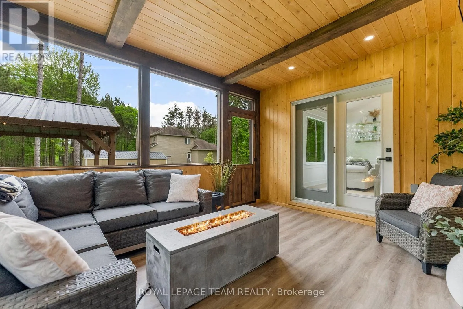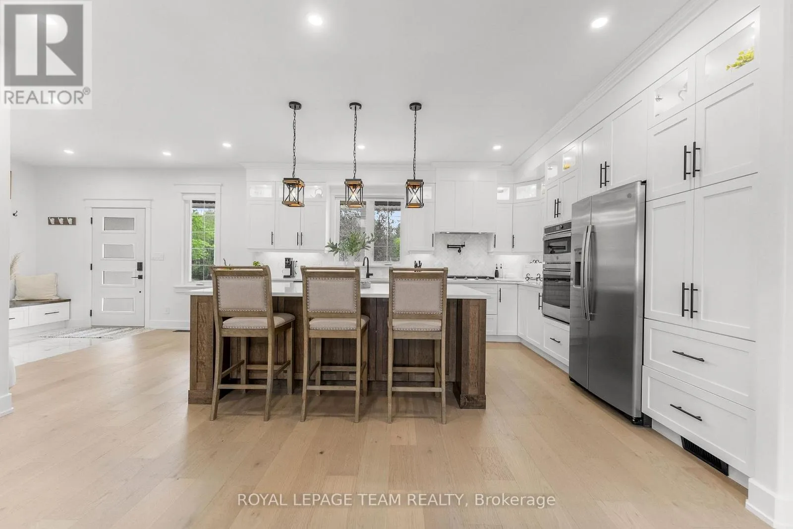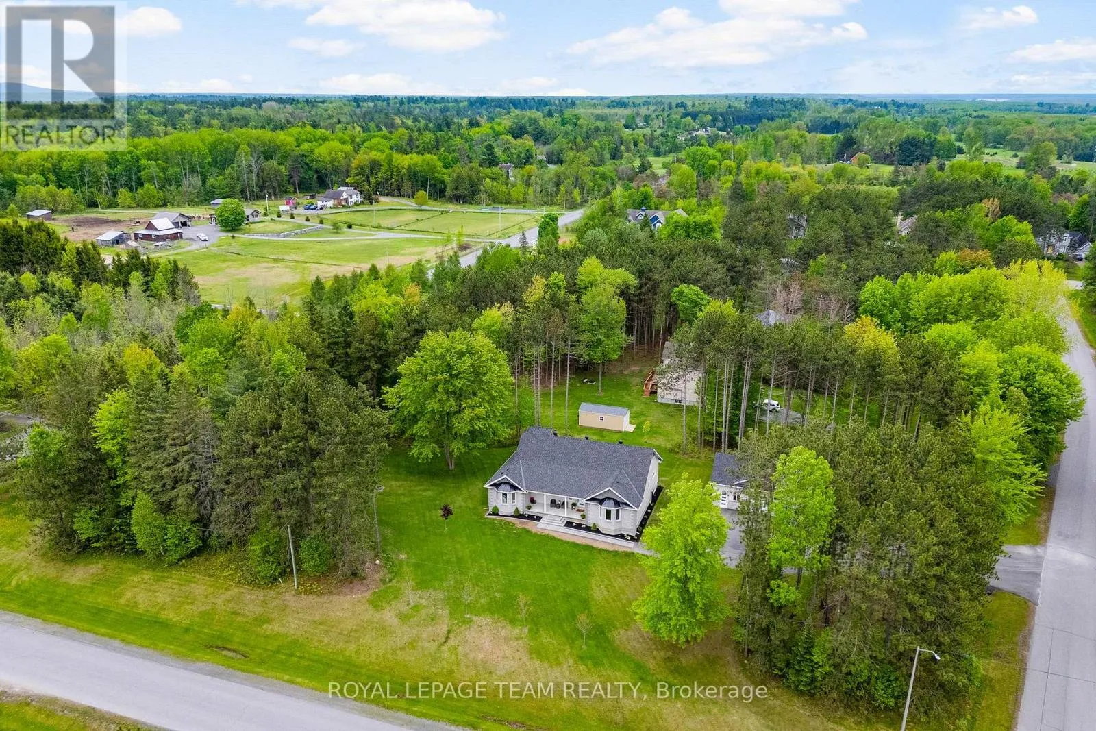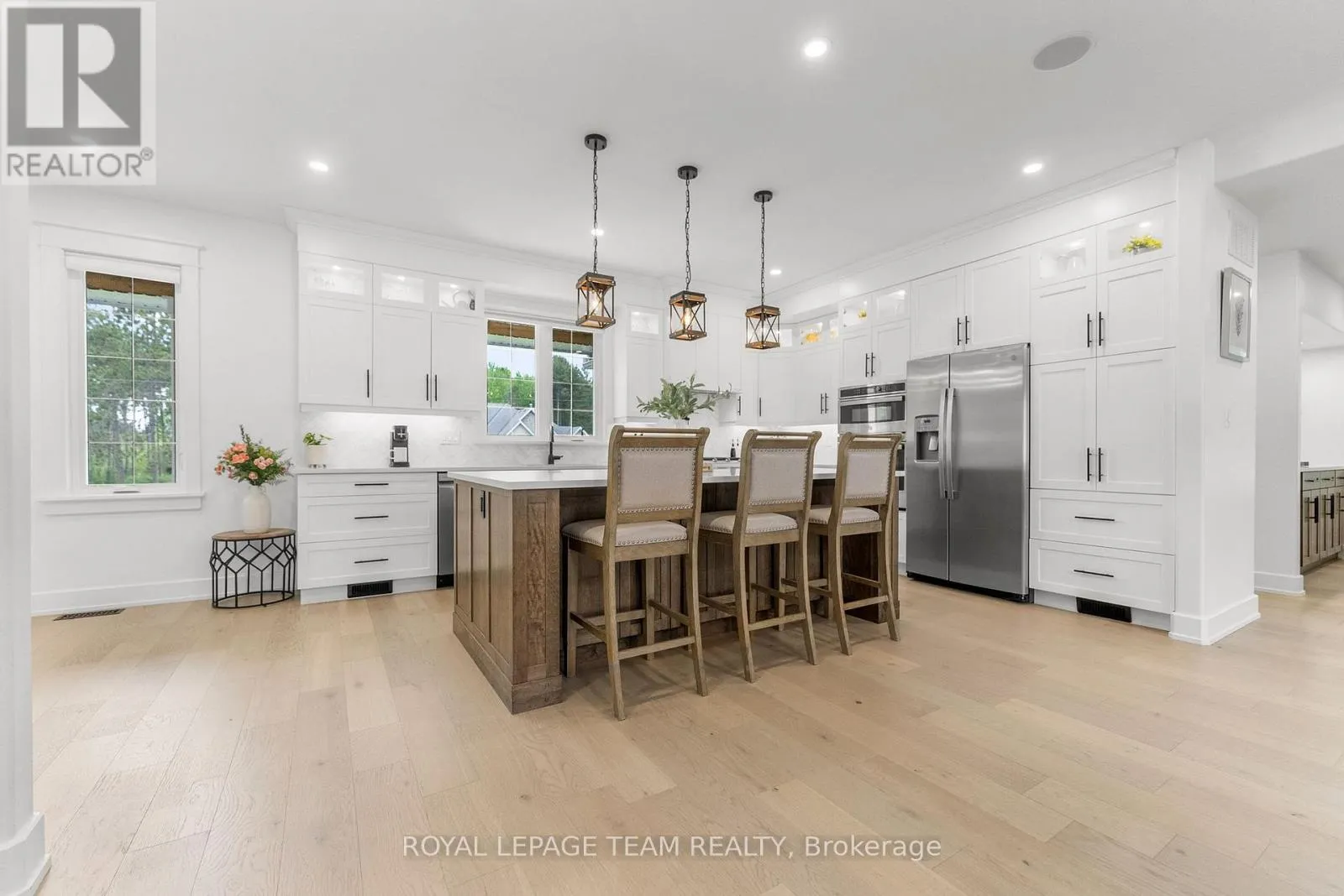 Cross Streets: Pine Valley Ct / Royal Troon Ln. ** Directions: From March Road, turn right to Dunrobin Road, right on Vance's Side Rd, left on Greenland Rd, left on Pine Valley Ct. and right on Royal Troon Ln. Welcome to this CUSTOM-finished, show-stopping BUNGALOW where luxury and lifestyle collide on a pristine 1-ACRE lot, just steps from the prestigious Eagle Creek Golf Club in beautiful Dunrobin - just 35 minutes from downtown Ottawa and 20 from Kanata. From the moment you arrive, you are greeted by the OVERSIZED DRIVEWAY and detached 2-car garage with a heated workshop. Inside the home, premium oak engineered hardwood and sleek marble-gloss tiles guide you through an OPEN-CONCEPT masterpiece. The kitchen is a chefs dream, featuring custom cabinetry with built-in lighting, a MASSIVE island perfect for gathering, a pot filler faucet for added convenience, and high-end stainless steel appliances. The dining area shines with a built-in hutch & bold ACCENT wall, while the living room stuns with CATHEDRAL ceilings, seamlessly flowing to a screened-in porch, ideal for entertaining or watching the game. Step onto the oversized COMPOSITE DECK, soak in the HOT TUB, and embrace outdoor living like never before. The main-level primary suite is a retreat of its own, boasting a SPA-INSPIRED 5-piece ensuite with heated marble flooring, a glass stand-up shower, a luxurious soaker tub, DUAL SINKS, and a walk-in closet. Another spacious bedroom and full bath complete this level. And yes, there is even your very own indoor GOLF SIMULATOR room. Practice year-round, rain or shine on this state of the art system. Downstairs, luxurious comfort continues - enjoy a FULLY FINISHED rec room with two distinct living areas, a dedicated exercise room, a third bedroom, and a full bath. This isn't just a home, it's a lifestyle - and it's waiting for you. Every detail found at this property has been meticulously designed and thoughtfully crafted from doors & hardware to lighting, flooring, paint and cabinetry. 12 hour irrevocable on all offers. (id:27476)
