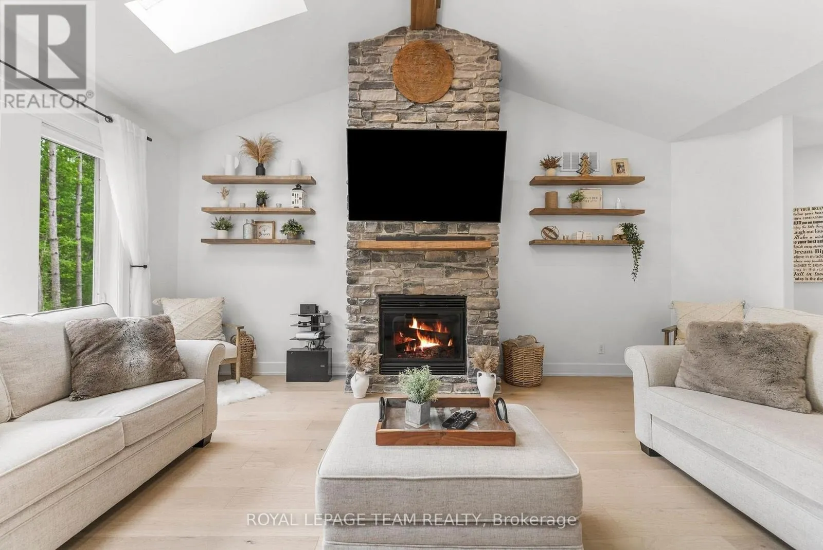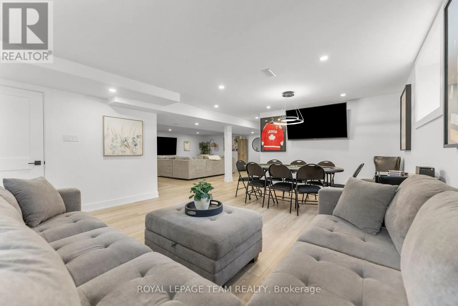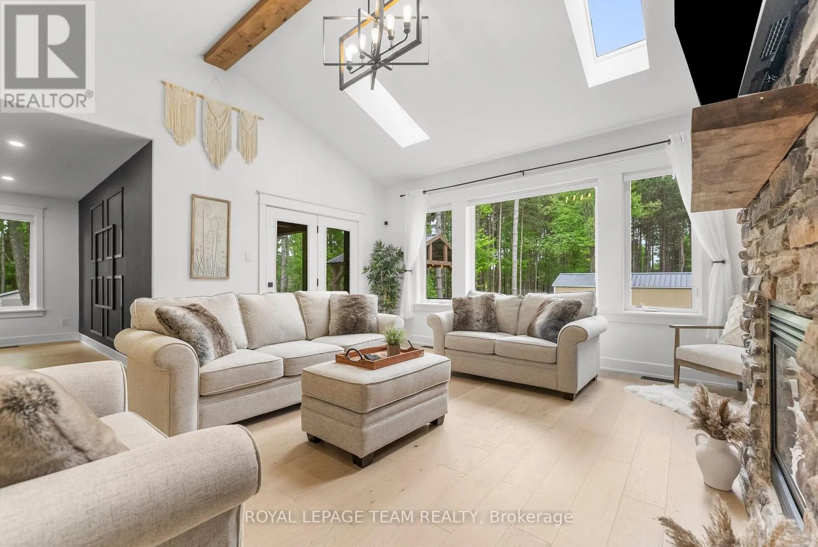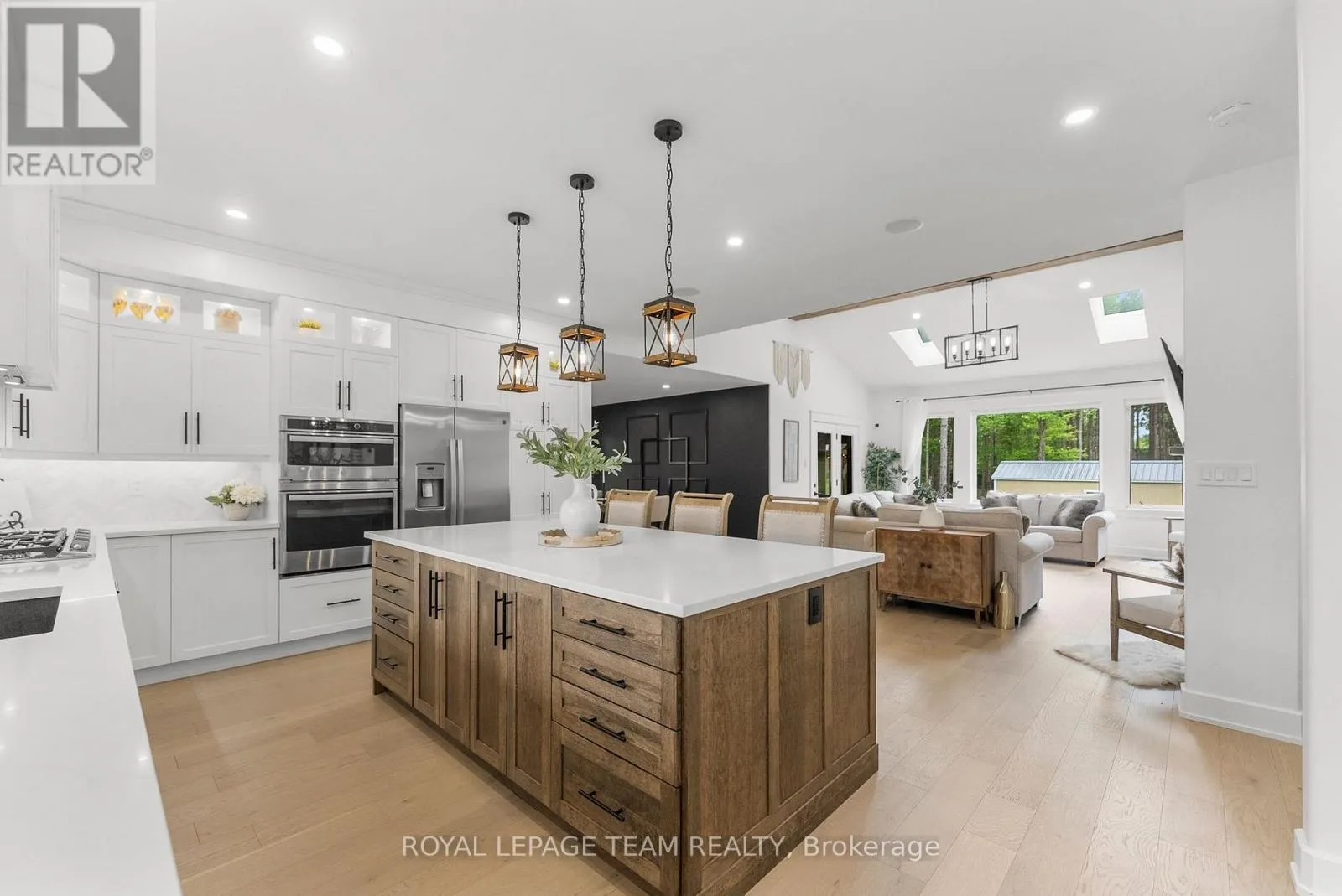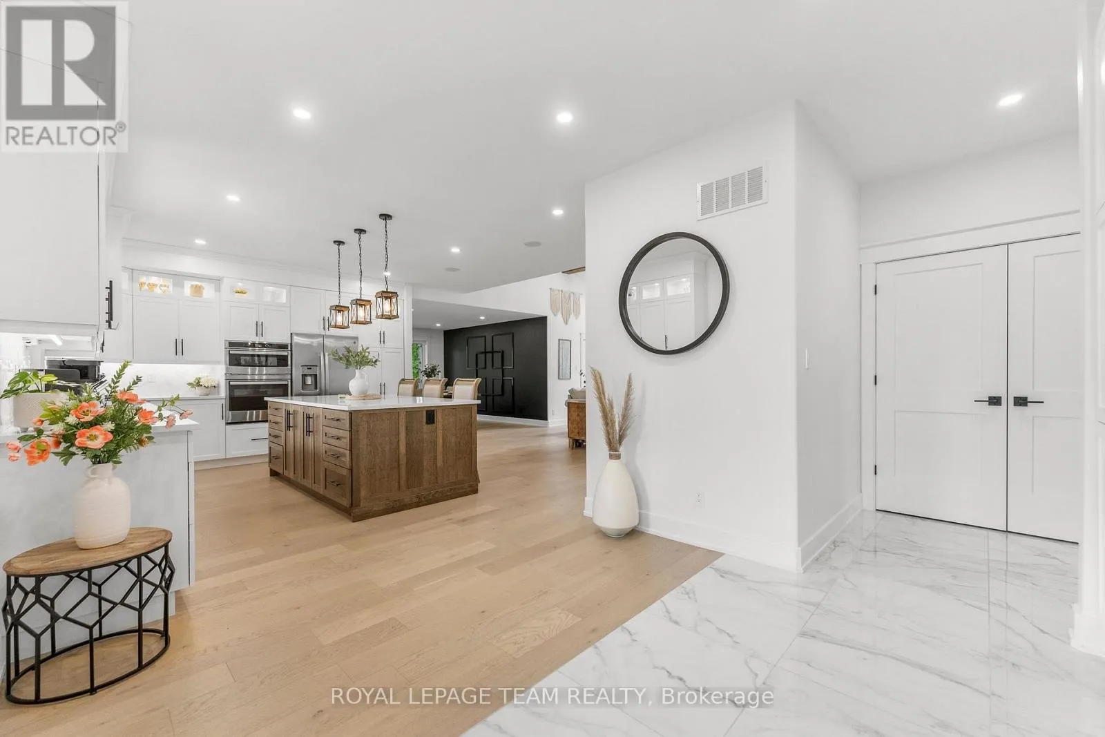 Cross Streets: Pine Valley Ct / Royal Troon Ln. ** Directions: From March Road, turn right to Dunrobin Road, right on Vance's Side Rd, left on Greenland Rd, left on Pine Valley Ct. and right on Royal Troon Ln. Welcome to this CUSTOM-finished, show-stopping BUNGALOW where luxury and lifestyle collide on a pristine 1-ACRE lot, just steps from the prestigious Eagle Creek Golf Club in beautiful Dunrobin - just 35 minutes from downtown Ottawa and 20 from Kanata. From the moment you arrive, you are greeted by the OVERSIZED DRIVEWAY and detached 2-car garage with a heated workshop. Inside the home, premium oak engineered hardwood and sleek marble-gloss tiles guide you through an OPEN-CONCEPT masterpiece. The kitchen is a chefs dream, featuring custom cabinetry with built-in lighting, a MASSIVE island perfect for gathering, a pot filler faucet for added convenience, and high-end stainless steel appliances. The dining area shines with a built-in hutch & bold ACCENT wall, while the living room stuns with CATHEDRAL ceilings, seamlessly flowing to a screened-in porch, ideal for entertaining or watching the game. Step onto the oversized COMPOSITE DECK, soak in the HOT TUB, and embrace outdoor living like never before. The main-level primary suite is a retreat of its own, boasting a SPA-INSPIRED 5-piece ensuite with heated marble flooring, a glass stand-up shower, a luxurious soaker tub, DUAL SINKS, and a walk-in closet. Another spacious bedroom and full bath complete this level. And yes, there is even your very own indoor GOLF SIMULATOR room. Practice year-round, rain or shine on this state of the art system. Downstairs, luxurious comfort continues - enjoy a FULLY FINISHED rec room with two distinct living areas, a dedicated exercise room, a third bedroom, and a full bath. This isn't just a home, it's a lifestyle - and it's waiting for you. Every detail found at this property has been meticulously designed and thoughtfully crafted from doors & hardware to lighting, flooring, paint and cabinetry. 12 hour irrevocable on all offers. (id:27476)