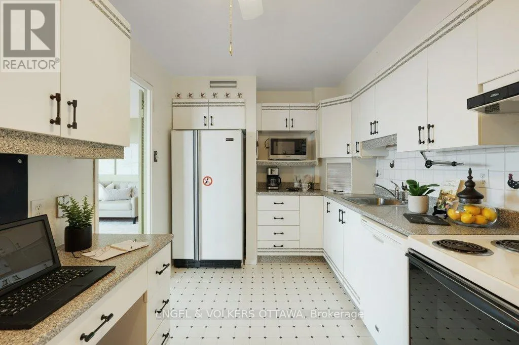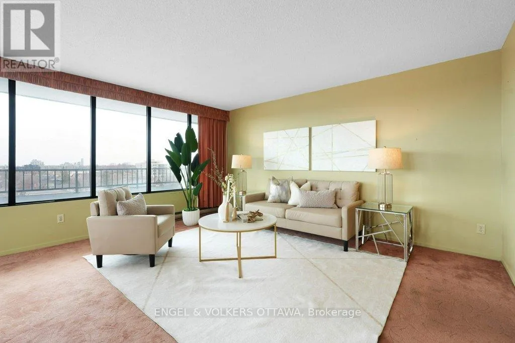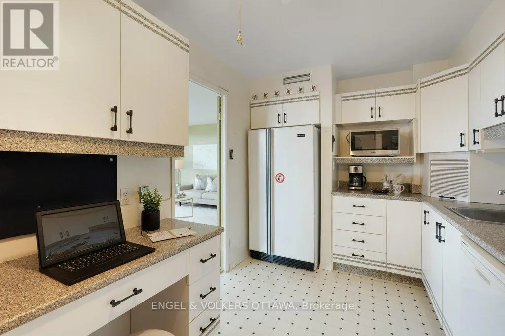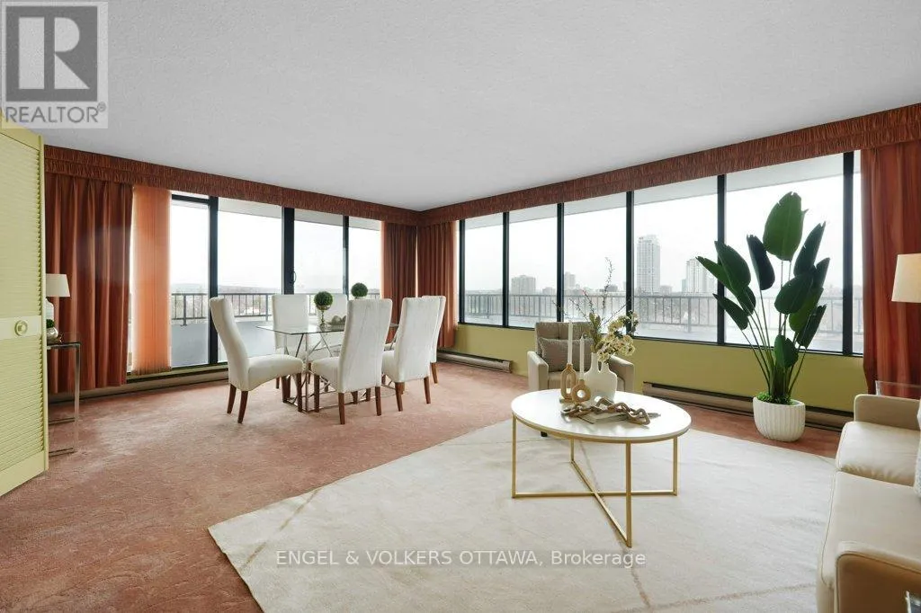 Cross Streets: Richmond and Berkley. ** Directions: Richmond Rd to Berkley Ave to Dominion Ave. Perched on the north-east corner of this iconic Westboro building, this 2-bedroom, 2-bathroom unit offers sweeping city and river views from every angle, including a wraparound balcony made for morning coffee or watching Canada Day fireworks light up the sky over the Ottawa River. The Barclay isn't just a building; it's a community. Residents here have organically built something rare: a vibrant, engaged neighbourhood within four walls. Think social clubs, gardening groups, regular parties, and neighbours who actually know each other's names. It's the kind of place people move into and never want to leave. At 1,040 sq ft, the unit is a blank canvas. The primary bedroom features a 3-piece ensuite with a stand-up shower, and the second full bathroom serves guests and the second bedroom with ease. Move in and freshen things up with new flooring and a few personal touches, or take it to a full renovation. The bones and the views do the heavy lifting either way. Amenities are exceptional: indoor pool, saunas, exercise room, library, guest suite, party room, outdoor terrace with BBQs, workshop, and more. One indoor parking spot and storage locker included. And the location? The new KichiZibi LRT station is less than 100 metres from the front door, putting the rest of the city at your fingertips while keeping you squarely in the heart of Westboro. (id:27476)