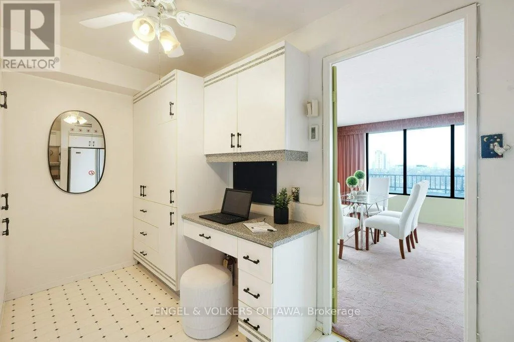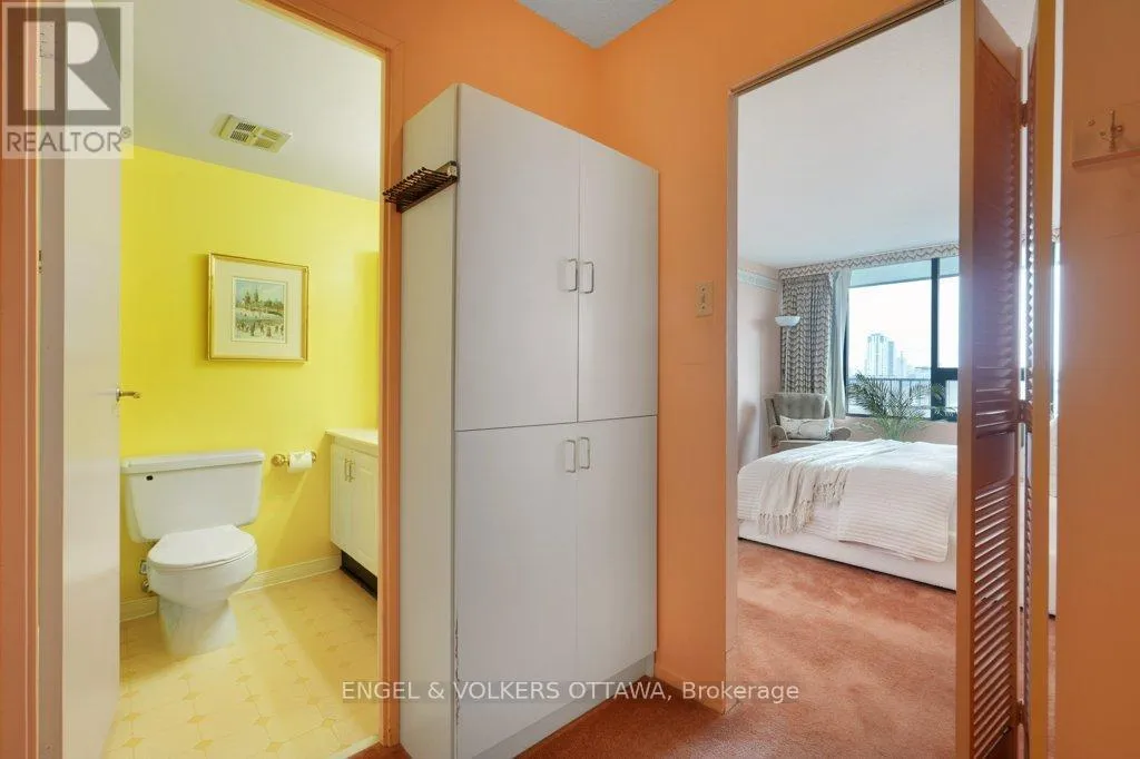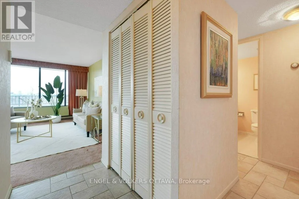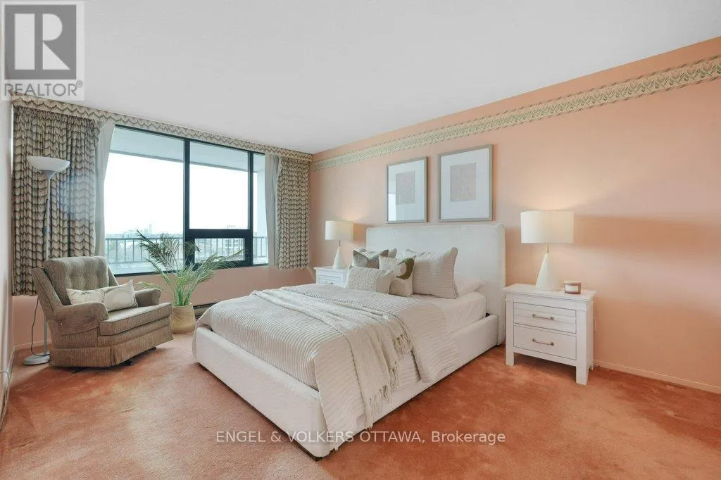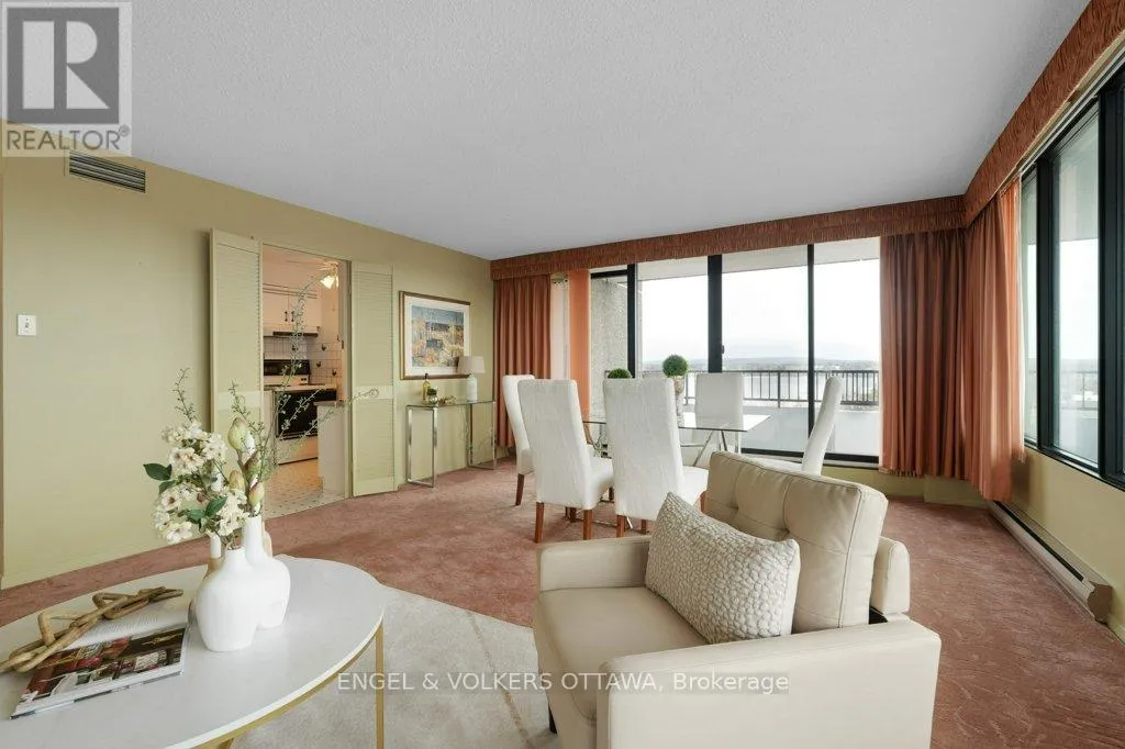 Cross Streets: Richmond and Berkley. ** Directions: Richmond Rd to Berkley Ave to Dominion Ave. Perched on the north-east corner of this iconic Westboro building, this 2-bedroom, 2-bathroom unit offers sweeping city and river views from every angle, including a wraparound balcony made for morning coffee or watching Canada Day fireworks light up the sky over the Ottawa River. The Barclay isn't just a building; it's a community. Residents here have organically built something rare: a vibrant, engaged neighbourhood within four walls. Think social clubs, gardening groups, regular parties, and neighbours who actually know each other's names. It's the kind of place people move into and never want to leave. At 1,040 sq ft, the unit is a blank canvas. The primary bedroom features a 3-piece ensuite with a stand-up shower, and the second full bathroom serves guests and the second bedroom with ease. Move in and freshen things up with new flooring and a few personal touches, or take it to a full renovation. The bones and the views do the heavy lifting either way. Amenities are exceptional: indoor pool, saunas, exercise room, library, guest suite, party room, outdoor terrace with BBQs, workshop, and more. One indoor parking spot and storage locker included. And the location? The new KichiZibi LRT station is less than 100 metres from the front door, putting the rest of the city at your fingertips while keeping you squarely in the heart of Westboro. (id:27476)