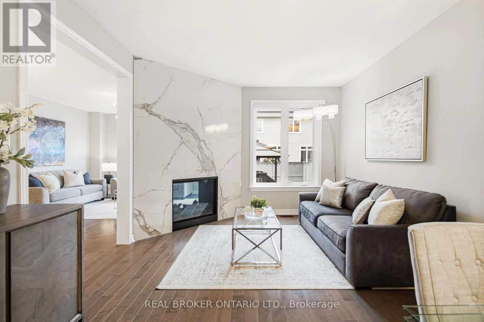 Cross Streets: Kelly Farm Dr & Trollius Way. ** Directions: https://share.google/sKJ9S79VbUI3kMcIl. If you've been searching for a newer home where the upgrades are already done - this one is worth a look. Set in Findlay Creek Village, one of Ottawa's go-to communities for families, you're close to schools, parks, dog park and everything you need day-to-day, while still being about 20 minutes to downtown. Built in 2019 by Tartan, this 'Parkhill' model offers nearly 3,000 sq.ft. of finished space and stands out well beyond typical builder-grade. From the moment you walk in, the difference is clear, featuring upgrades throughout a functional layout that feels open but still defined. The living room is anchored by a two-sided fireplace with a custom marble surround, and the kitchen delivers with upgraded quartz counters and cabinetry, a pantry wall and plenty of functional counter space. The peninsula opens to the separate family room, overlooking the backyard. Upstairs, the 3-bedroom + loft layout gives you spacious rooms to accompany the bright and flexible loft area, with a primary suite featuring a 5-piece ensuite and two separate walk-in closets. There's also a proper laundry room for washing and sorting - not just a closet in the hallway. The finished basement adds even more living space with a rec room, fireplace, and a flexible den. The fully fenced and interlocked yard with gazebo expands your functional outdoor living space and is ready for summer with zero hassle. Just move in and enjoy this move-in ready family home in a community that continues to grow in demand. (id:27476)