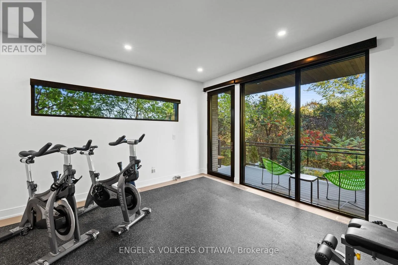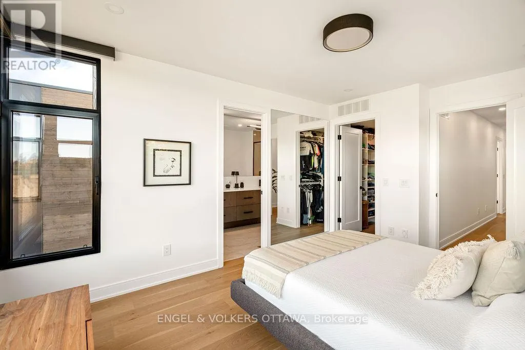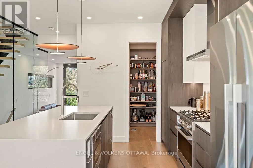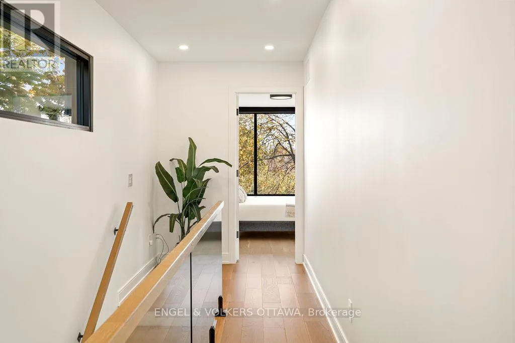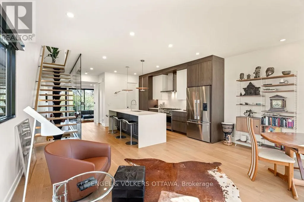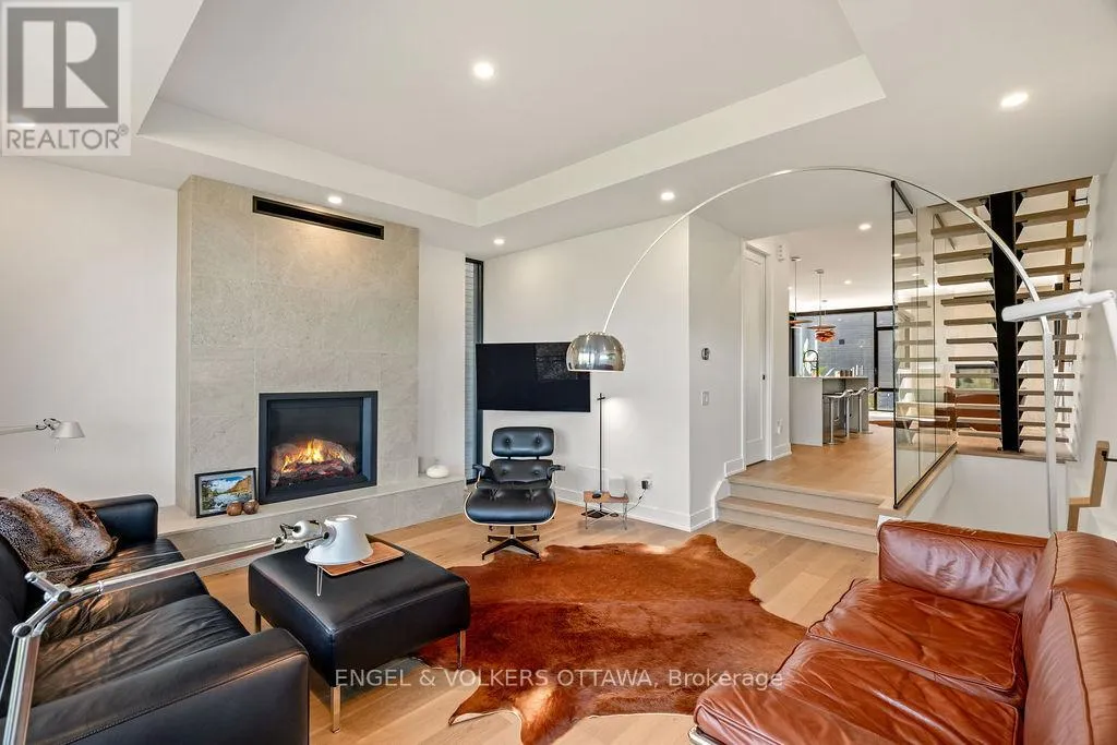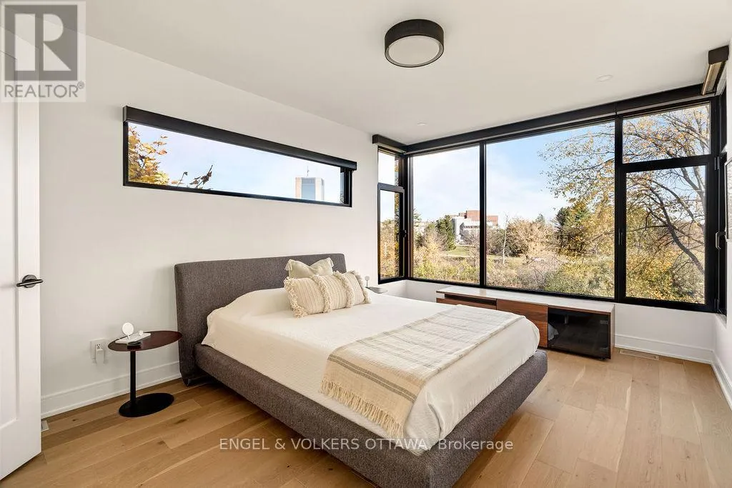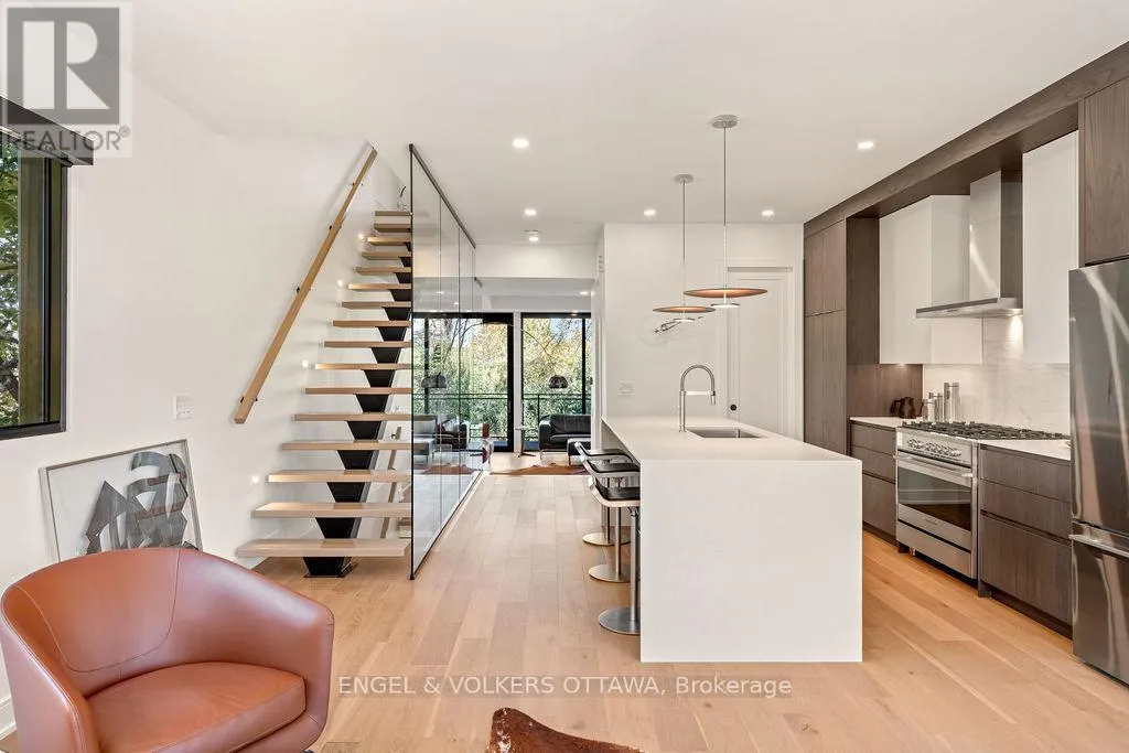 Cross Streets: Prince of Wales Dr. ** Directions: Prince of Wales to Peridot. Welcome home to this excquisite residence in a private enclave of just seven luxury homes, moments to Dow's Lake, Little Italy, Civic Hospital and CarletonU. The only home in the community featuring an extended private driveway and back deck, as well as incredible additional custom windows offering rare, unobstructed views of the Experimental Farm and the Rideau Canal. Winner of a GOHBA award for interior design, this 3-bedroom, 4-bathroom home showcases over 2,400 sq. ft. of thoughtfully curated living space. The main level is perfect for entertaining in style, featuring a chef's kitchen with a waterfall quartz island, custom cabinetry, gas range, walk-in pantry with sink, and designer finishes. Two elegant living areas with upgraded gas fireplaces and a sleek powder room complete the space. Amazing views from every room and private balcony off the back living room with a natural gas BBQ hook-up. Upstairs, the serene primary suite impresses with expansive windows and a spa-inspired ensuite with a soaker tub, expanded two-person glass shower, double vanity, and bidet. Two additional bedrooms, a full bath, and a laundry closet with a sink and custom cabinetry provide flexibility for guests or a home office. Ground level features a spacious foyer and a versatile area currently used as a gym, easily adaptable as a family room or office, along with a convenient powder room. Upgraded stringer staircase with open glass panels adds a striking architectural element while preserving the home's airy, contemporary feel. An extended lower back deck provides direct access to a beautifully landscaped backyard - offering a peaceful retreat surrounded by nature. Visit the website for full list of upgrades. Monthly association fee of $403 covers snow removal, maintenance and repairs of the private road. (id:27476)