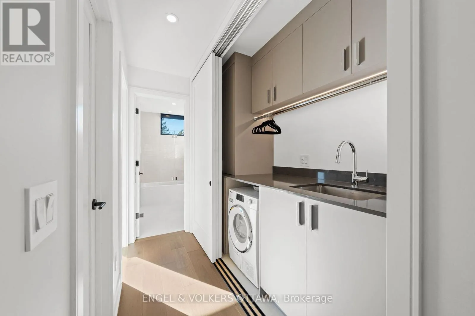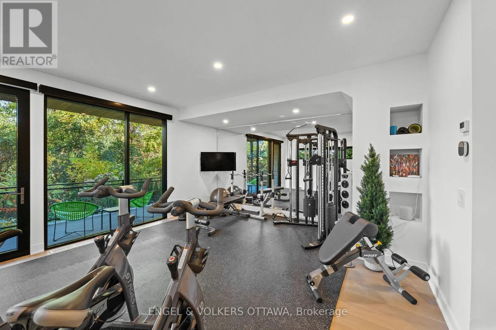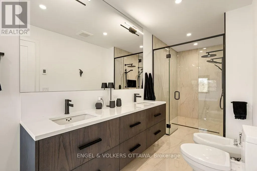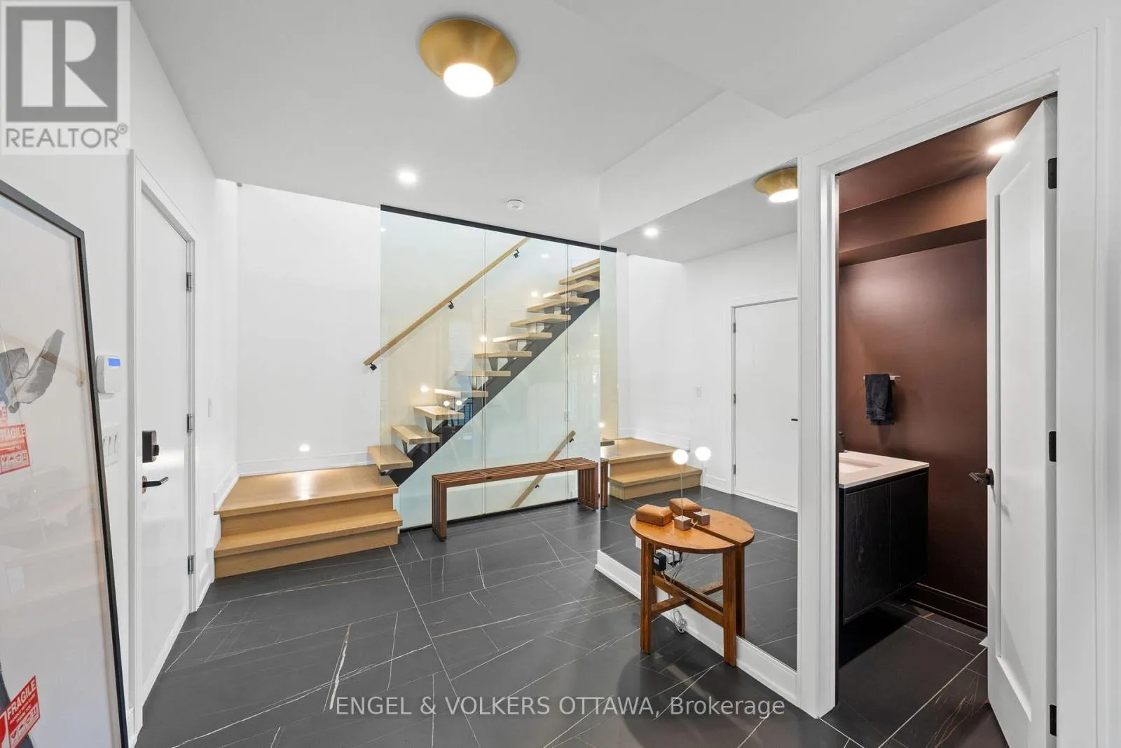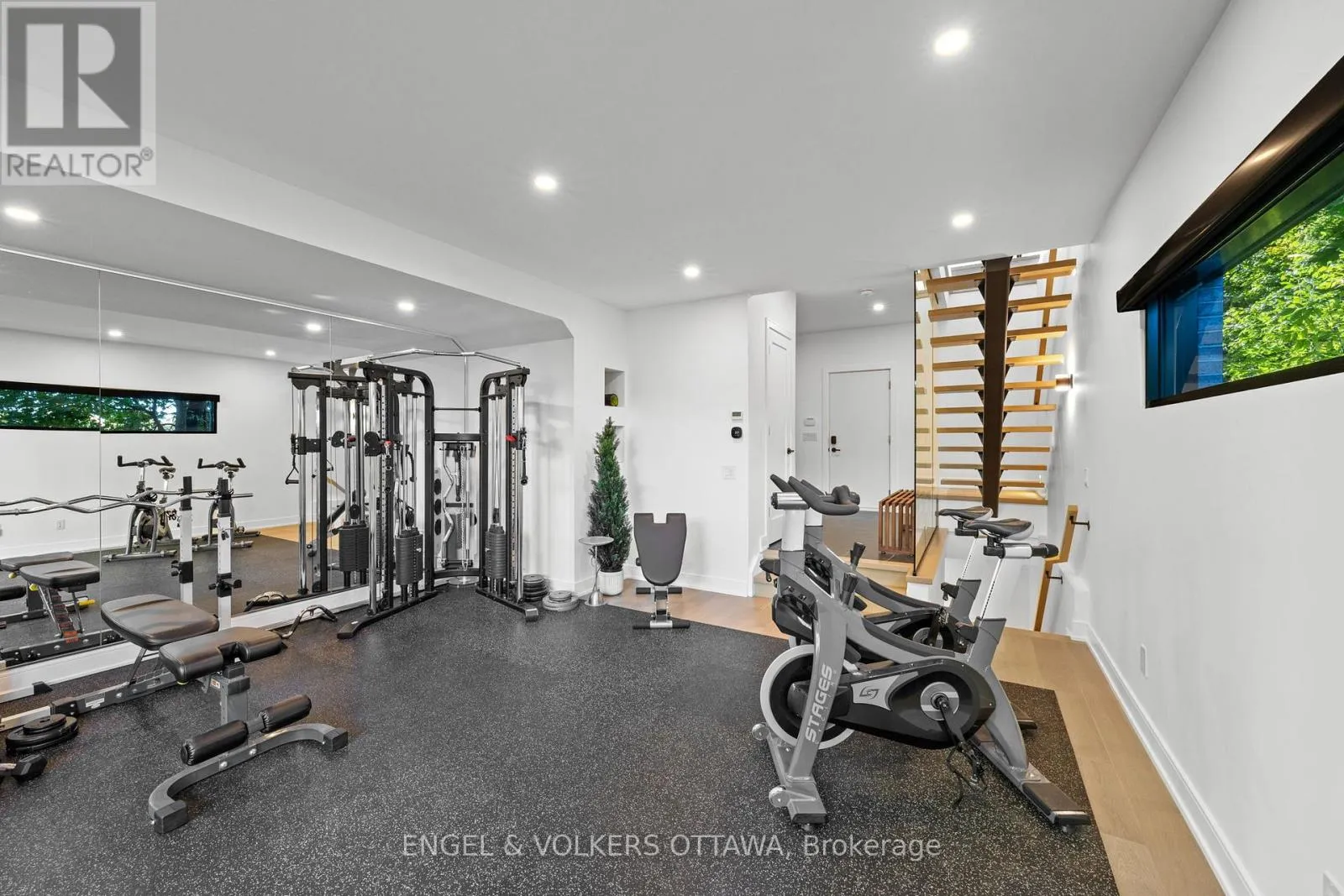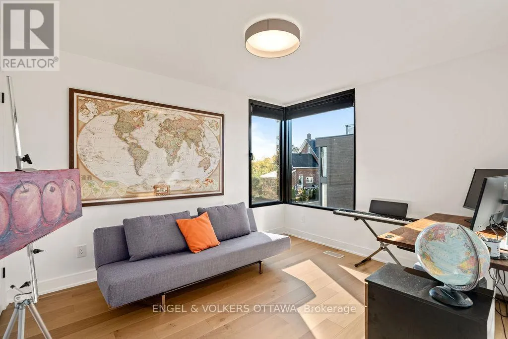 Cross Streets: Prince of Wales Dr. ** Directions: Prince of Wales to Peridot. Welcome home to this excquisite residence in a private enclave of just seven luxury homes, moments to Dow's Lake, Little Italy, Civic Hospital and CarletonU. The only home in the community featuring an extended private driveway and back deck, as well as incredible additional custom windows offering rare, unobstructed views of the Experimental Farm and the Rideau Canal. Winner of a GOHBA award for interior design, this 3-bedroom, 4-bathroom home showcases over 2,400 sq. ft. of thoughtfully curated living space. The main level is perfect for entertaining in style, featuring a chef's kitchen with a waterfall quartz island, custom cabinetry, gas range, walk-in pantry with sink, and designer finishes. Two elegant living areas with upgraded gas fireplaces and a sleek powder room complete the space. Amazing views from every room and private balcony off the back living room with a natural gas BBQ hook-up. Upstairs, the serene primary suite impresses with expansive windows and a spa-inspired ensuite with a soaker tub, expanded two-person glass shower, double vanity, and bidet. Two additional bedrooms, a full bath, and a laundry closet with a sink and custom cabinetry provide flexibility for guests or a home office. Ground level features a spacious foyer and a versatile area currently used as a gym, easily adaptable as a family room or office, along with a convenient powder room. Upgraded stringer staircase with open glass panels adds a striking architectural element while preserving the home's airy, contemporary feel. An extended lower back deck provides direct access to a beautifully landscaped backyard - offering a peaceful retreat surrounded by nature. Visit the website for full list of upgrades. Monthly association fee of $403 covers snow removal, maintenance and repairs of the private road. (id:27476)