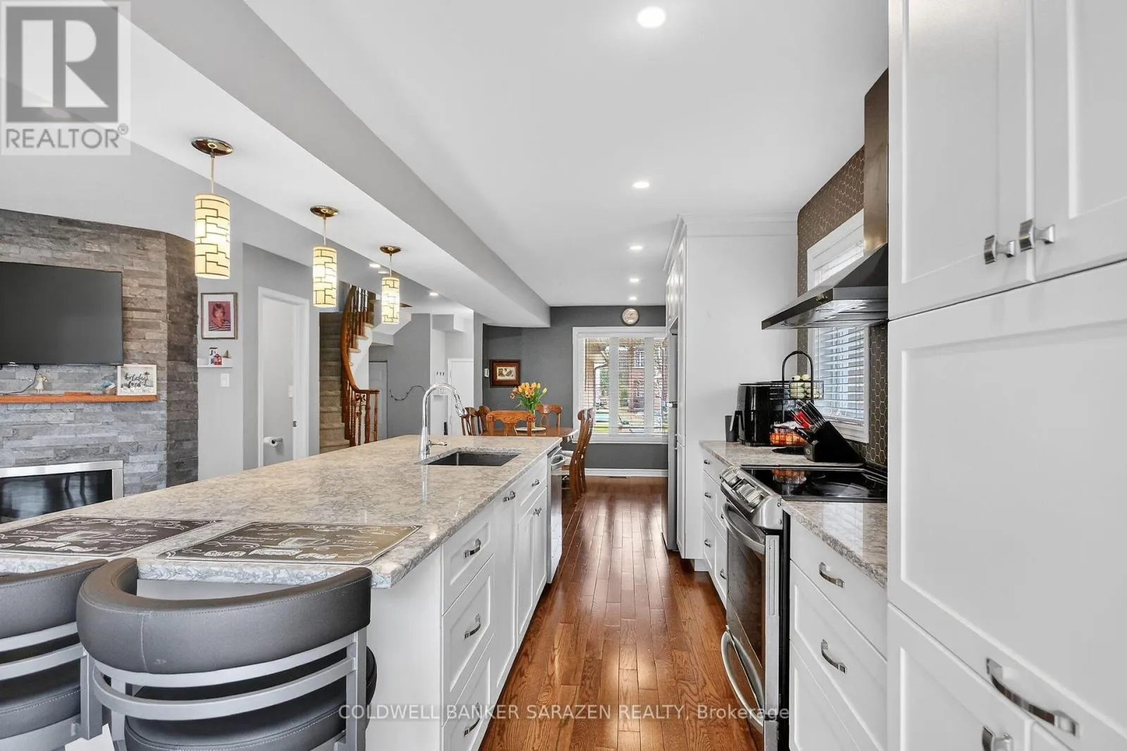 WOODROFFE SOUTH PAST FALLOWFIELD, RIGHT ON EARL MULLIGAN, RIGHT ON MOUNTSHANNON, LEFT ON 2ND DAVENTRY. GORGEOUS END UNIT in a Fantastic Location! Welcome to 43 Daventry - a beautifully updated 3+ bedroom, 3.5 bathroom home offering space, style, and a private rear yard. The exterior is just as impressive as the interior, featuring a 4-car driveway, interlock in the backyard, river rock landscaping in the front, a metal-roof gazebo, and a fully fenced private yard-ideal for relaxing or entertaining. Inside, the completely renovated kitchen is absolutely stunning, showcasing beautiful island and coffee bar. This kitchen is both beautiful and highly functional. The main floor offers all new wood flooring and tile, along with a bright living room enhanced by a cozy fireplace. A mid-level family room with a second fireplace provides additional flexible living space-perfect for families or entertaining. Upstairs, you'll find a very large primary bedroom plus two other generous-sized bedrooms. The finished basement adds even more living space, complete with newer Berber carpet and a bathroom featuring heated flooring for extra comfort. Extensive renovations and inclusions are listed in the attachments. All of this-and so much more-makes this home a must-see. Have a look. You'll be glad you did! (id:27476)